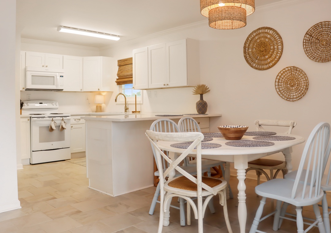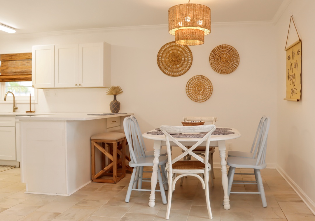 The heart of this beach house is its stunning kitchen, featuring state-of-the-art amenities and an open dining space that invites shared meals and laughter. Whether you're whipping up a seafood feast or enjoying takeout, this area is sure to become a cherished gathering spot.