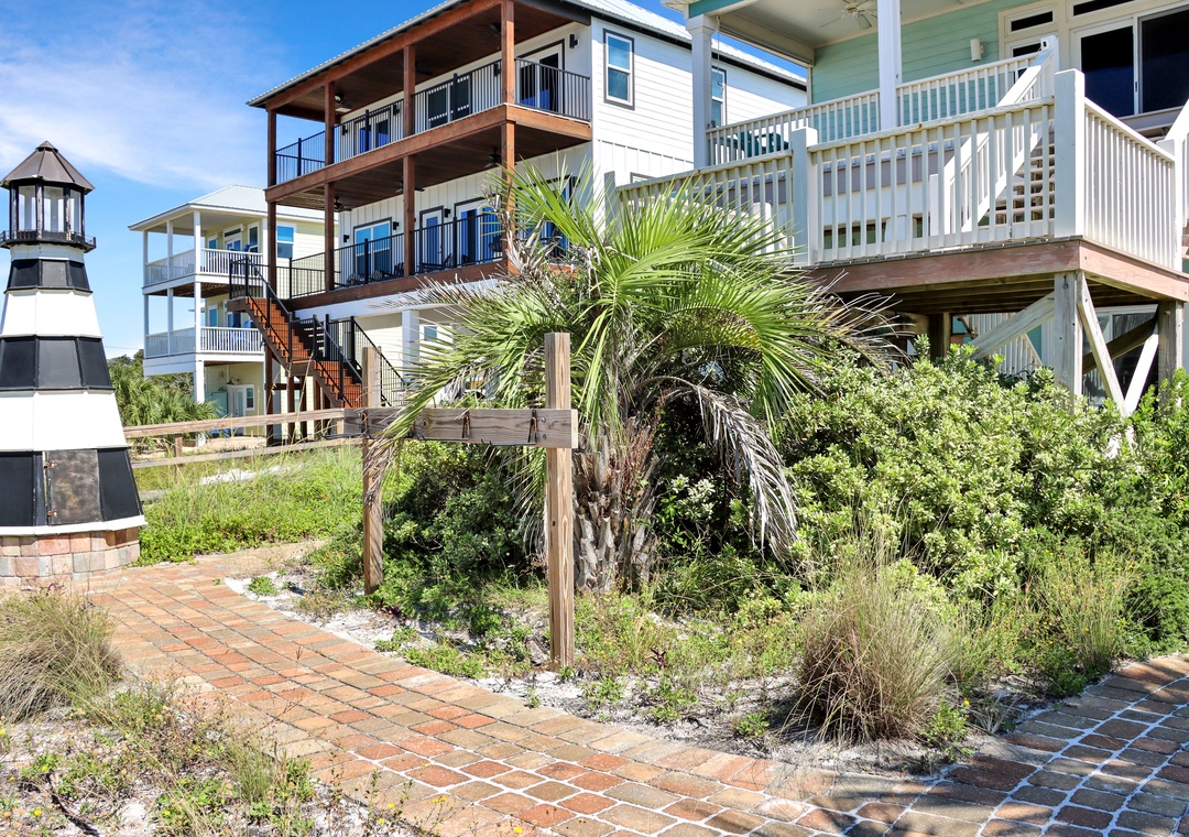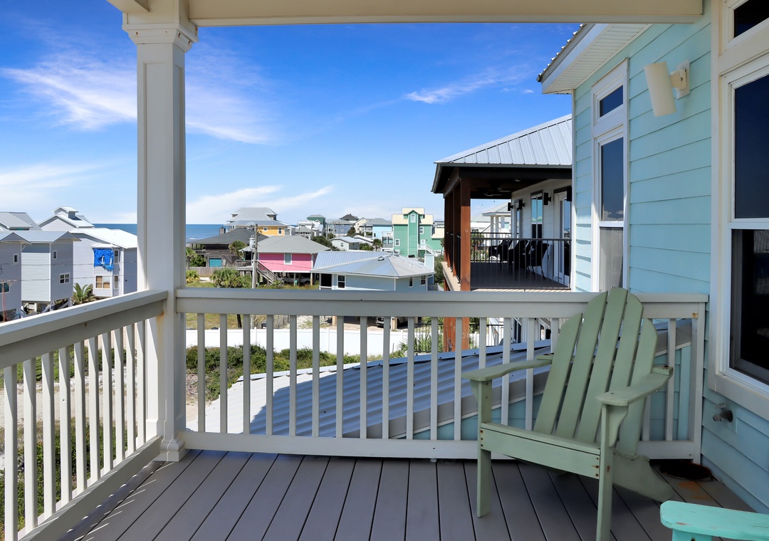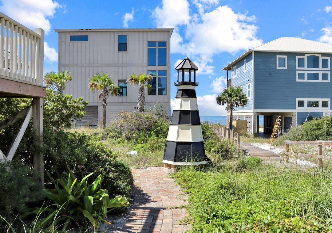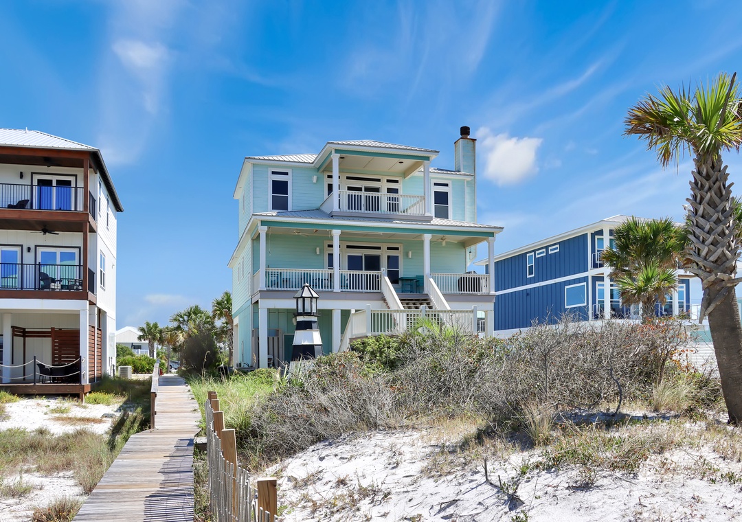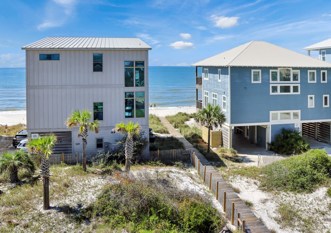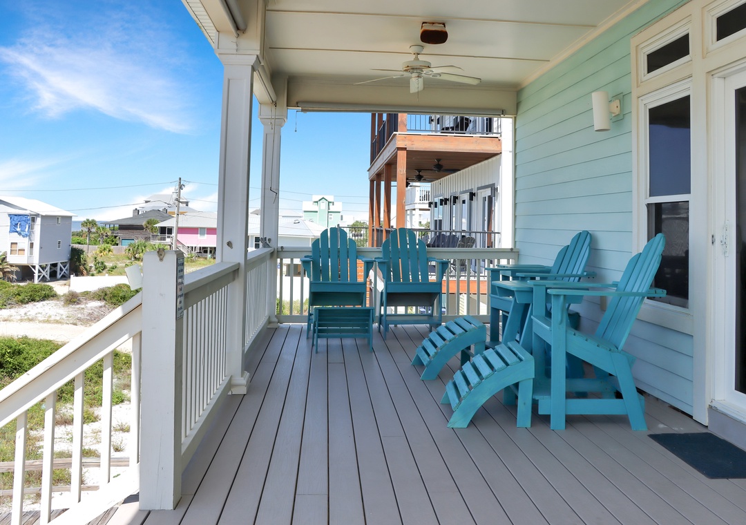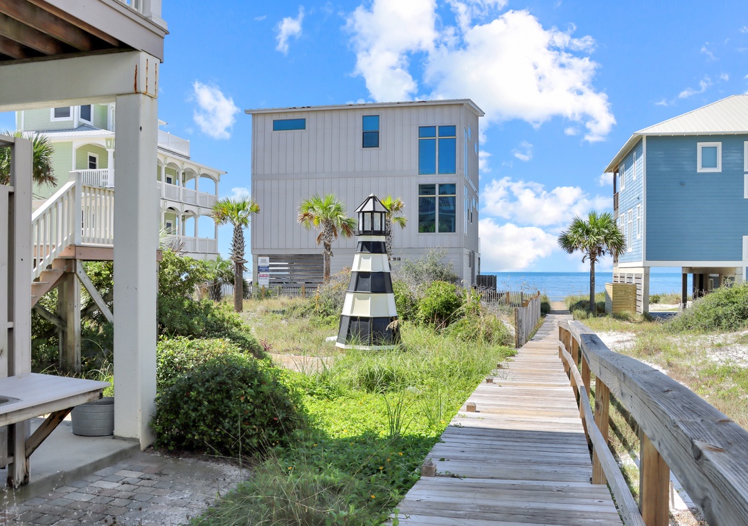 Explore the ultimate beachside retreat, perfect for families or groups of up to 14 looking for adventure. Immerse yourself in the tranquility of Gulf views from this stunning four-bedroom, four-bathroom beach house, Adventure Time. Enjoy easy beach access via a charming boardwalk that brings the salty breeze right to your doorstep, making the transition from sandy shores to the comfort of home a breeze. A variety of amenities are designed for the ultimate coastal living experience. An outdoor shower and towel rack make beach days carefree, while the large bunk room on the ground floor is perfect for kids or group lodging, complete with a TV room for entertainment. Relax or entertain on the main level, where an open living area with kitchen and dining space offers panoramic beach views from every angle. And when it's time to unwind, the luxurious top-floor master suite awaits, featuring a private deck and wet bar. Just steps away, indulge in the community pool with relaxing loungers and a picturesque beach view. Welcome to your personal slice of paradise, where every day feels like an adventure.