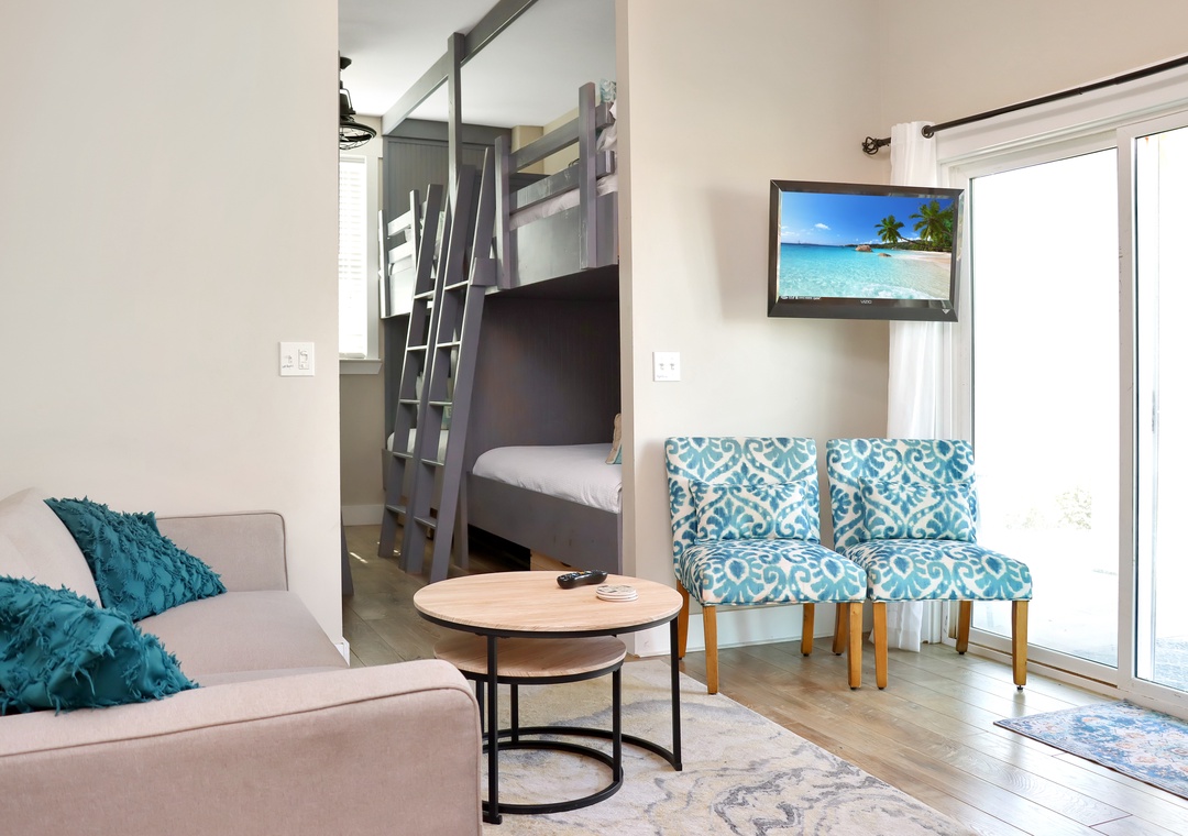 * Ground Floor Bunk Room with 4 Sets of Built-in Bunks and TV Room