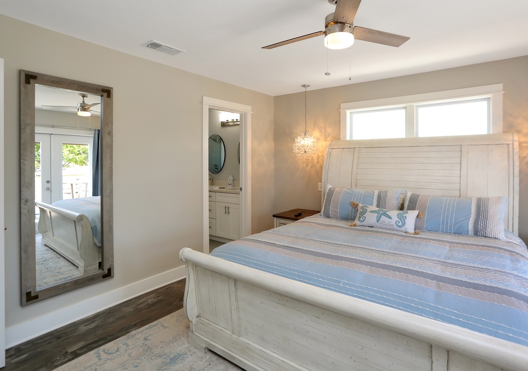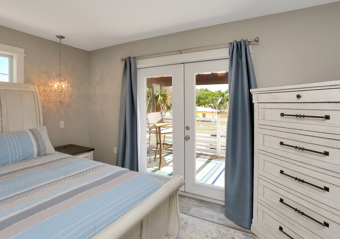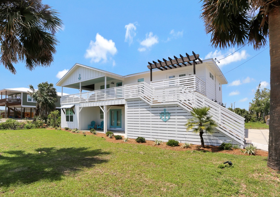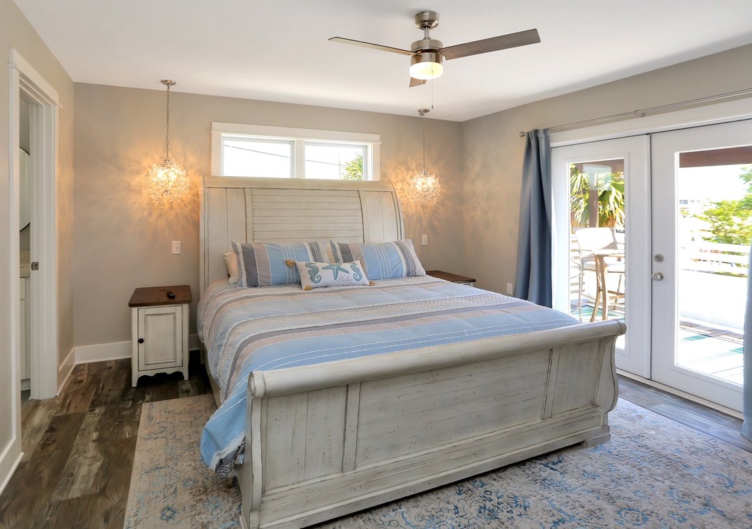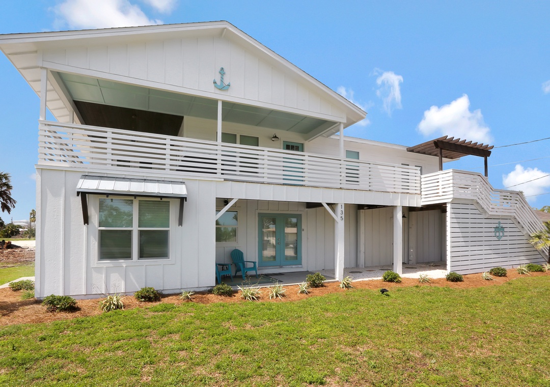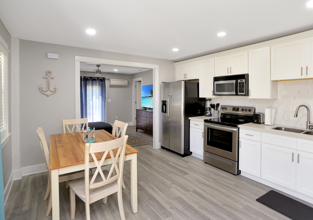 Anchored Inn is located just a short walk from the beach and has great views of the water from the large deck. If you do decide to bring your dog, or children lol, the owners have taken the worry out for you with a retractable gate on the top floor deck. This is where you will find a bistro table for your morning coffee, and the large picnic table for evening meals. Also outside, there is a great outdoor shower tucked away under the exterior stairs, a ground floor patio, a single car garage and a fire pit in the fenced in backyard.