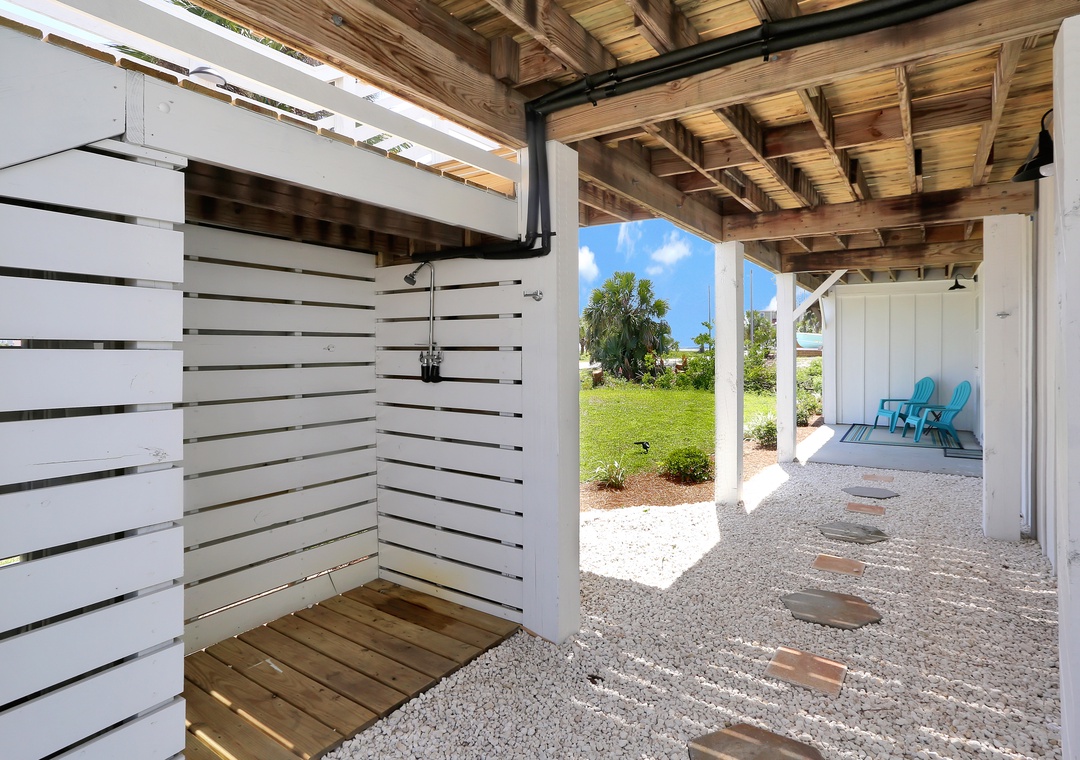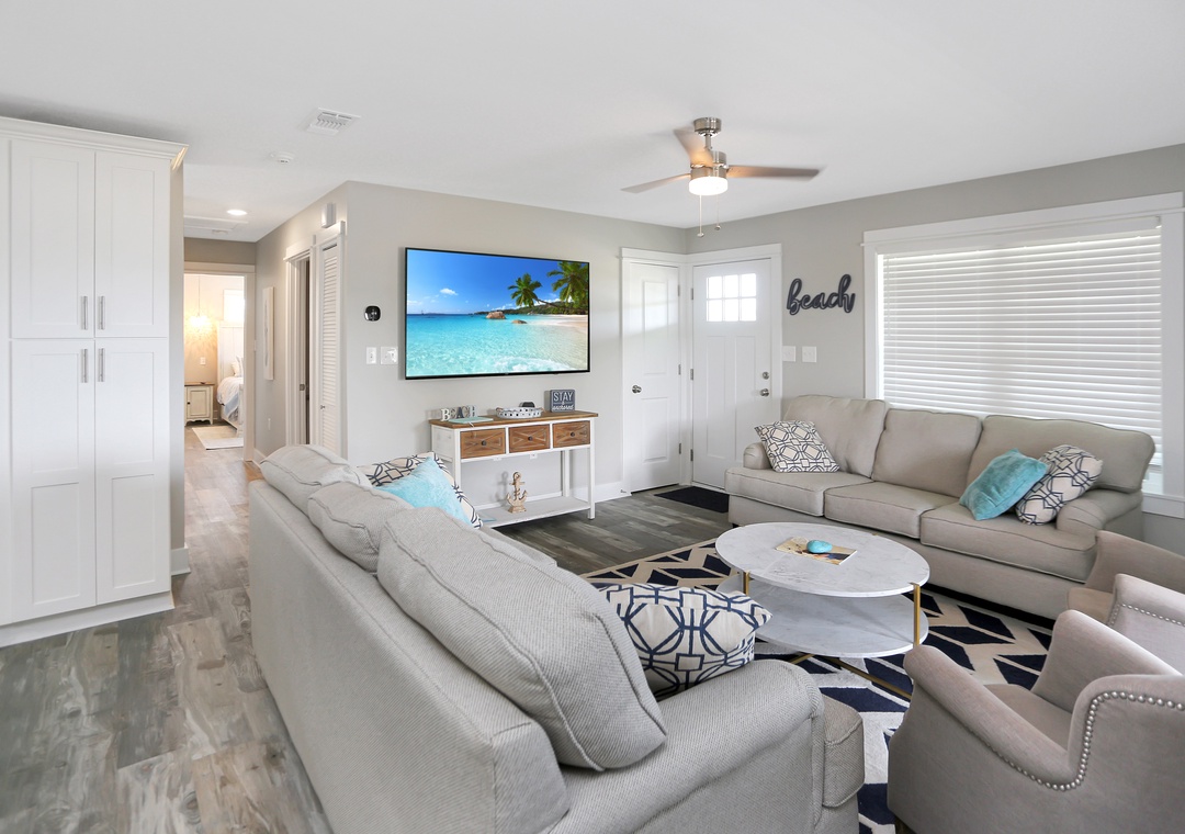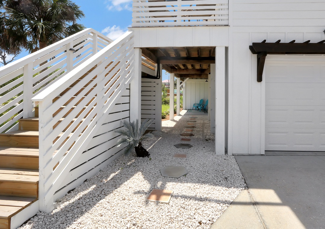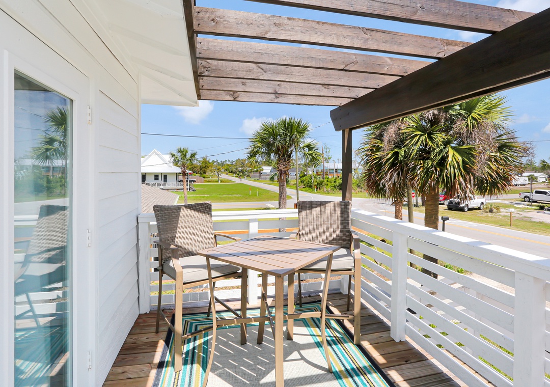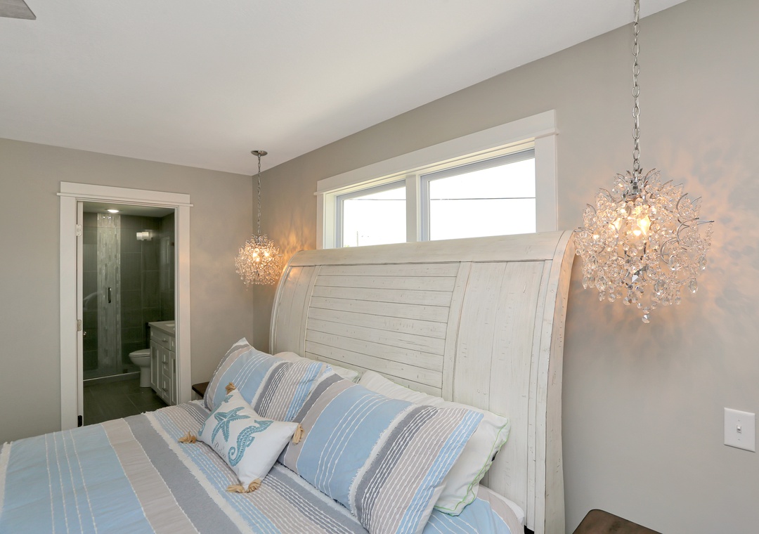 Anchored Inn is located just a short walk from the beach and has great views of the water from the large deck. If you do decide to bring your dog, or children lol, the owners have taken the worry out for you with a retractable gate on the top floor deck. This is where you will find a bistro table for your morning coffee, and the large picnic table for evening meals. Also outside, there is a great outdoor shower tucked away under the exterior stairs, a ground floor patio, a single car garage and a fire pit in the fenced in backyard.