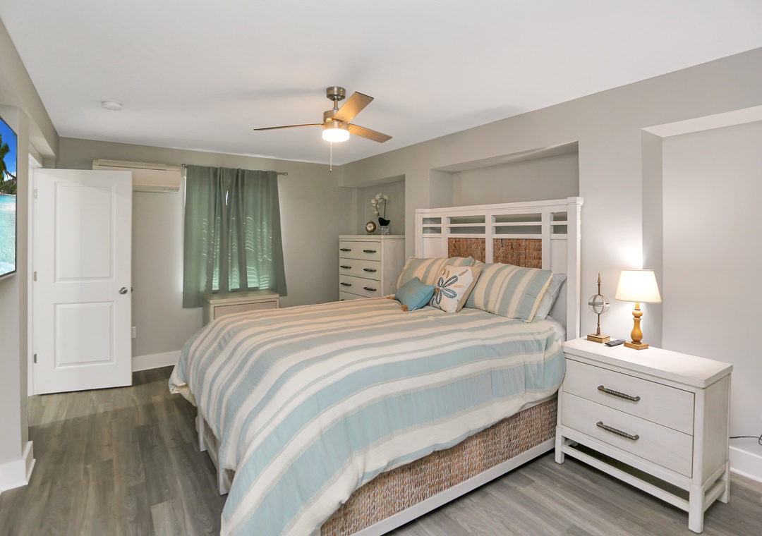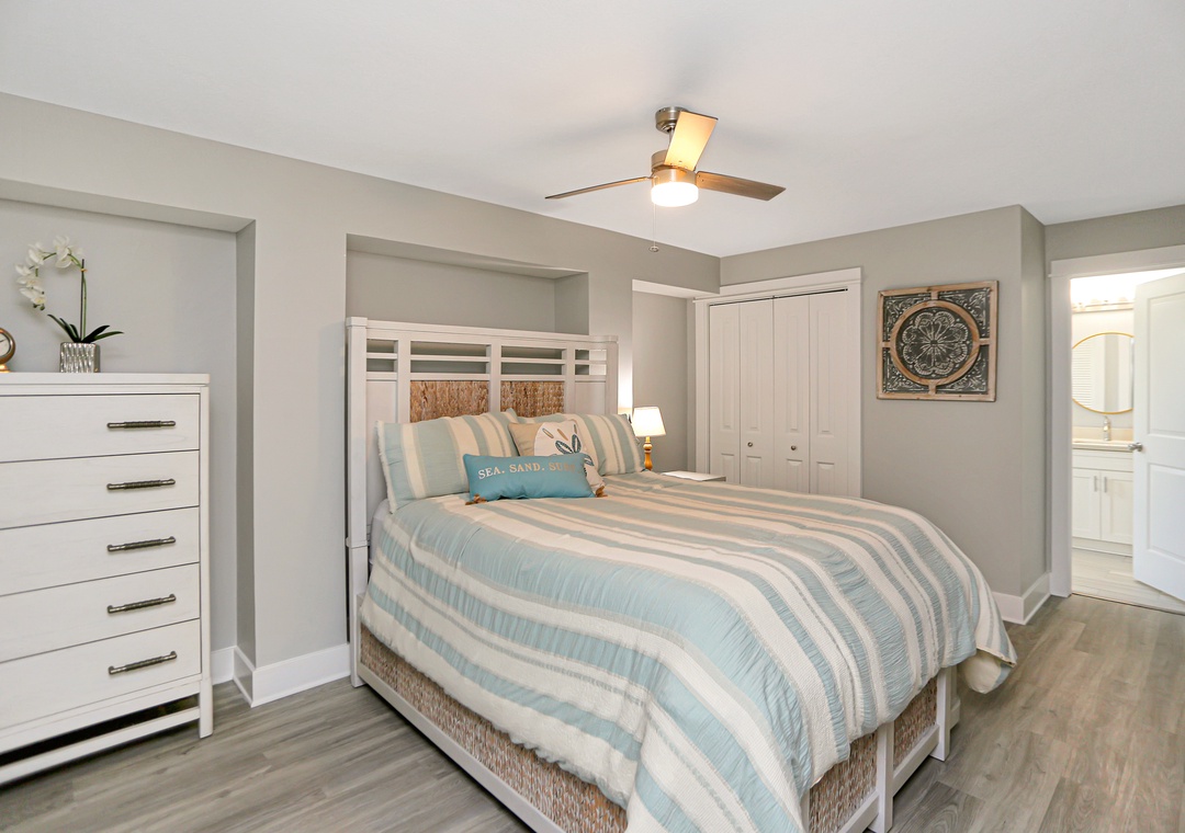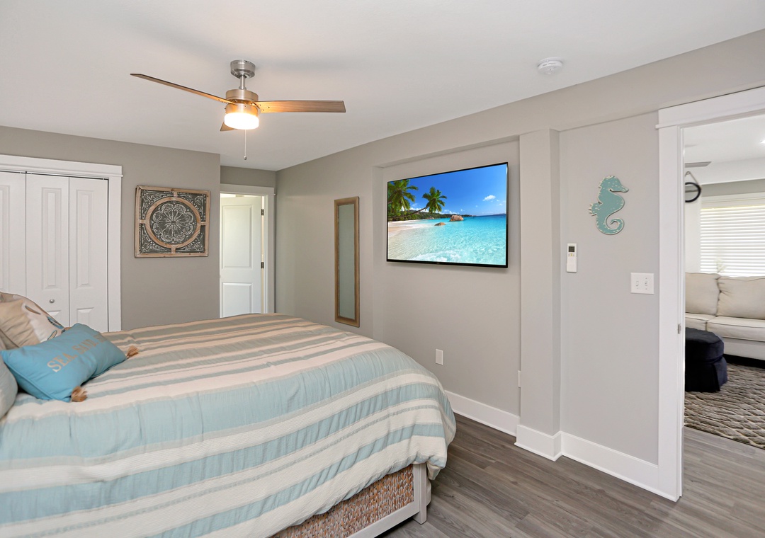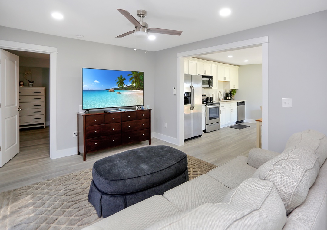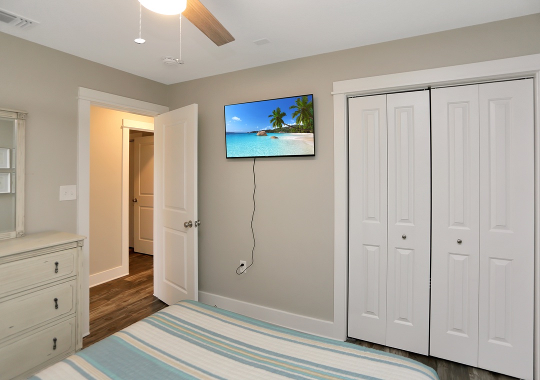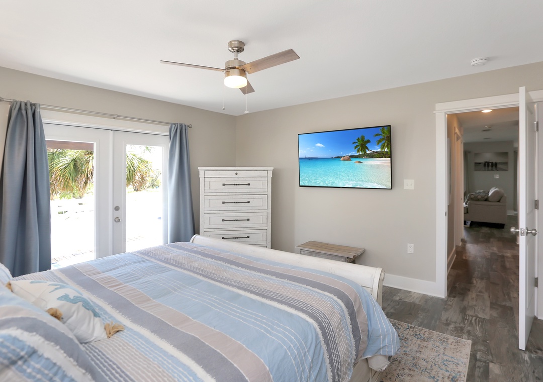 Anchored Inn is located just a short walk from the beach and has great views of the water from the large deck. If you do decide to bring your dog, or children lol, the owners have taken the worry out for you with a retractable gate on the top floor deck. This is where you will find a bistro table for your morning coffee, and the large picnic table for evening meals. Also outside, there is a great outdoor shower tucked away under the exterior stairs, a ground floor patio, a single car garage and a fire pit in the fenced in backyard.