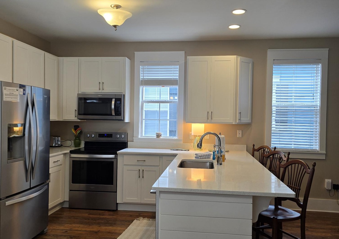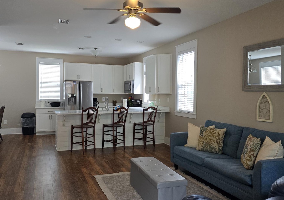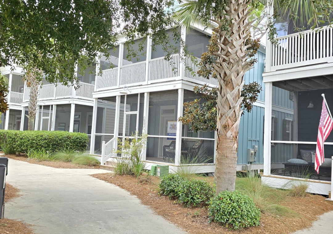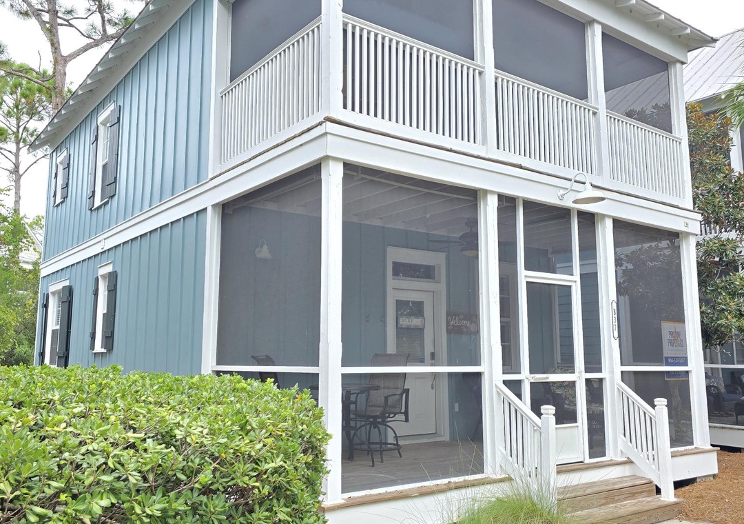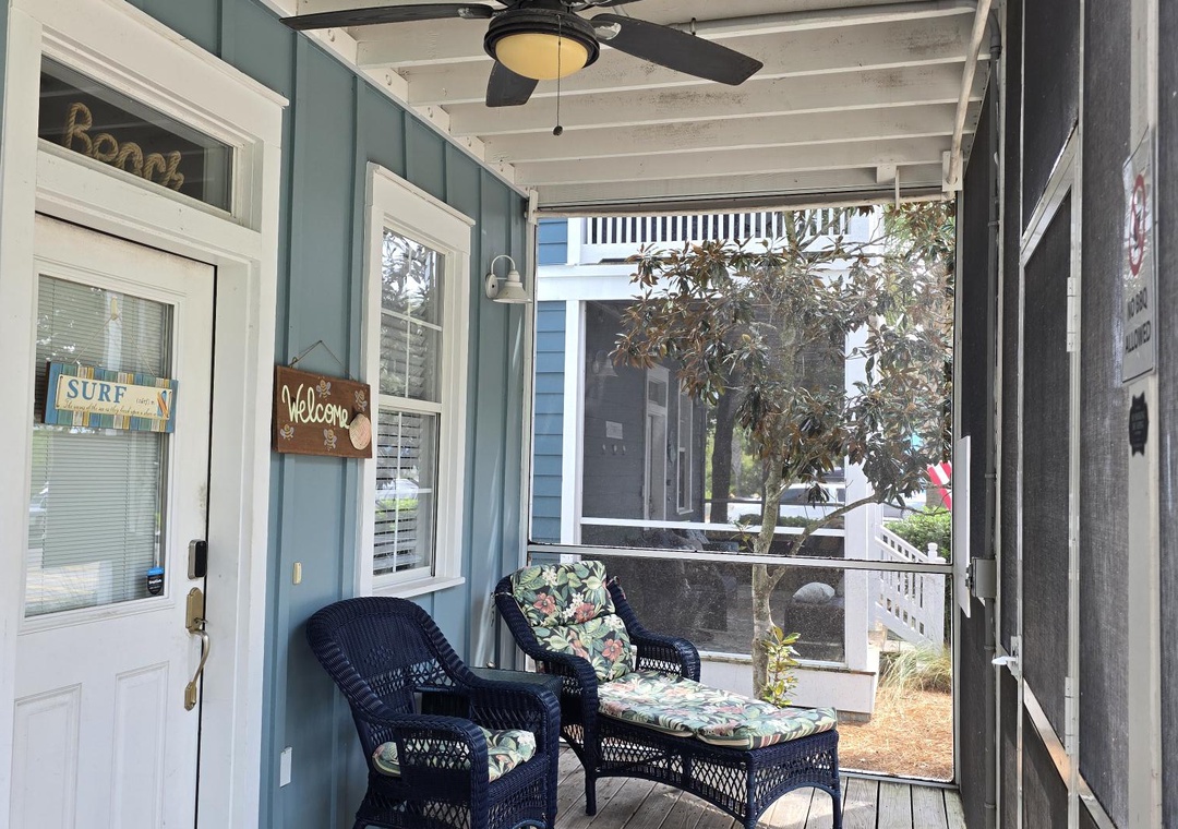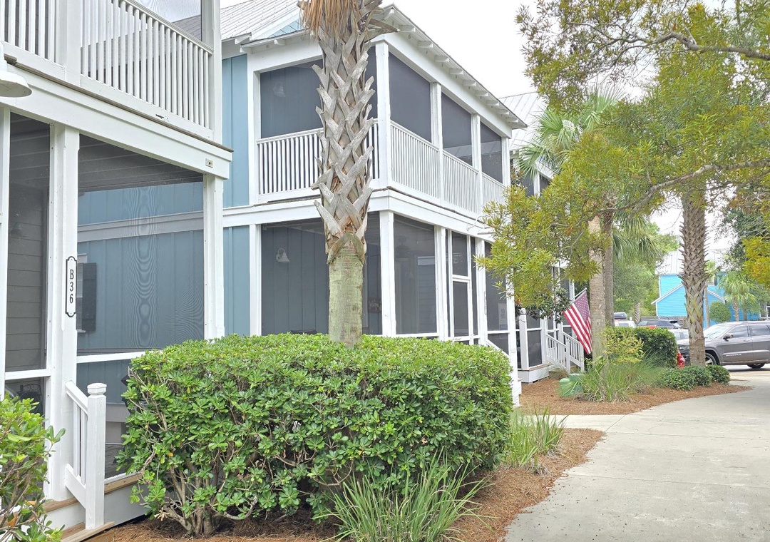 Nestled just steps away from the main community pool, Barefoot Cottage B-37, affectionately known as "The B's Knees," offers a delightful retreat for families or groups of up to six. This charming two-story single-family home boasts two bedrooms and 2.5 baths, providing ample space and comfort. As you approach, you'll be greeted by two levels of spacious screened porches on the front side, perfect for relaxing with a morning coffee or enjoying the evening breeze. The ground floor features an open design that seamlessly blends the living room, kitchen, and dining area, creating a welcoming space for gatherings. A half bath with a convenient laundry closet completes this level. Upstairs, the master bedroom offers a restful king bed and private bath, while the second bedroom is equipped with queen bed and its own en-suite bathroom.