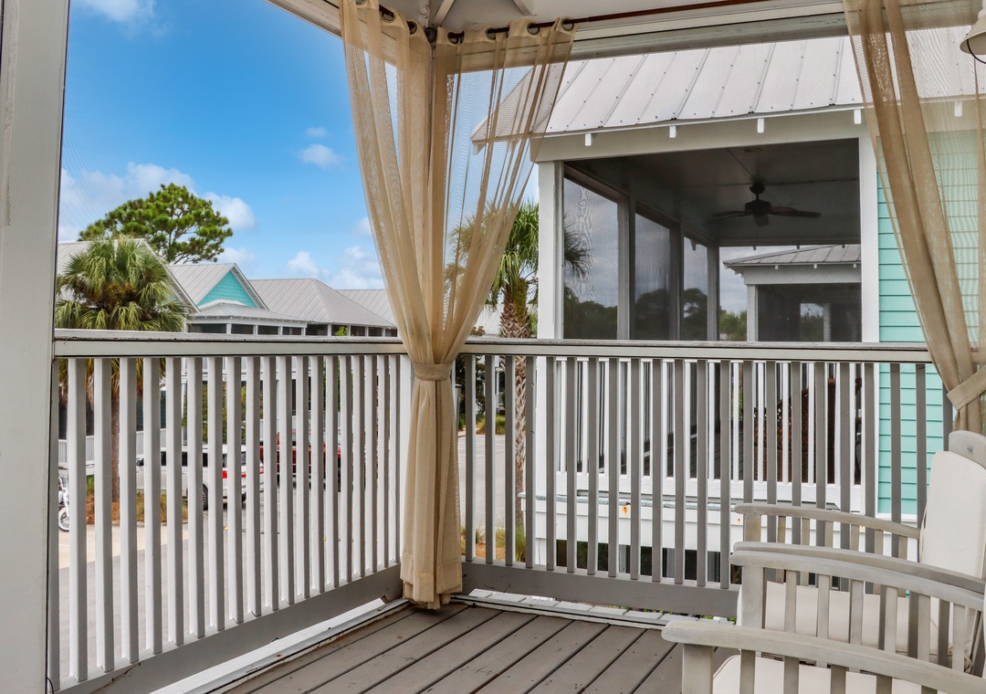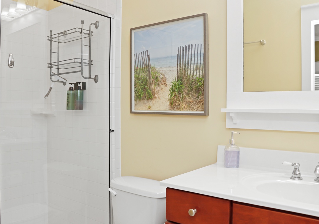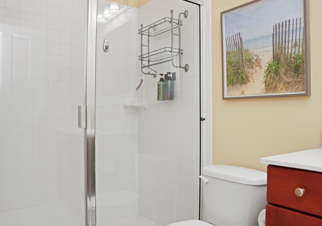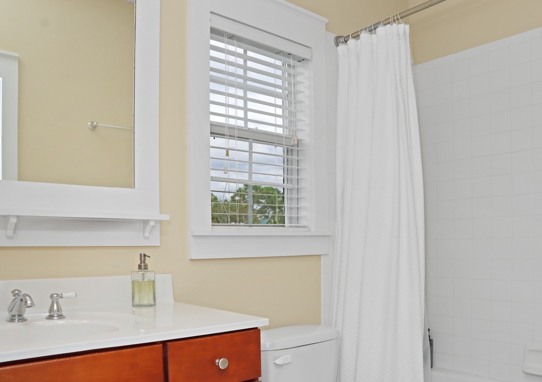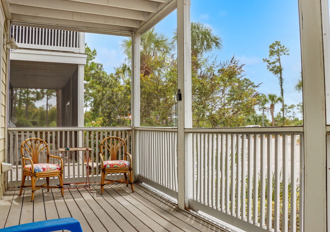 Barefoot Cottage B49 – Seabbatical is a charming 2-bedroom, 2.5-bath single-family home that comfortably sleeps 6. A spacious screened porch greets you upon arrival, perfect for relaxing after a day in the sun. The main floor features an open living area with a sleeper sofa and TV, a dining space, a well-equipped kitchen, and a convenient half bath with a laundry closet. Upstairs, the master suite offers a king bed, TV, private bath with a shower, and access to a screened deck. The second bedroom includes two twin beds and its own private bath. Located in the Barefoot Cottage community, just a mile from the nearest public beach access, this pet-friendly retreat blends comfort and convenience for the perfect coastal getaway.
