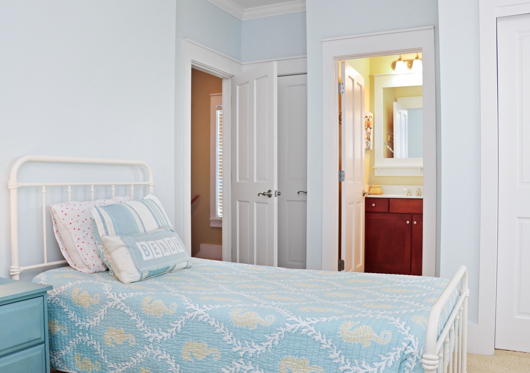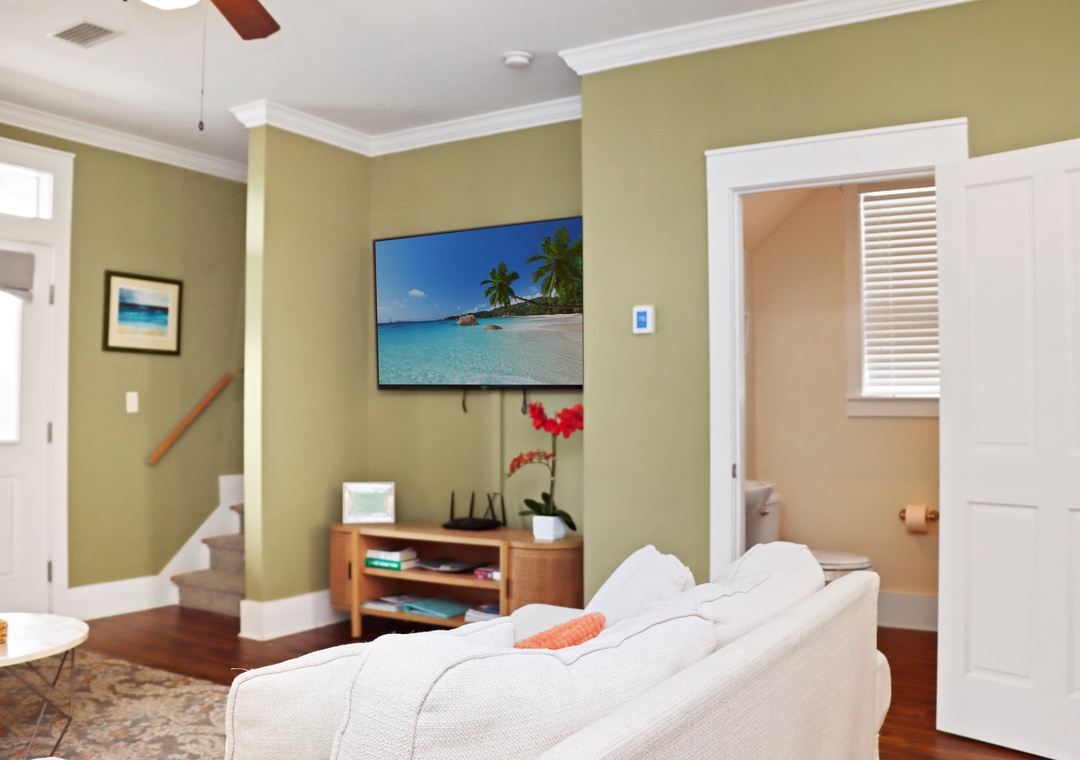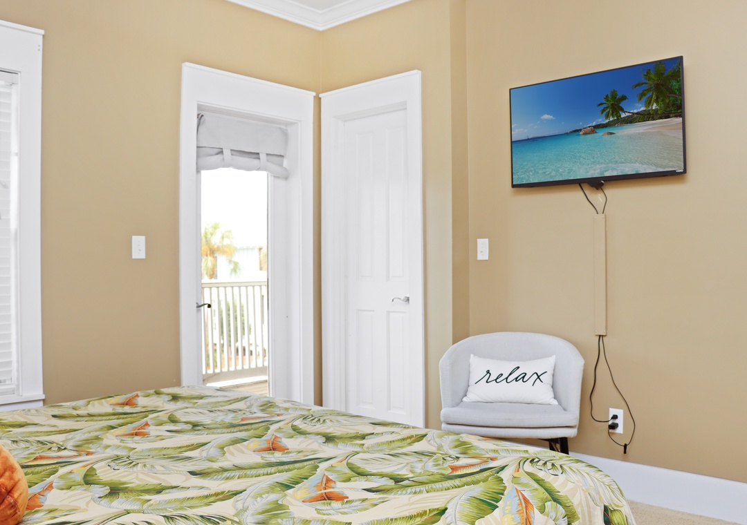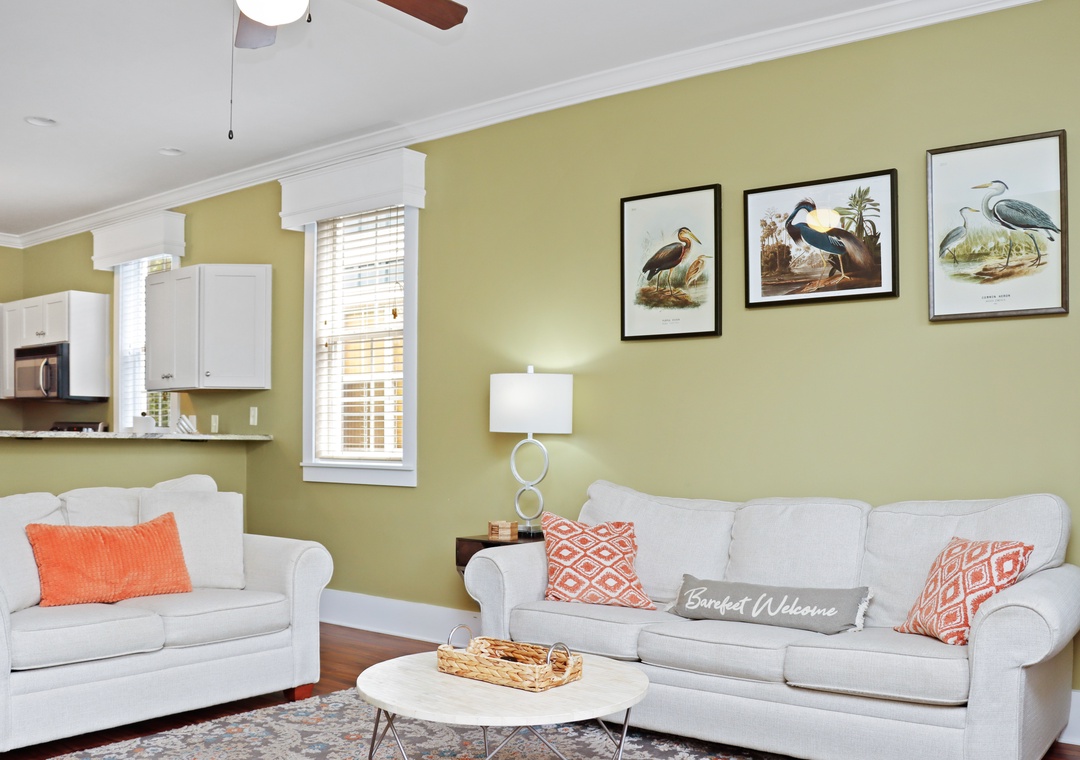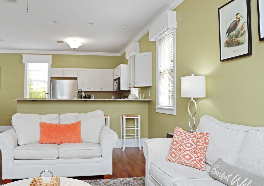 Barefoot Cottage B49 – Seabbatical is a charming 2-bedroom, 2.5-bath single-family home that comfortably sleeps 6. A spacious screened porch greets you upon arrival, perfect for relaxing after a day in the sun. The main floor features an open living area with a sleeper sofa and TV, a dining space, a well-equipped kitchen, and a convenient half bath with a laundry closet. Upstairs, the master suite offers a king bed, TV, private bath with a shower, and access to a screened deck. The second bedroom includes two twin beds and its own private bath. Located in the Barefoot Cottage community, just a mile from the nearest public beach access, this pet-friendly retreat blends comfort and convenience for the perfect coastal getaway.