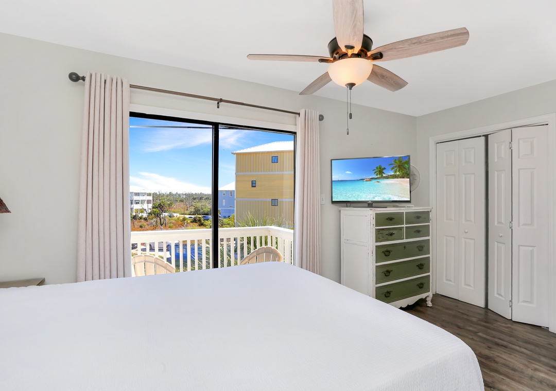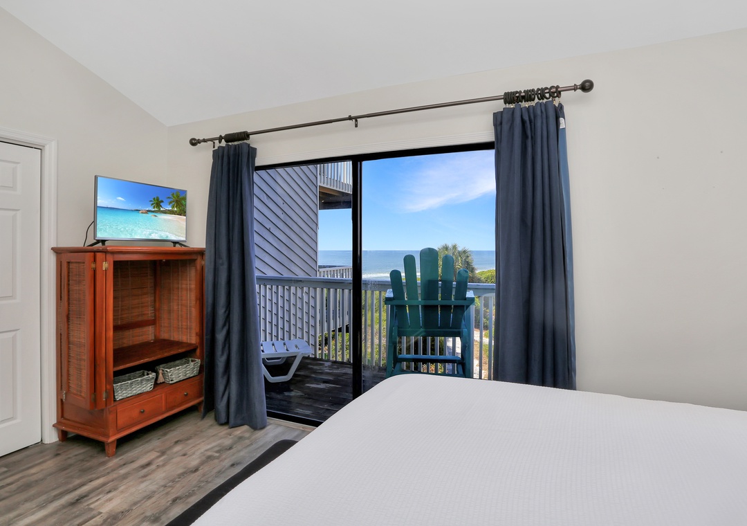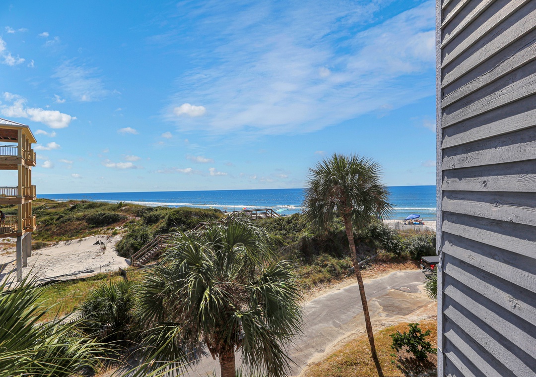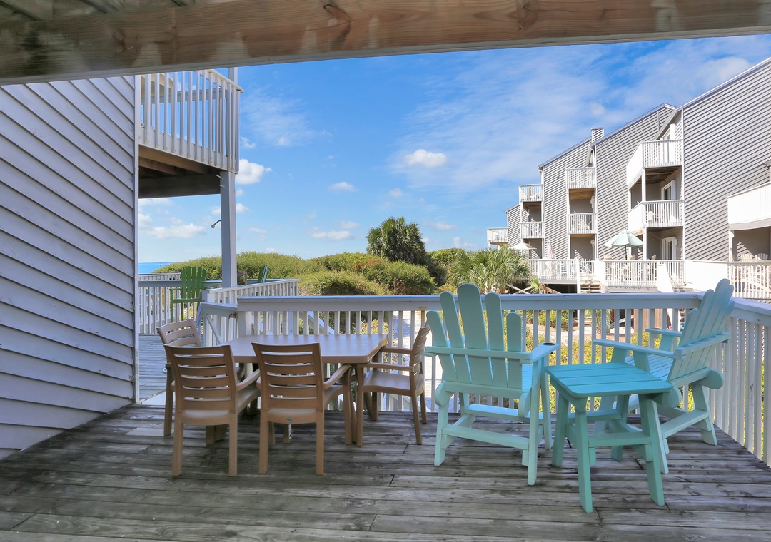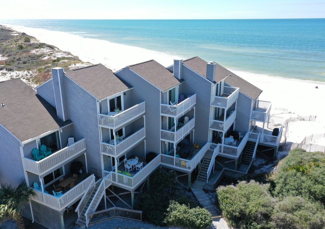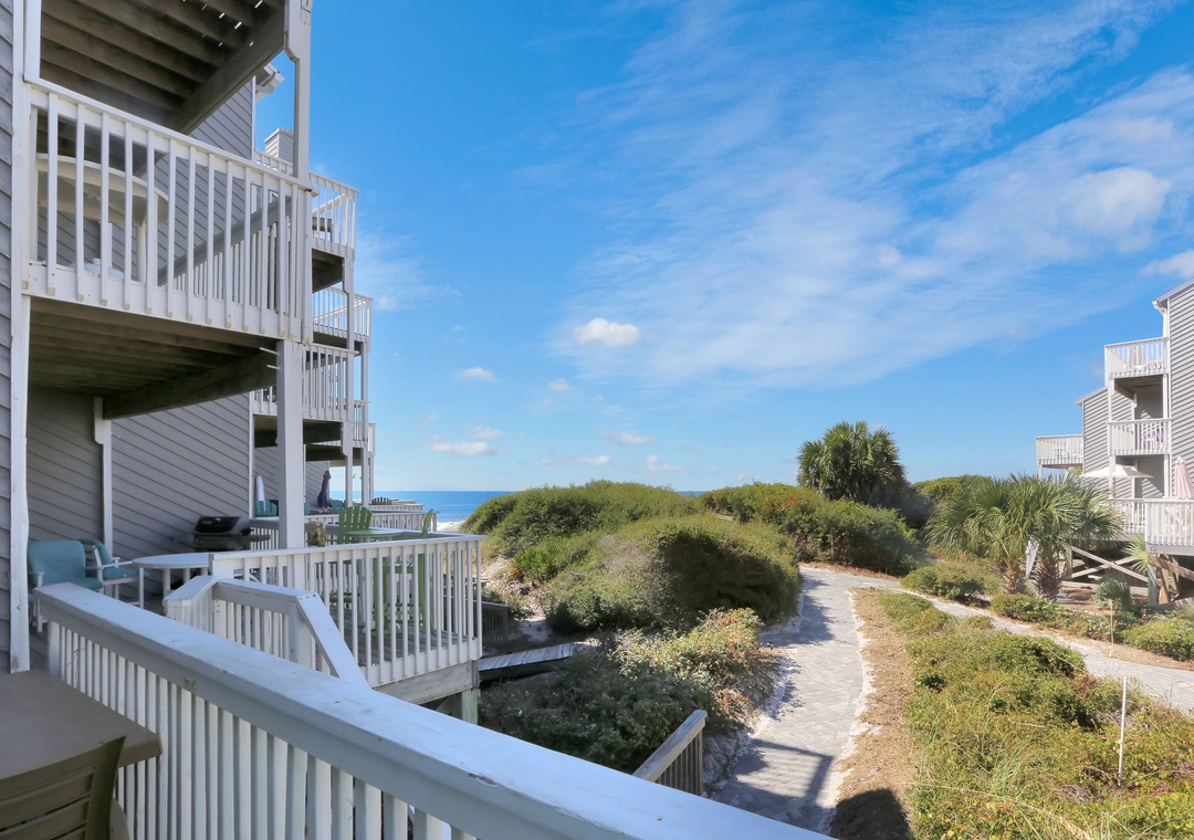 We will definitely stay here again if possible. The great thing about the unit is that the decks & sliding glass doors face more south than west. The decks are mostly shaded all day & the sun never gets on the glass so the interiors stay more comfortable. Good beach view from the upper deck, or sit on the raised chairs on the lower deck. You can even see the Gulf from the kitchen, a definite plus!- Posted: 9/21/2019