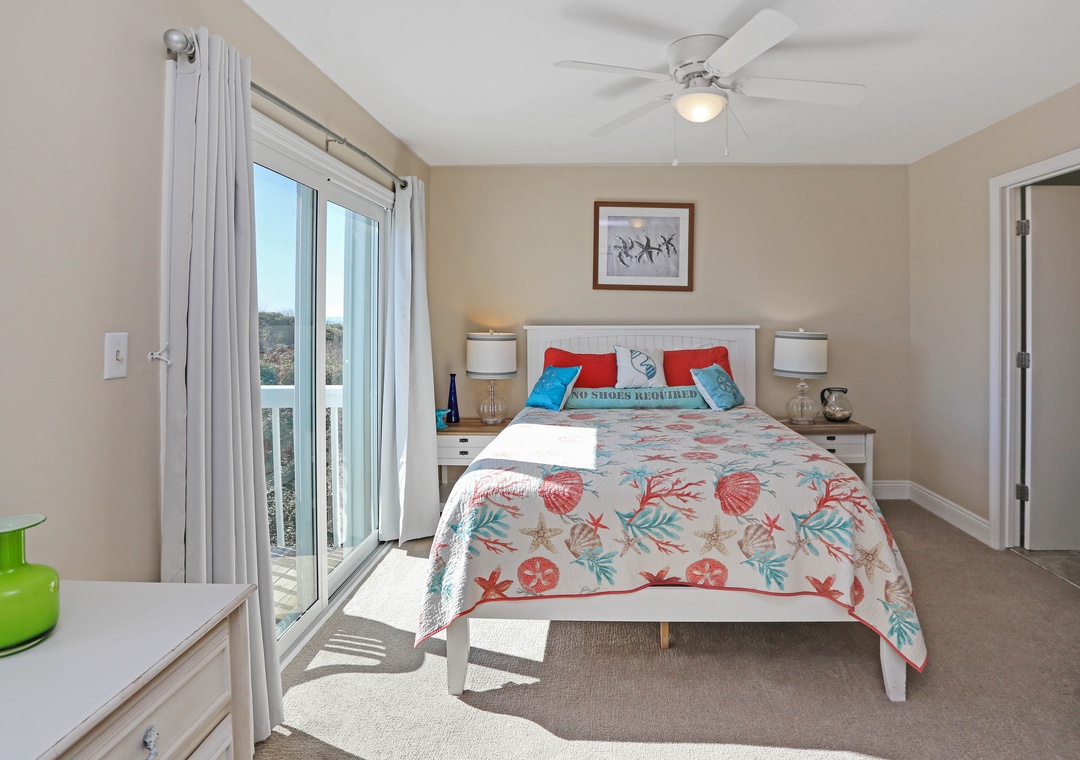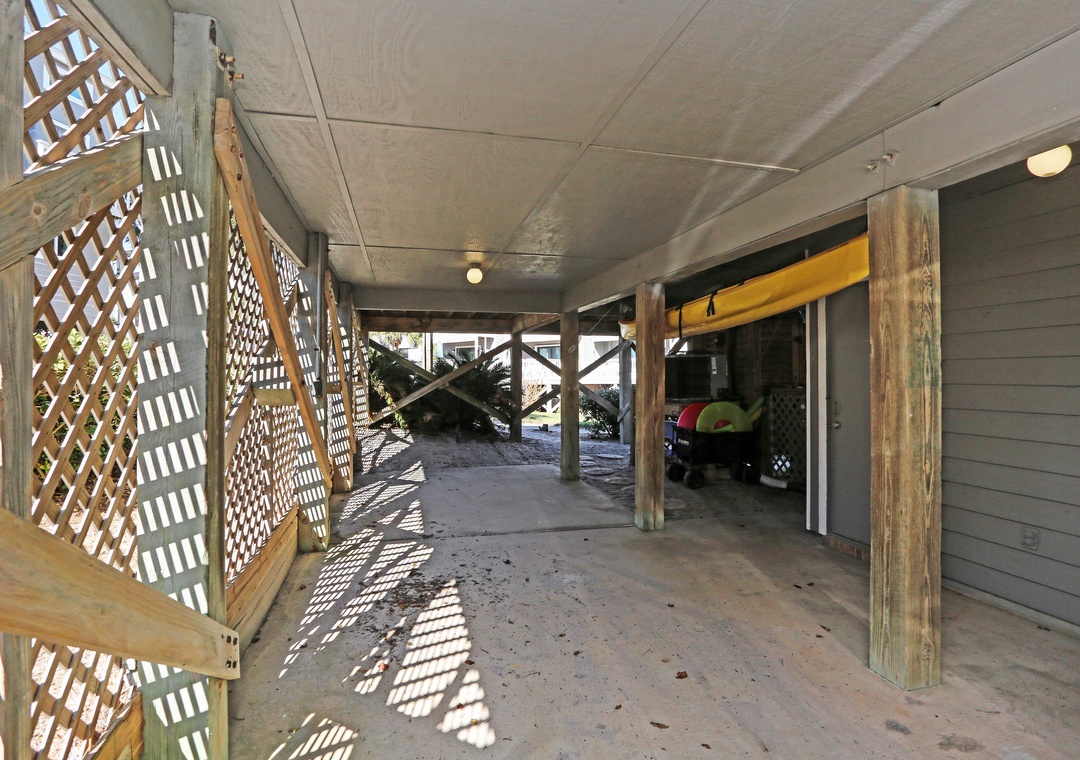 Click Here To Learn More!Floor Plan: Ground level-covered, paved parking and foyer. 1st level – Living Room with sleeper sofa, TV, DVD/VCR player, iPod dock and furnished deck; kitchen, dining area and half bath. 2nd level – Bedroom 1 – king bed, TV, DVD/VCR, full bath with shower only and a gulf view deck; laundry closet and Bedroom 2 – 1 queen bed, full bath with shower/tub combo and small gulf view deck. 3rd level – bonus sleeping loft with 3 twin beds and half bath.
