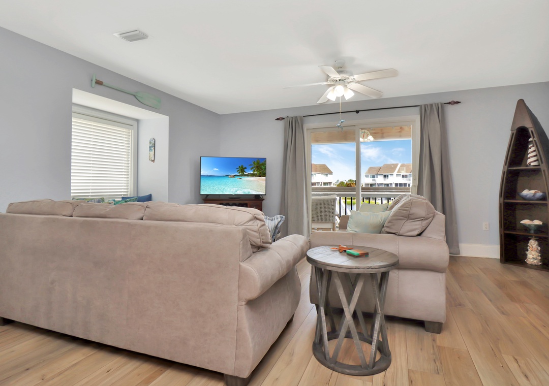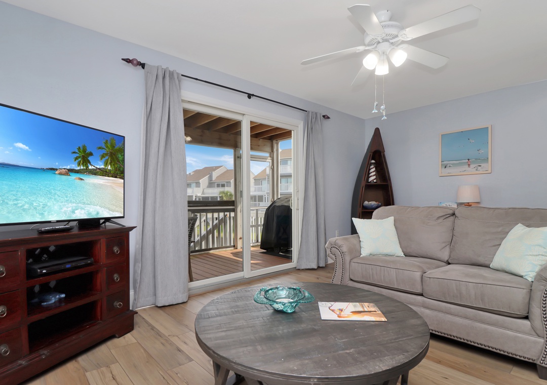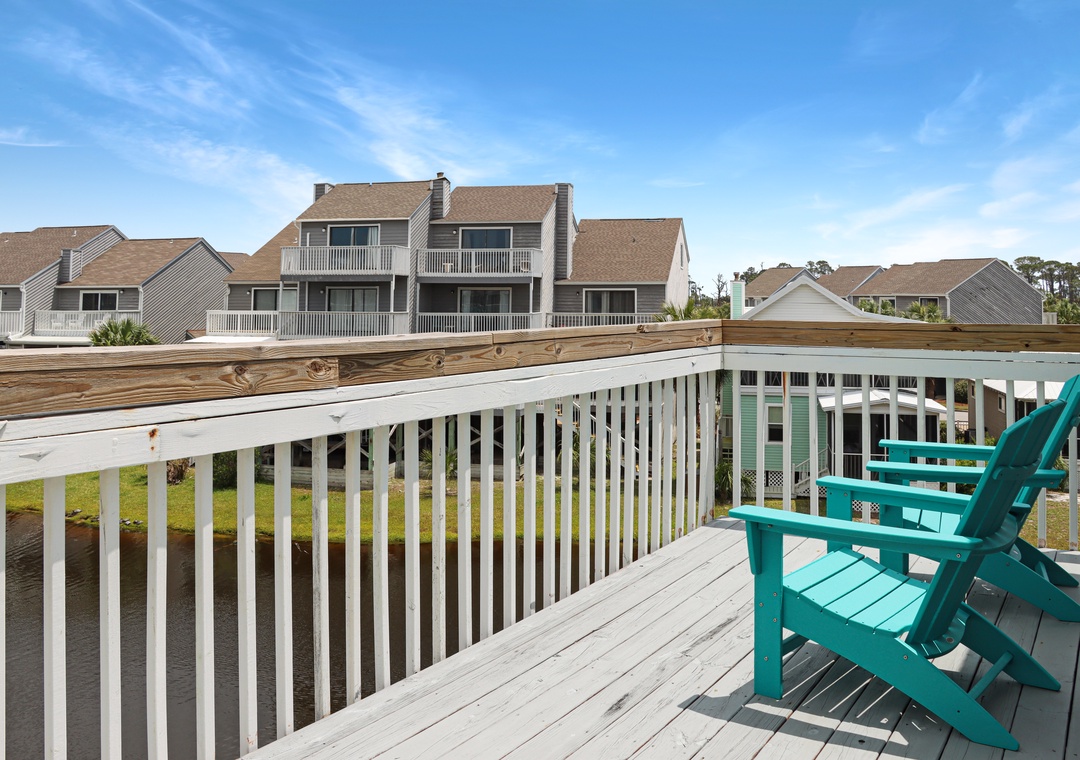 Cape Blessed is a two bedroom townhouse highlighted by its screen deck overlooking one of the neighborhood’s ponds. The property is centrally located and within steps of the interior pool and tennis courts.