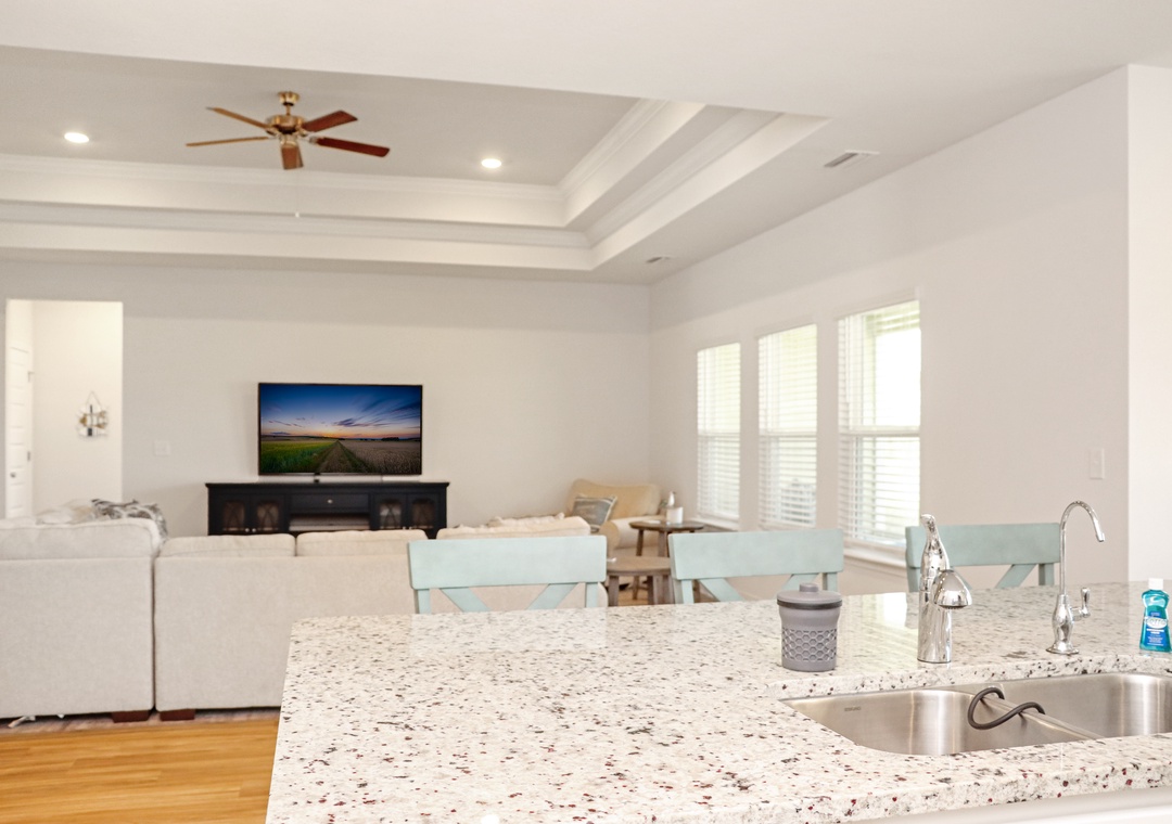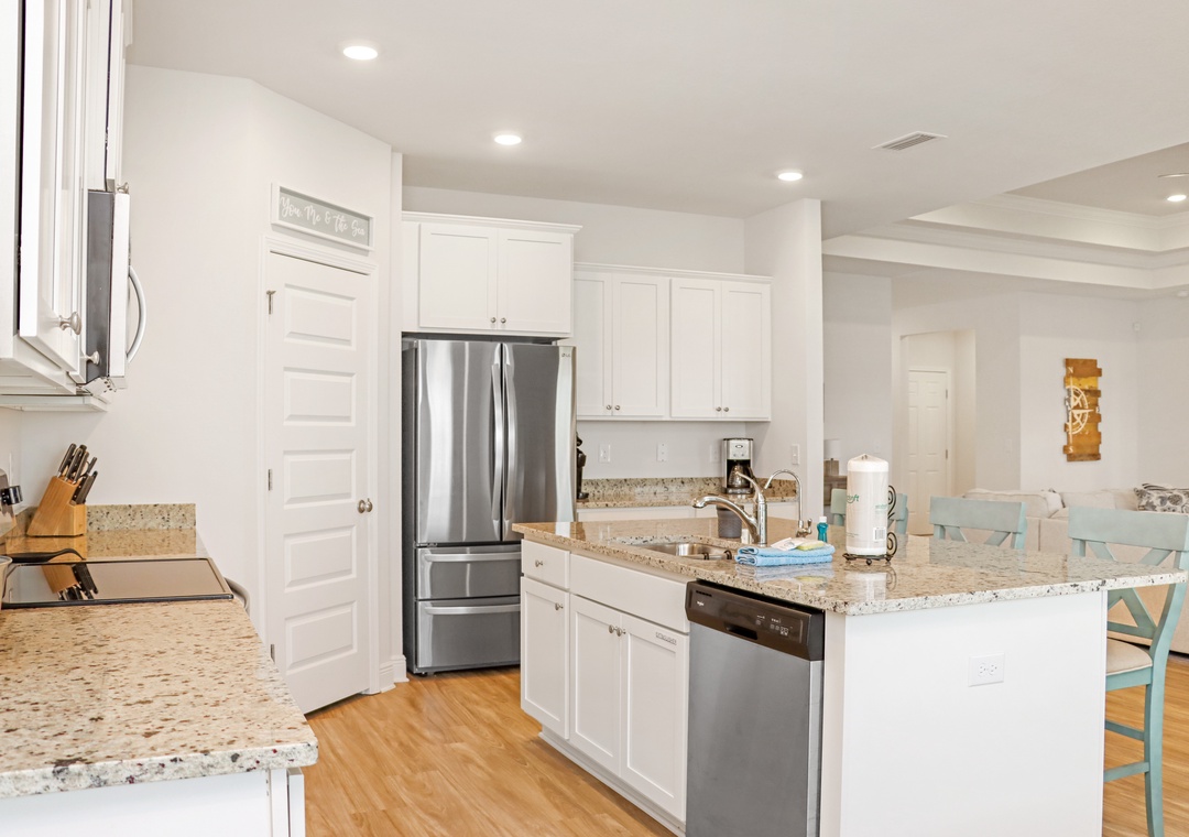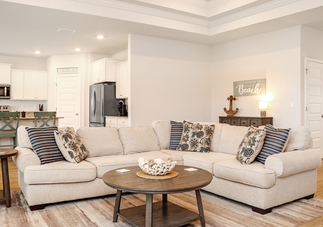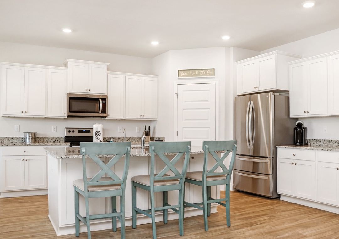 The well-appointed kitchen has plenty of counter space and overlooks the living room, making it easy to carry on conversations while preparing meals or snacks. Step outside and discover a world of activity within the coastal community. Enjoy walking and biking paths, gather around community fire pits, or take a dip in the zero-entry community pool.
