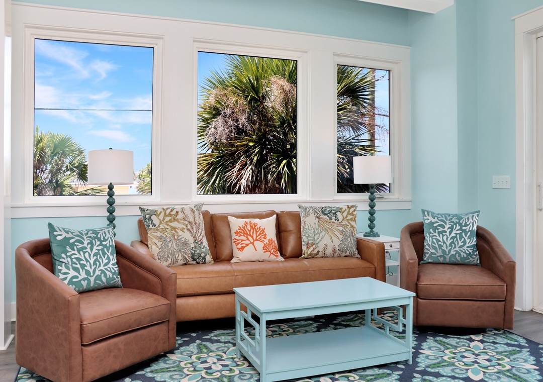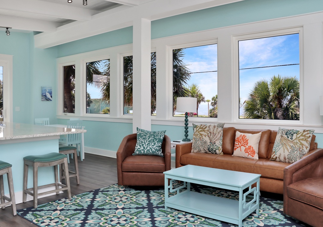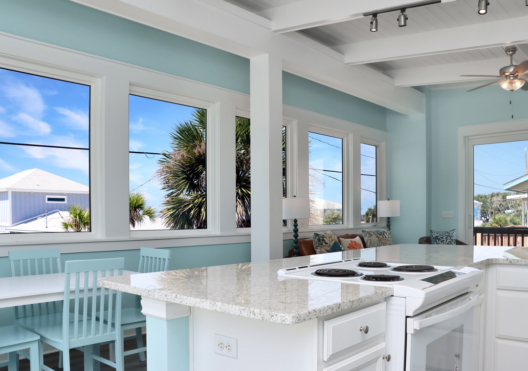 Only 175 steps from the beach, on the corner of 1st Street and Oleander in beautiful Mexico Beach, is a sweet treasure at Beach View Upper. Sometimes vacations are meant for just the two of you or your family of four; sometimes, they’re meant for you and you alone. Whether you decide to take a solo journey or bring others with you, you’ll find your spot at Beach View Upper. Let’s start with the views - INCREDIBLE! Surrounded by windows, the blue sky and water feel so close that you can reach out and dip your toes in. The interior is perfectly designed to maximize these views creating a peaceful retreat.