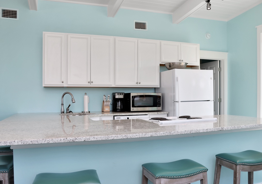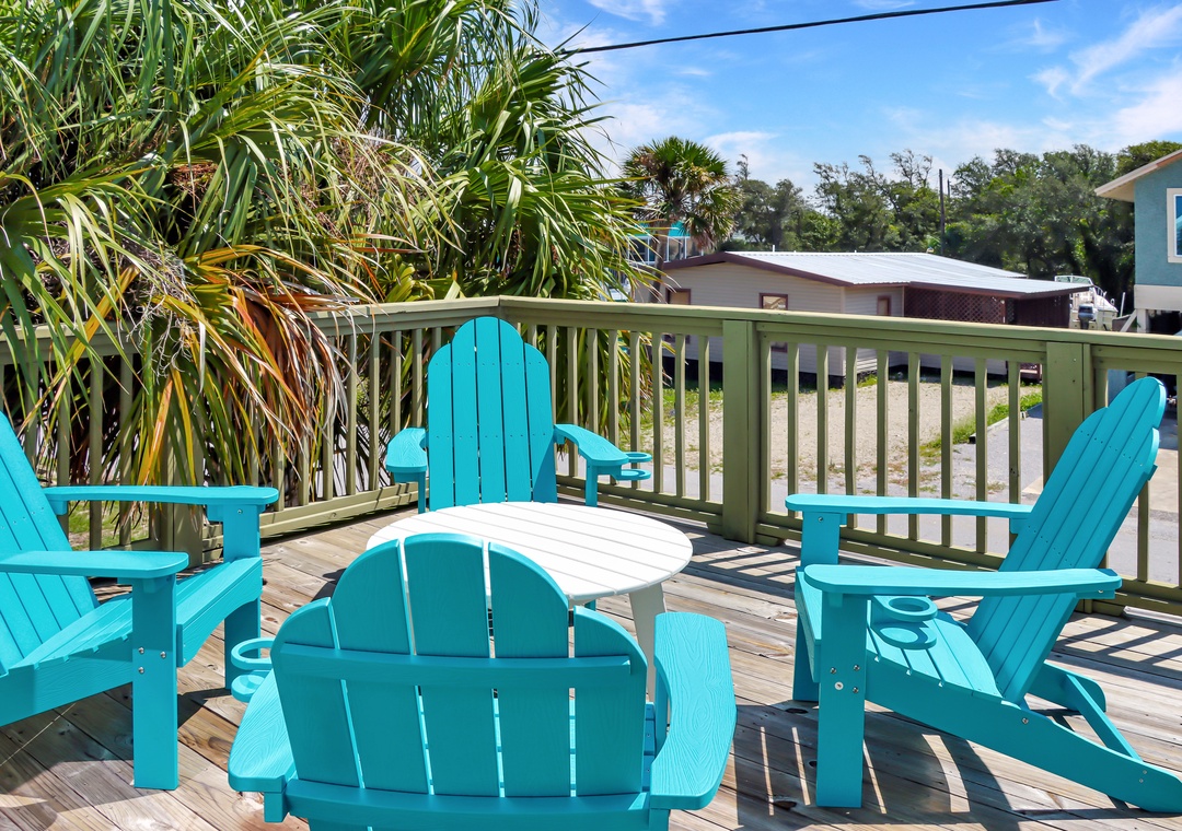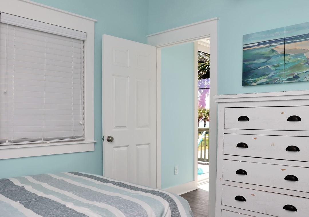 While small, this two-bedroom, second-floor duplex has everything you possibly need on vacation. Impeccably decorated and furnished, cool beach vibes will meet you at the front door. On the beachside of the property is a small walkable deck that stretches the width of the house and leads to a larger sundeck with amazing views. That is where you will want to start your mornings.