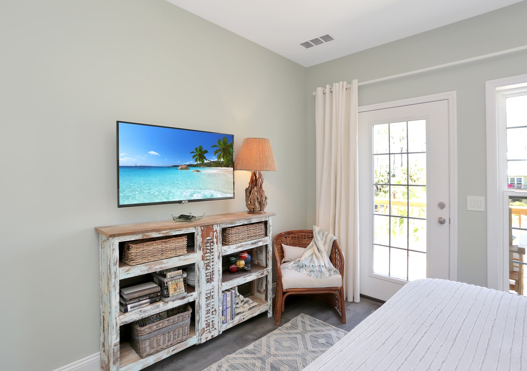This is an absolutely beautiful property and well appointed. From the stocked kitchen to the beautiful decor and attention to detail. We thoroughly enjoyed our stay as a family. The screened in porch was perfect for gathering at night as well as the downstairs during the day. It was just perfect. All of it! I’d like to suggest getting some lighting for the outside. We couldn’t see going down the steps at night when the solar powered lights were out of solar storage. I especially liked the personal touches in the unit like to local photographer photograph and the story of the picture on the nightstand! Just really pretty, comfortable and inviting!