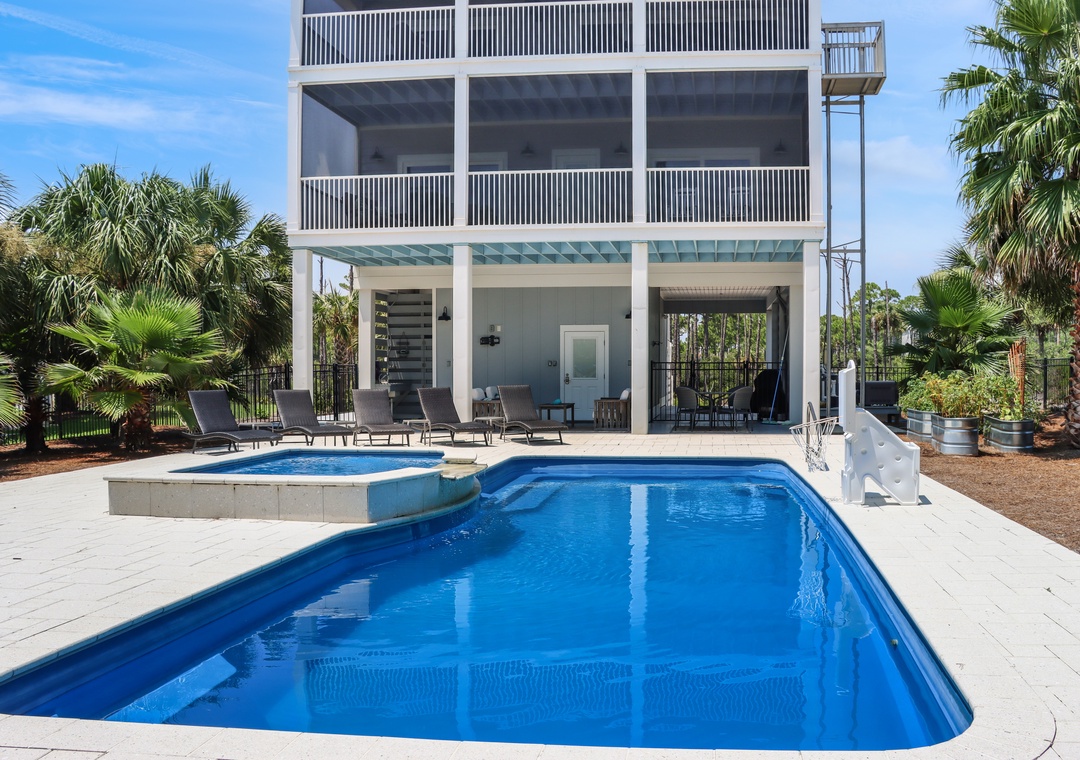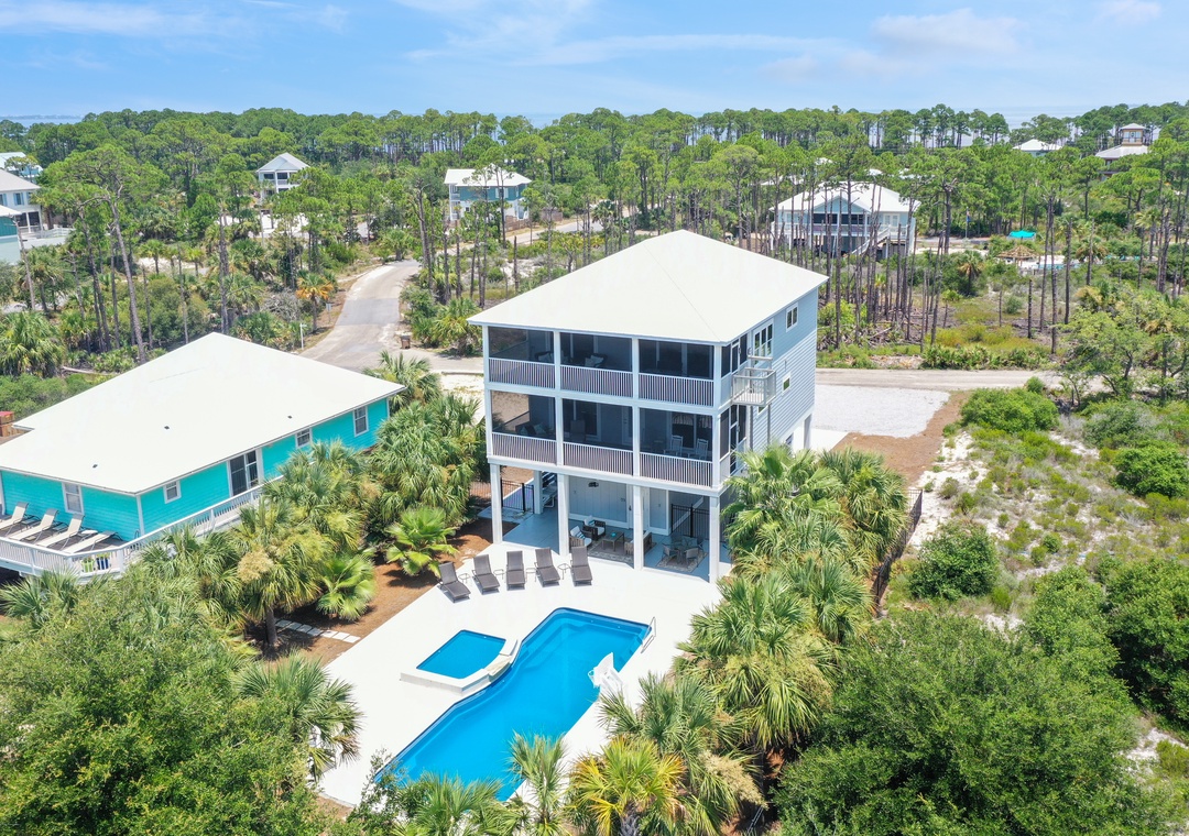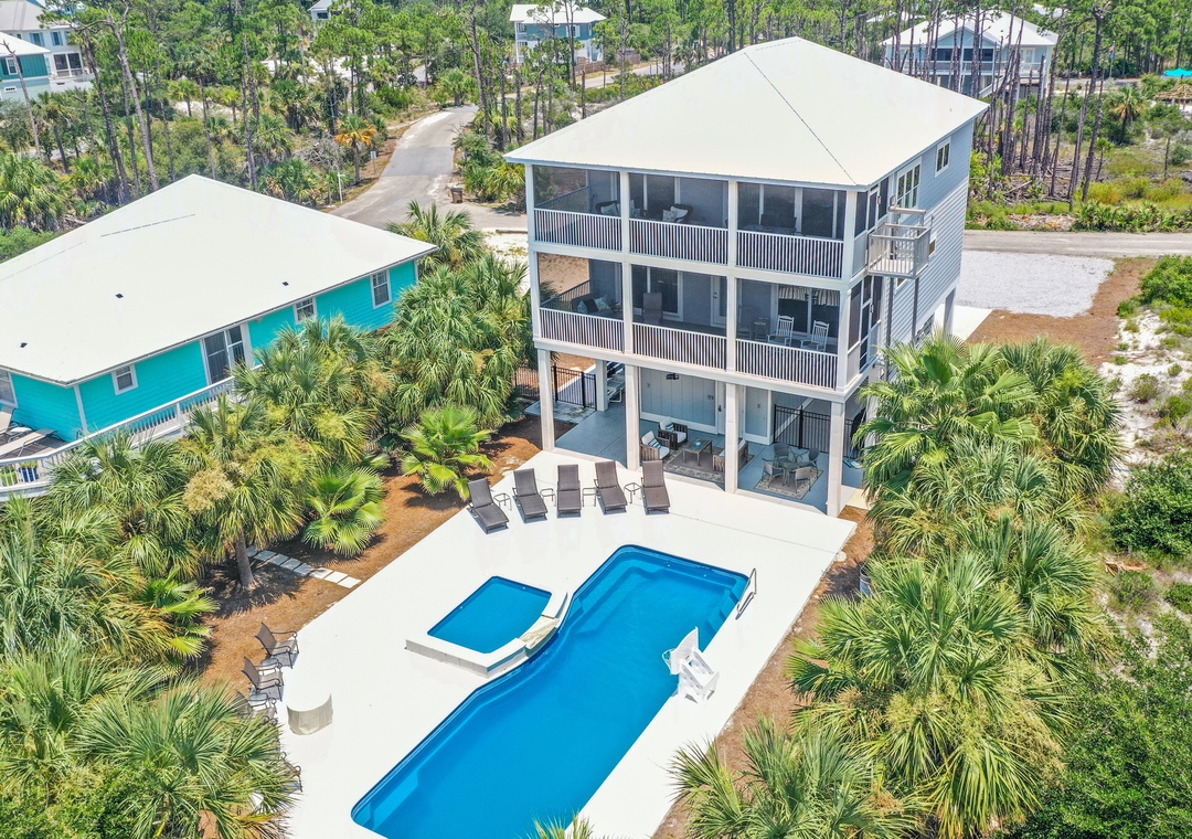 The Bleu Rivage is named after the French translation of "Blue Shore." It's up to you to decide whether this refers to the stunning views of the Gulf of Mexico, the peaceful St. Joseph's Bay, or the amazing private pool in the backyard, including a separate splash pool. Whatever your choice, you can't go wrong with the Bleu Rivage.
