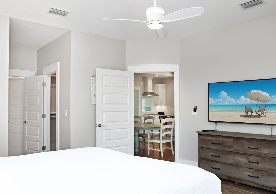 Beautiful home and pool. Beach view from the 3rd floor was beautiful. The Queen bed mattresses were noisy when you rolled over or moved in any way and the Queen beds were small. There are 3 floors to this unit and the master and kitchen are on the 3rd floor so not a good choice for elderly visitors. The community needs to extend the boardwalk closer to the beach. Walking through the hot sand pulling a beach wagon was very difficult. This unit needs a broom.- Posted: 6/8/2024