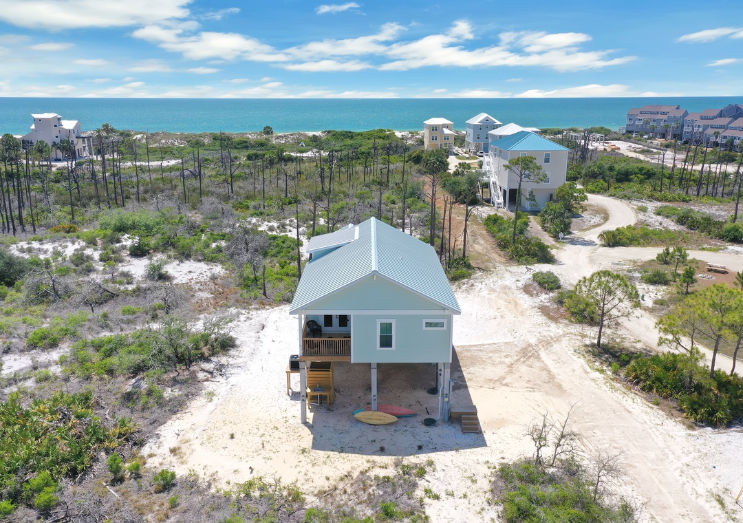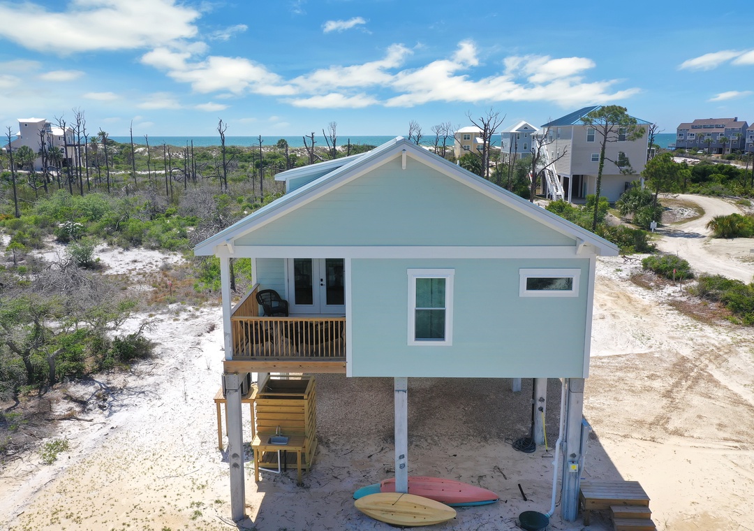 Cape San Blas is a 19-mile long peninsula tucked between the Gulf of Mexico and St. Joseph Bay. The Cape is anchored by the St. Joseph Peninsula State Park, a wonder of nature. Many visitors choose to vacation in Gulf County because of the abundance of outdoor activities at the State Park. Located roughly one mile from the entrance sits Cape Bear, a vacation rental home designed to enjoy.