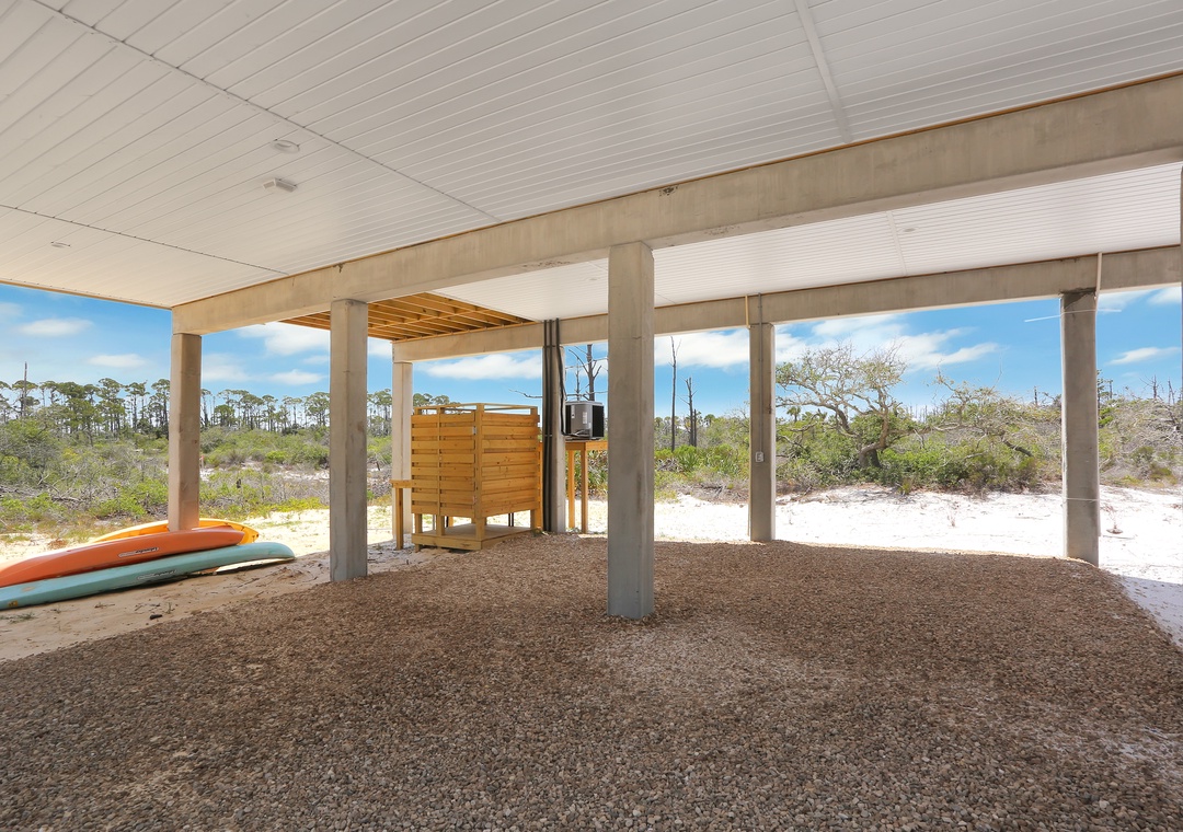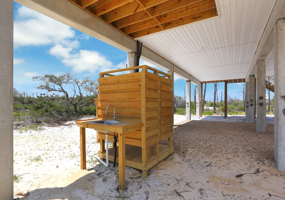 With a great outdoor space, including an outdoor shower and fish cleaning area, Cape Bear is just right to make ending your day of adventure at the park convenient and easy. While there is no deeded beach access from the property, several public options are nearby. Aside from the State Park, Dunes Drive Access and Cape Palms Park are located within a 4-minute drive. If you want to travel by foot, Coneheads 8020 is located within walking distance and easy to get to to enjoy an ice cream cone or local seafood for lunch or dinner.