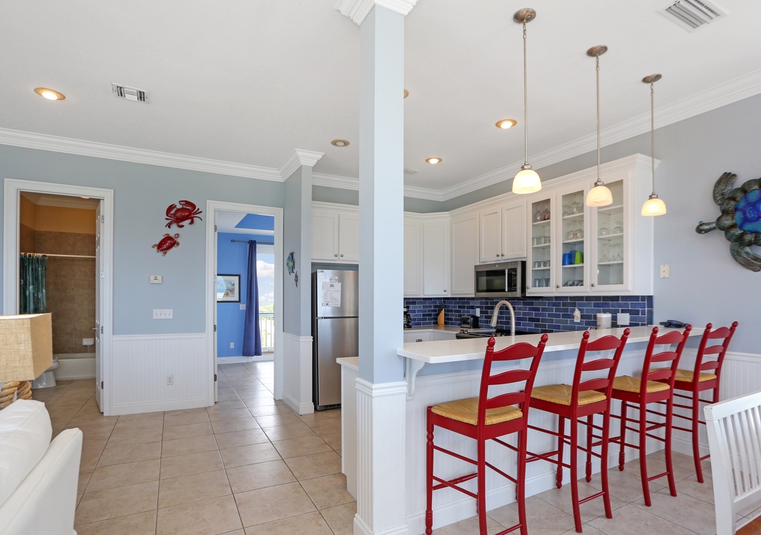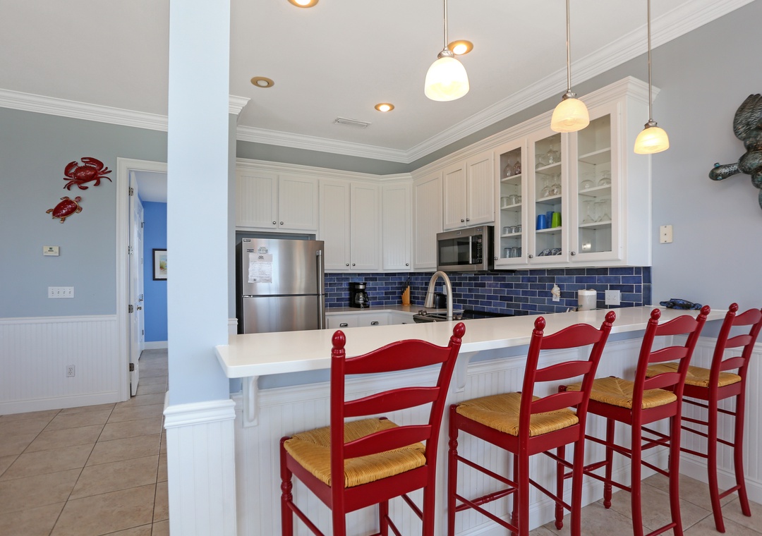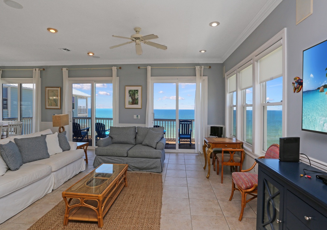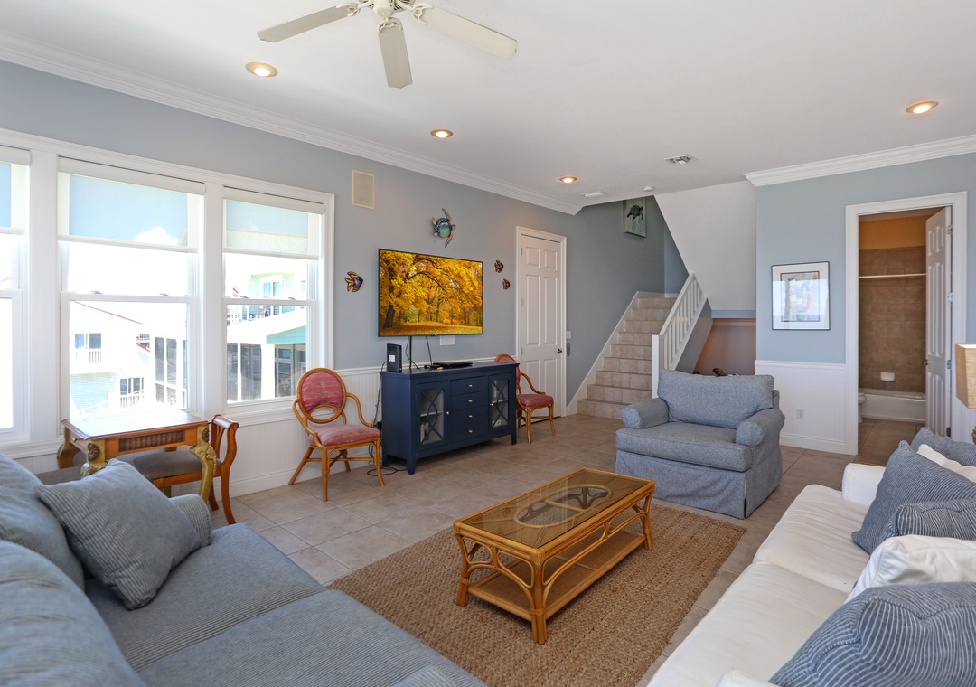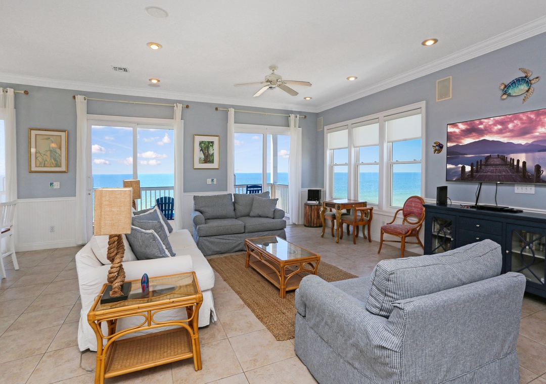 2nd Level-Kitchen, Dining, and Living Area that opens onto a gulf front balcony; Living room includes a TV, DVD/VCR, game table and sleeper sofa; Bedroom 4-1 Duo bunk bed plus a twin trundle, TV and a full bath that also connects to the living area.