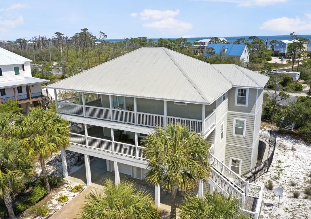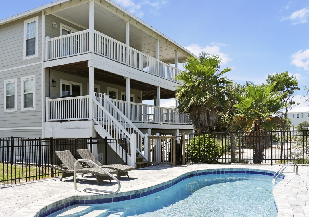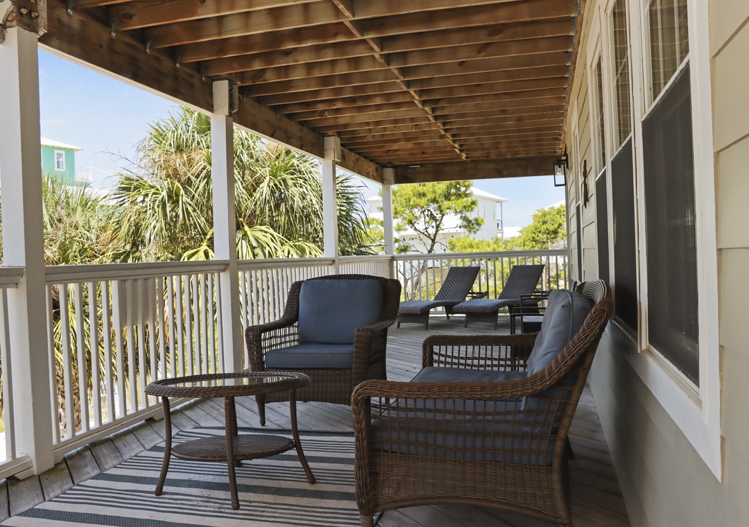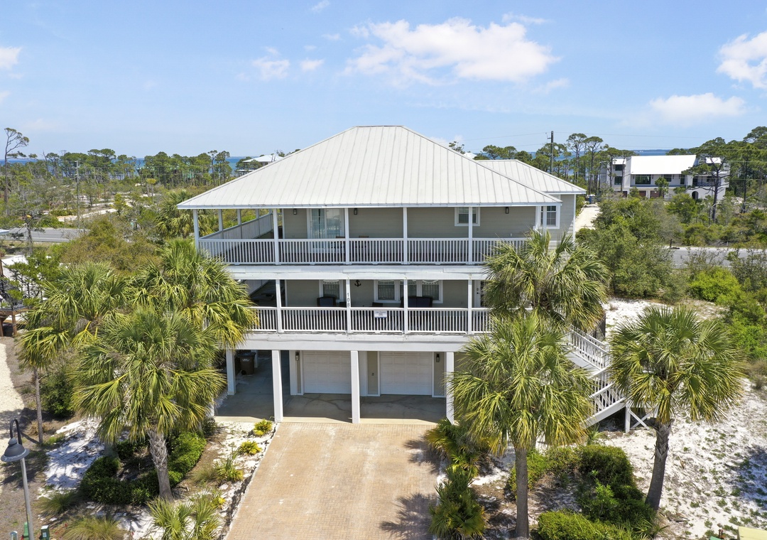 One of the highlights of Cape Dreamin' is the two levels of decks that wrap around two sides of the house. From these decks, you can enjoy stunning views of the beach on one side and the private pool and St. Joe Bay on the other. Imagine sipping your morning coffee while watching the sunrise over the bay or enjoying a glass of wine as you watch the sunset into the gulf.