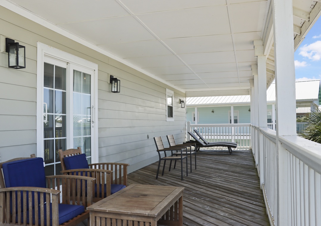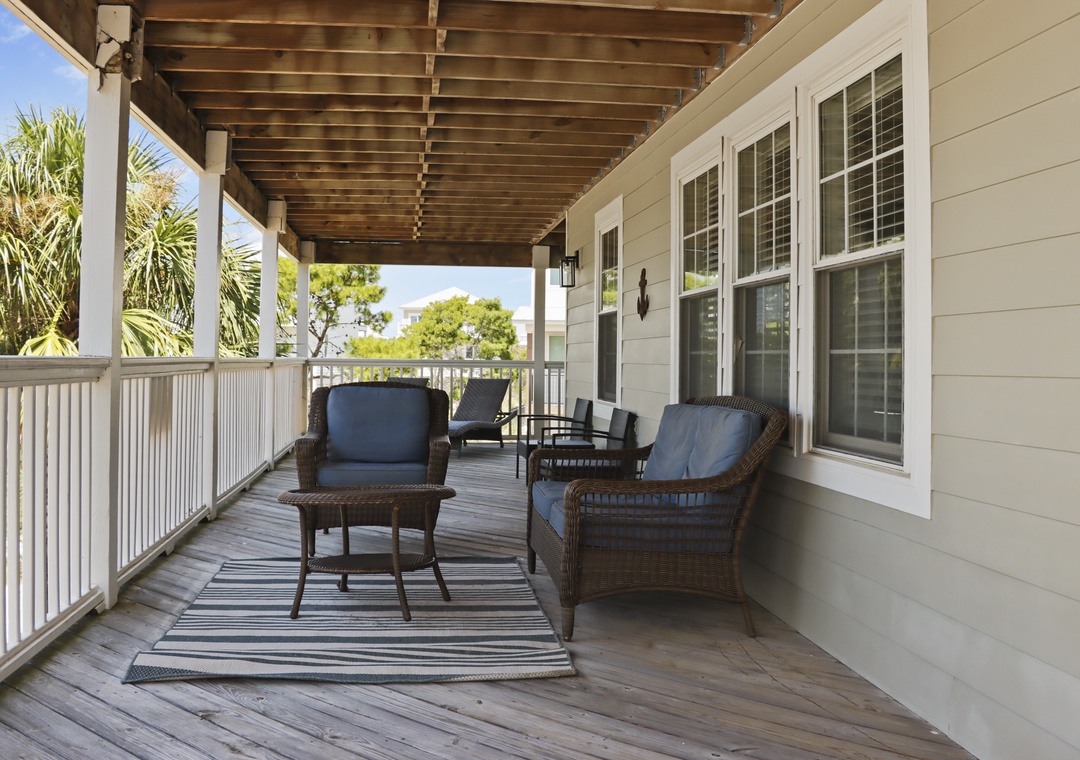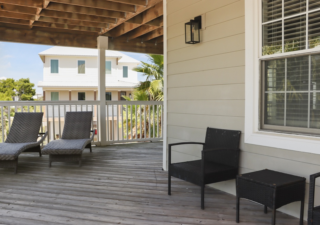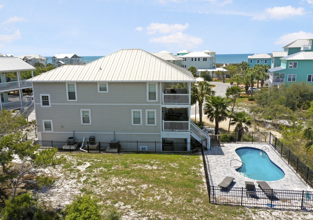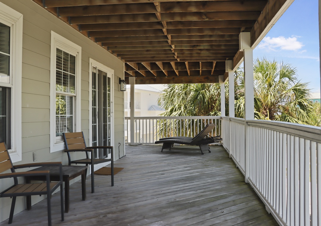 One of the highlights of Cape Dreamin' is the two levels of decks that wrap around two sides of the house. From these decks, you can enjoy stunning views of the beach on one side and the private pool and St. Joe Bay on the other. Imagine sipping your morning coffee while watching the sunrise over the bay or enjoying a glass of wine as you watch the sunset into the gulf.