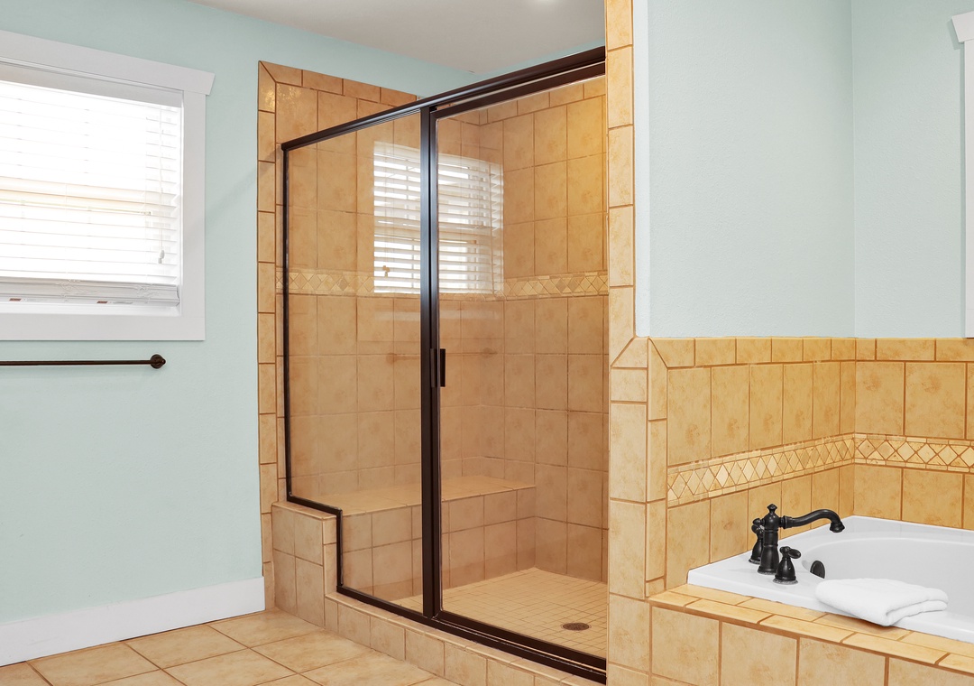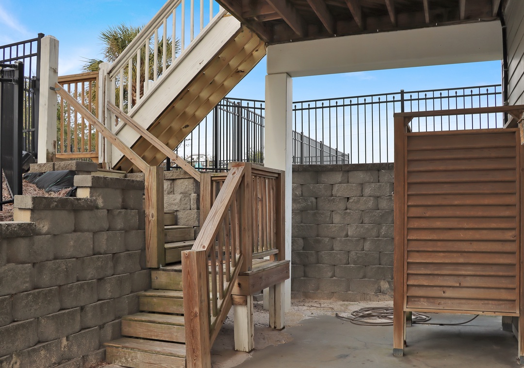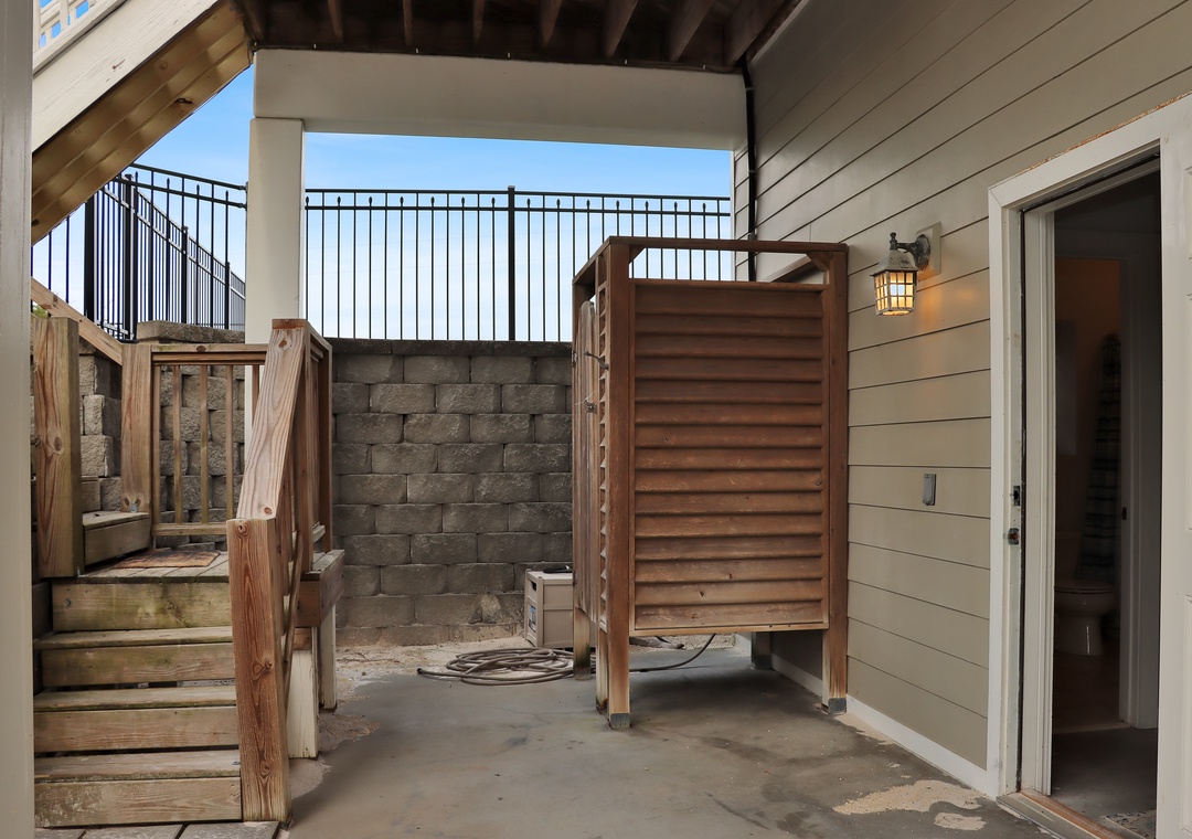For convenience, there's a two-car garage with a full bath, making it easy to access the pool area without having to go through the house. And after a day at the beach, rinse off in the outdoor shower before heading inside to relax.