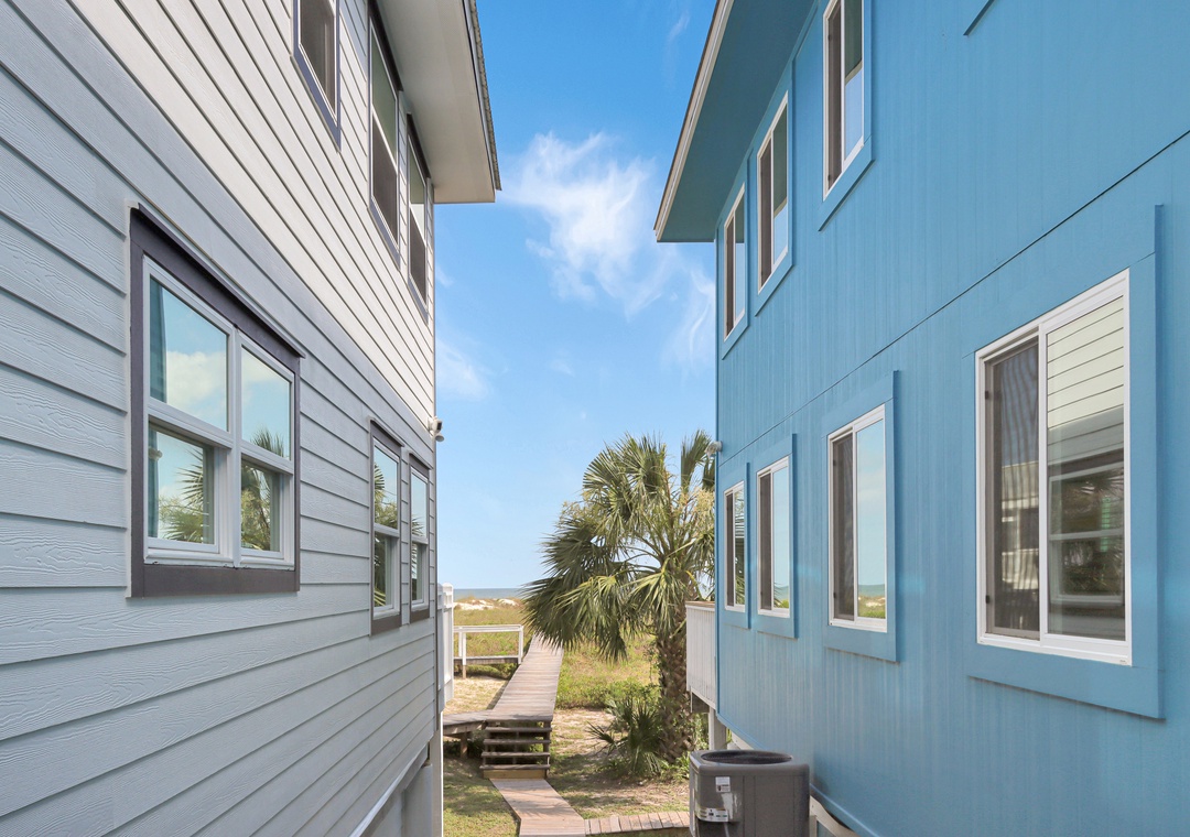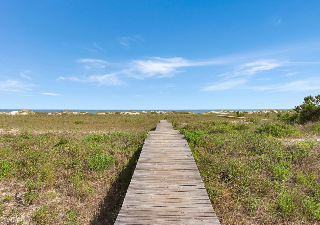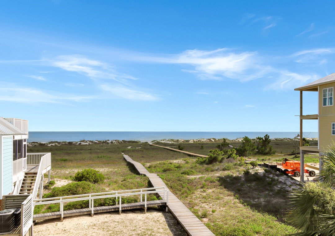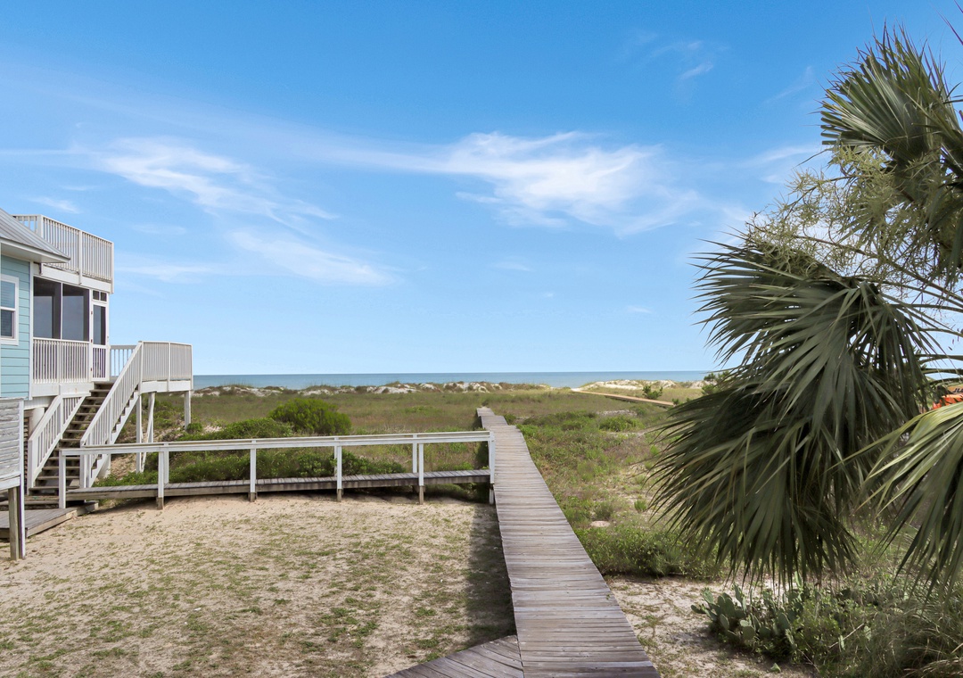 Experience the natural beauty of the Gulf Coast just steps from Casa de Playa Blanca. A flat boardwalk leads you through natural dunes to the sugar-white sands. Explore the nearby Salinas Park, offering amenities like pickleball courts, a sand volleyball court, a playground, a nature walk, and a fire pit, perfect for outdoor enthusiasts.