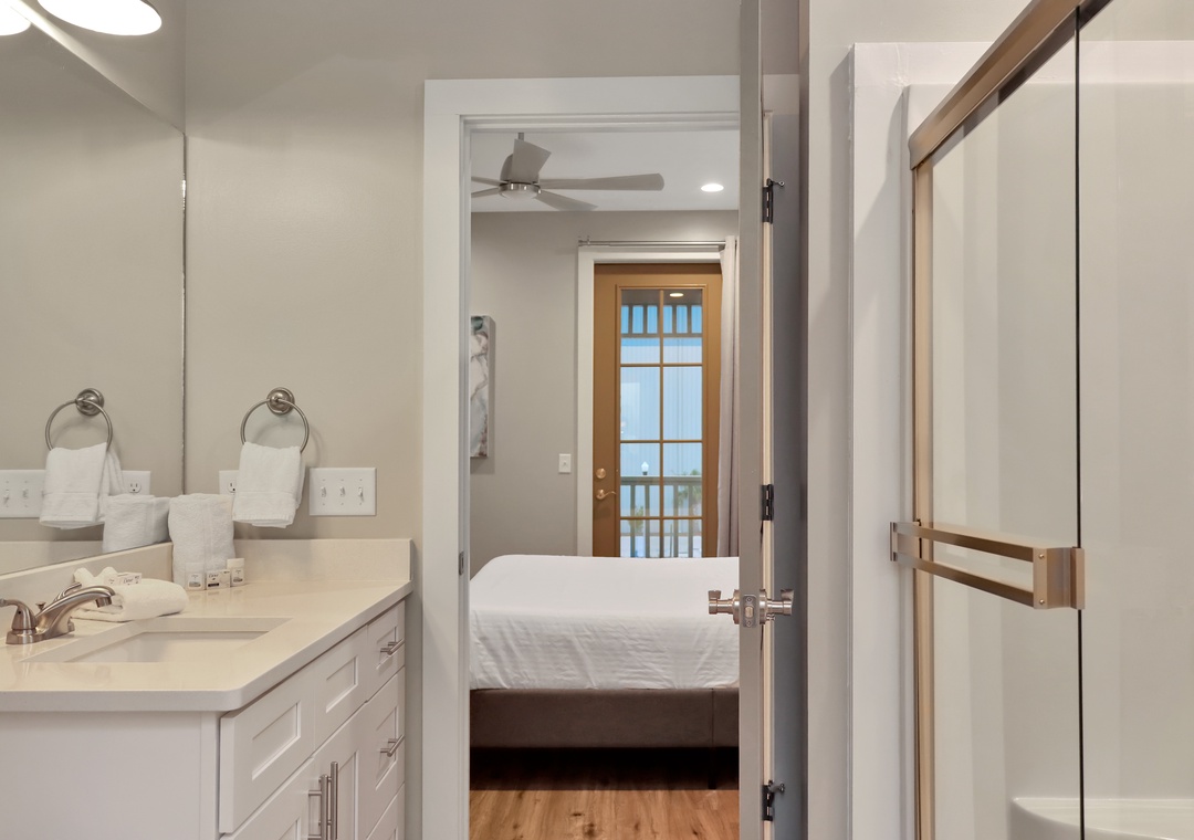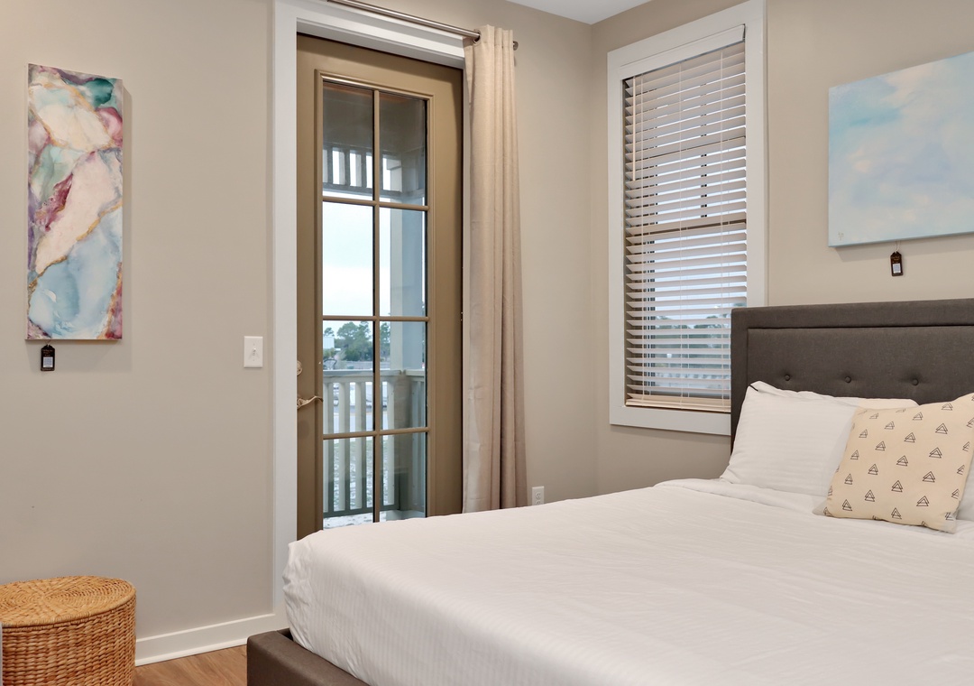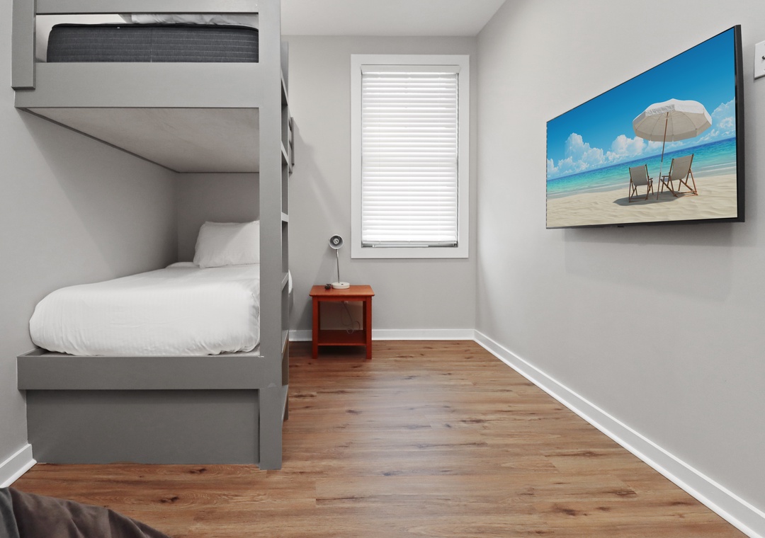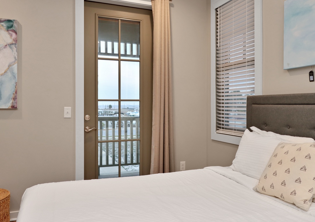 Upstairs, you'll discover a large sitting area with a TV, a full bath, and two additional bedrooms, including another master suite and a charming kids' bedroom with bunk beds. The highlight of this property is the top-floor balcony, which offers breathtaking views overlooking the lighthouse and bay, creating the ideal spot for sipping your morning coffee or enjoying a sunset cocktail.