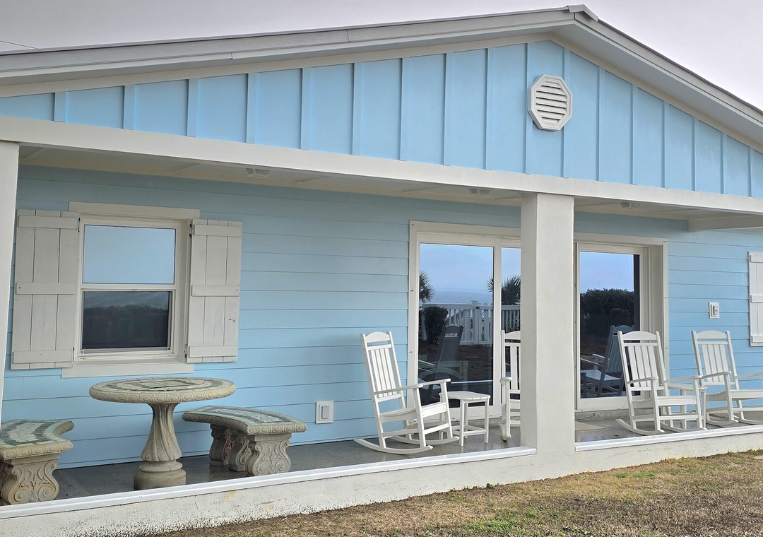 Deja Blue is a pet friendly vacation rental perfectly situated on a corner lot directly across from the pristine shores where Gulf and Bay County meet. The single-story home is enveloped in a meticulously manicured lawn, with lush bushes lining the boundaries to provide a sense of privacy. Guests are greeted by a covered front porch adorned with rocking chairs, and the home features a gas grill and outdoor shower. Inside, you'll find an open-concept kitchen, dining, and living area designed for relaxation and entertaining. The kitchen boasts ample counter space, a dedicated coffee bar, and generous dining accommodations. The living room, with its sliding glass doors, offers stunning beach views and a sofa sleeper for additional sleeping. Deja Blue's thoughtful split floor plan ensures privacy and comfort, with two bedrooms on each side of the living area accommodating a group of 11. The first bedroom includes a set of bunk beds, a day bed, and a private bathroom, while the adjacent bedroom offers a queen bed with its own private bath. On the opposite side, two bedrooms each feature king beds with a full bathroom in between. Additionally, an enclosed garage provides extra amenities such as an extra refrigerator, beach items, a ping pong table, and a laundry room. Come and create unforgettable memories at Deja Blue, your perfect beachside escape.