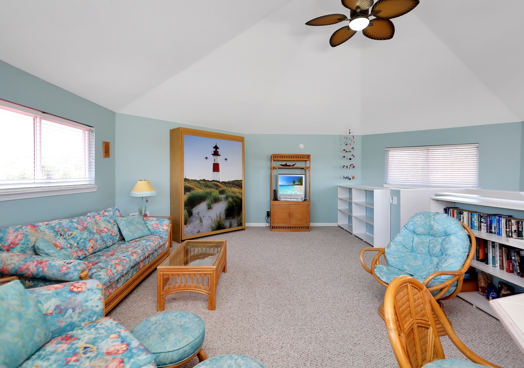 Floor Plan: Ground level-covered parking. 1st level-kitchen, dining and living room with a limited gulf view, TV, DVD and VCR; Bedroom 1-2 twins; and Bedroom 2-queen bed, TV, DVD and full bath. 2nd level-a second living area loft with TV, DVD and VCR and murphy bed.