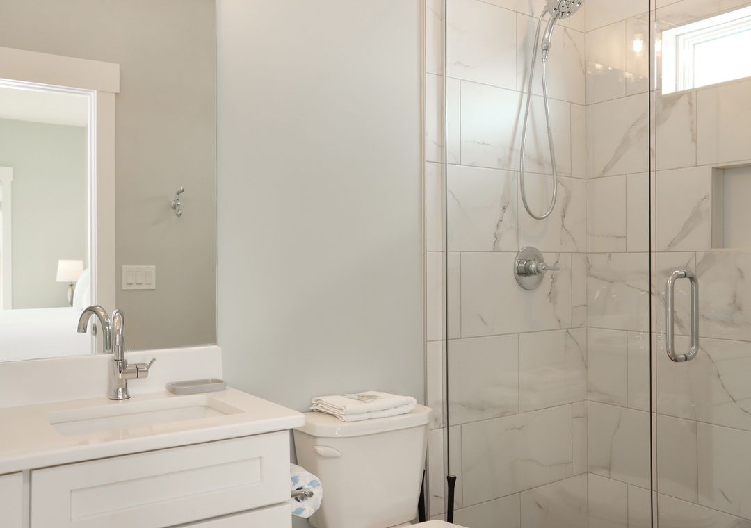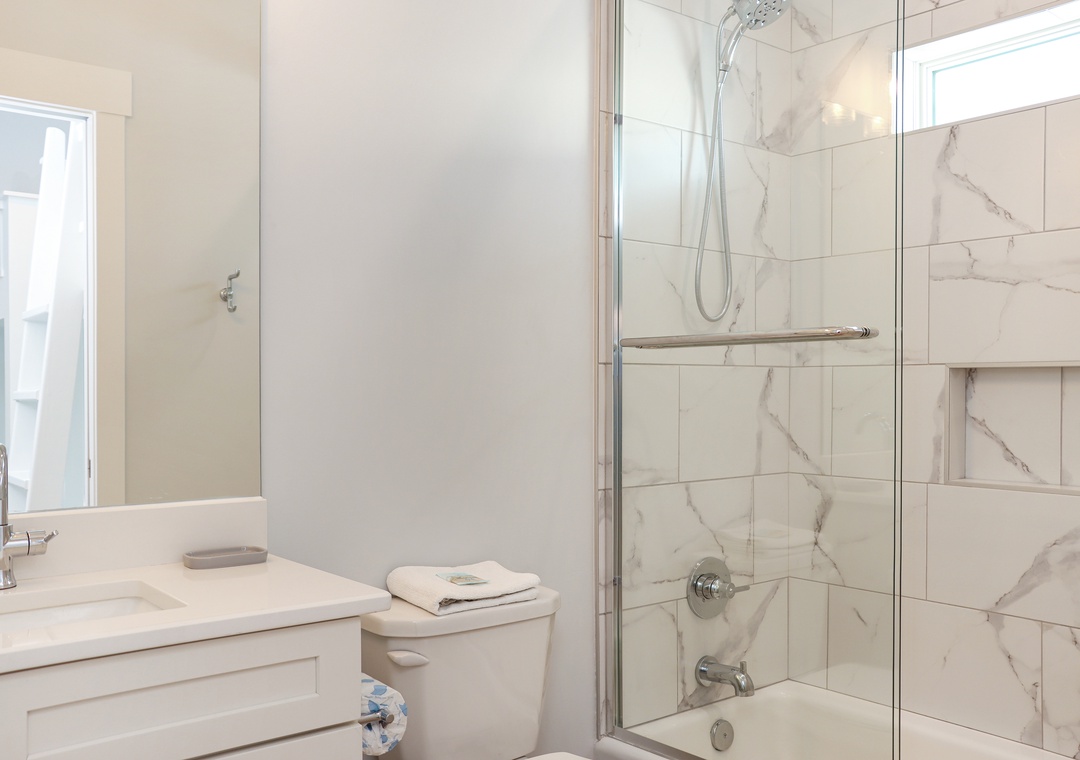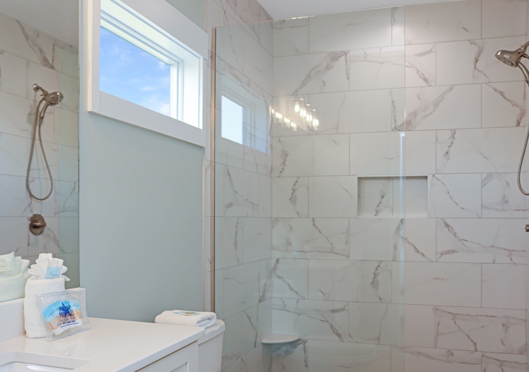 But that's not all – Desoto 1 also features a private pool (heating available for an additional fee) in the backyard with a bathroom, private outdoor shower, and undercover grilling area with fish cleaning table! You can relax in the pool while soaking up the sun or take a refreshing dip after a long day at the beach. And when you're ready to wind down for the night, the comfortable and spacious bedrooms will ensure a peaceful night's sleep. In three of the five bedrooms, you will find comfort in sleeping on a king bed. The fourth has a queen and the fifth is a bunkroom with 4 separate beds. All five conveniently provide the privacy of a full bathroom (4 with large walk in showers, bunkroom has tub/shower).