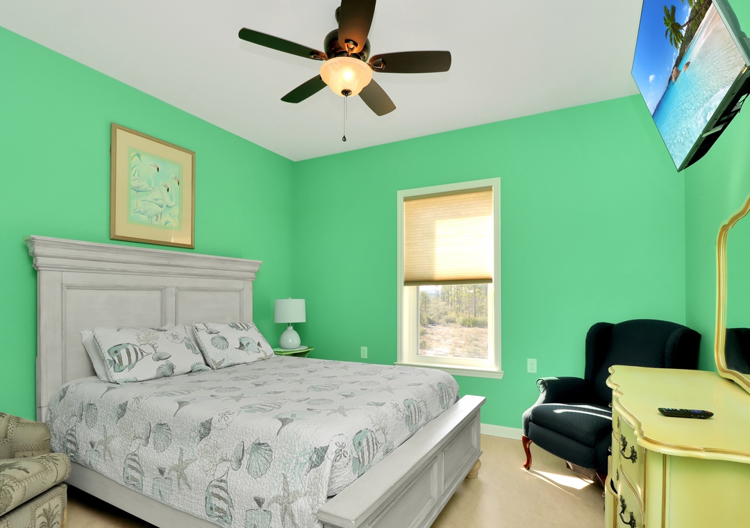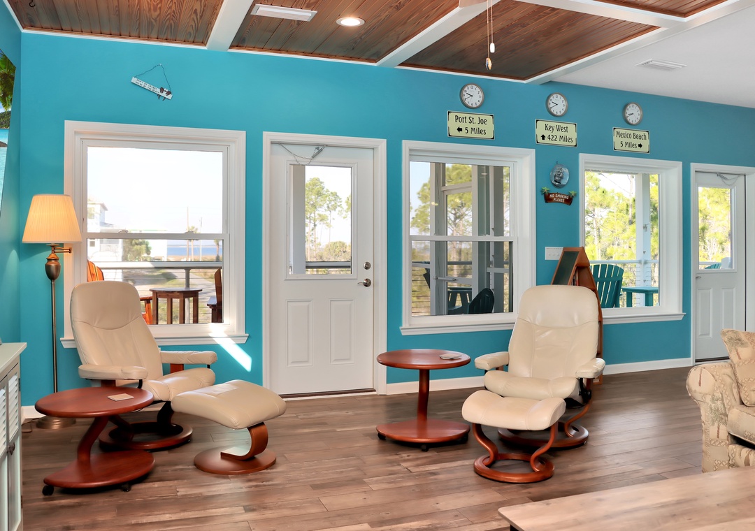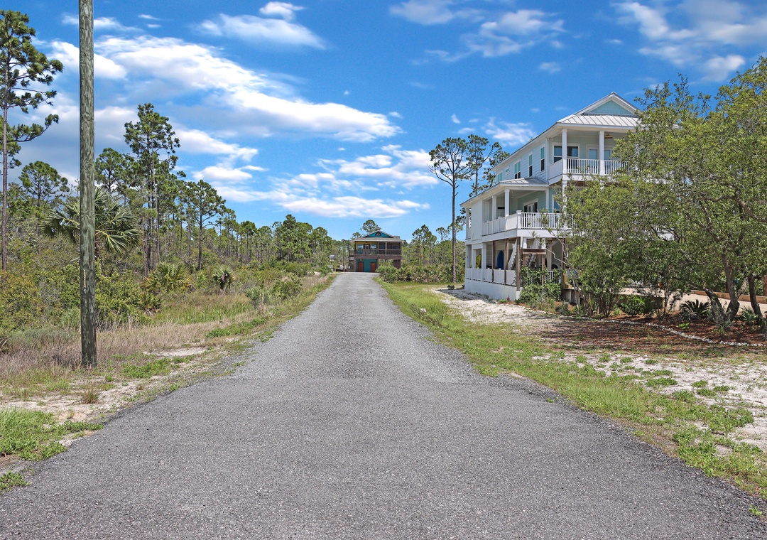 A secluded beach is within view, and a short walk of roughly 200 feet to private access. A pet-friendly beach makes it an ideal spot for families with children. Protected by the Cape San Blas peninsula, the gulf is calmer, with gentle waves rolling onshore. Its location allows privacy, with the closest public beach access a quarter mile away, so it is sometimes possible to be alone on the beach. When not playing on the beach, Windmark Towncenter is within a short 10 minute walk, offering pizza, ice cream, spa treatments, live music, restaurants, and shops.