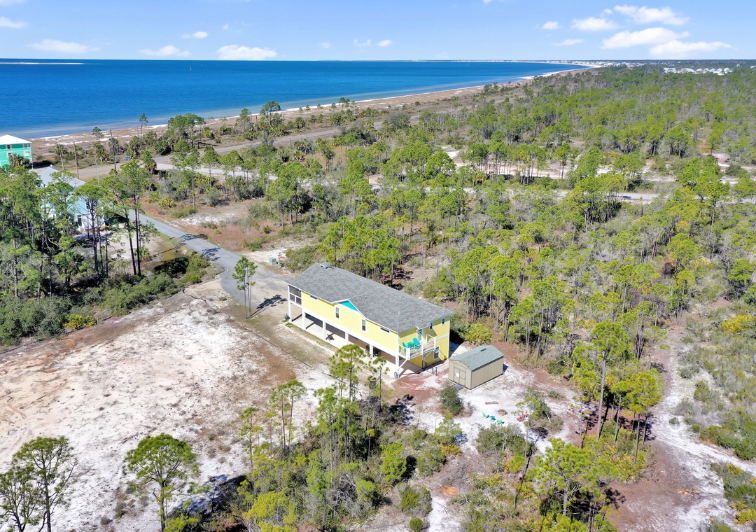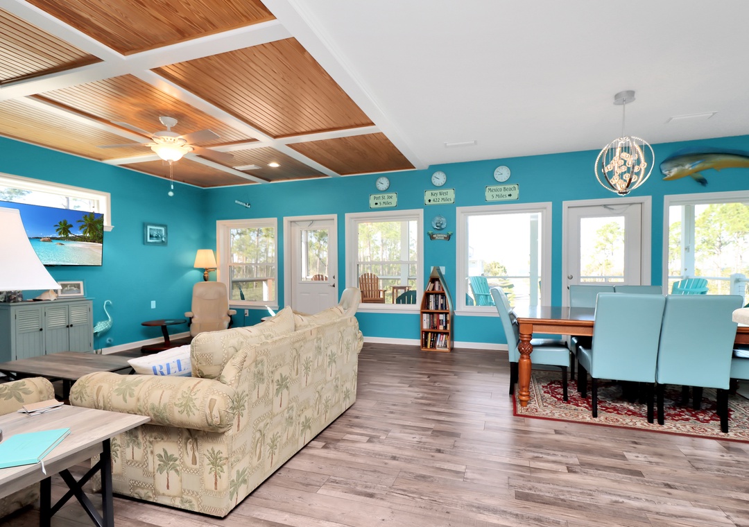 Dolphin Daze is a 4 bedroom, 2.5 bath vacation rental unit located midway between Mexico Beach and Port St. Joe on the Forgotten Coast that comfortably accommodates a party of up to 14. Because this beach house sits a half mile off Highway 98, there is little traffic to fuss with being on a short, dead-end street. It is located directly on the Bay Beach Bicycle Trail, with over 2 miles of conservation beach to serve as your private buffer from the noise and crowds.