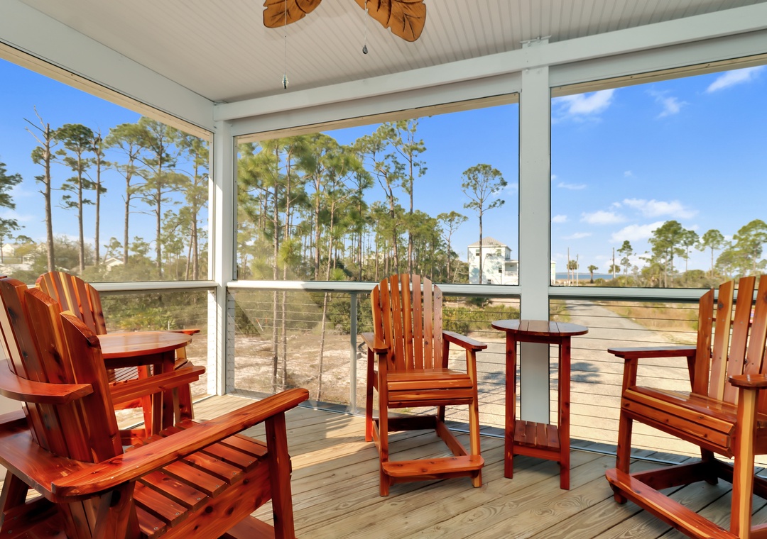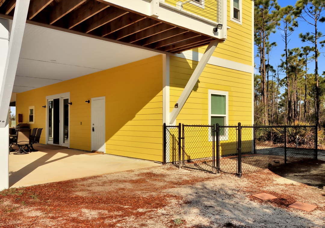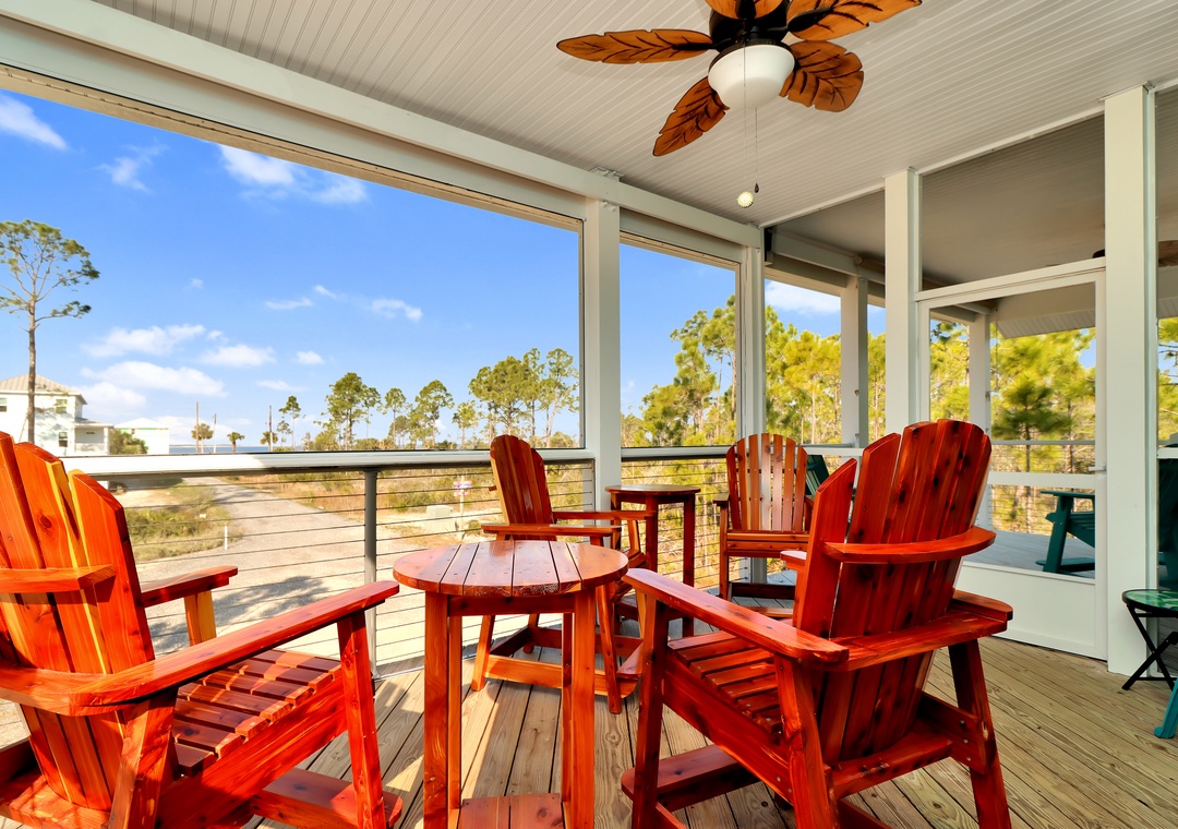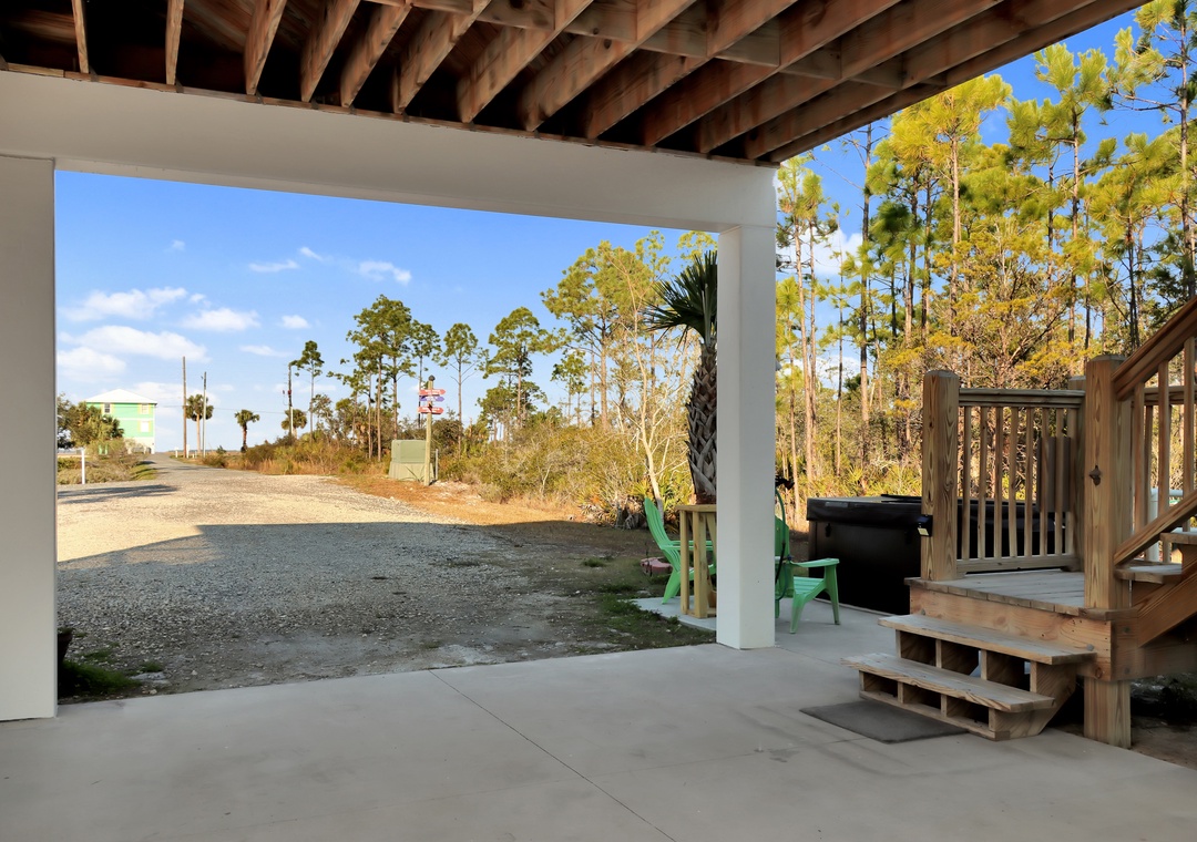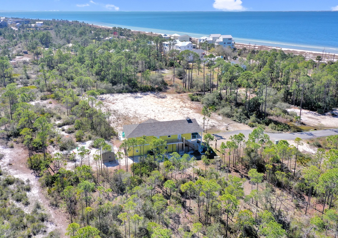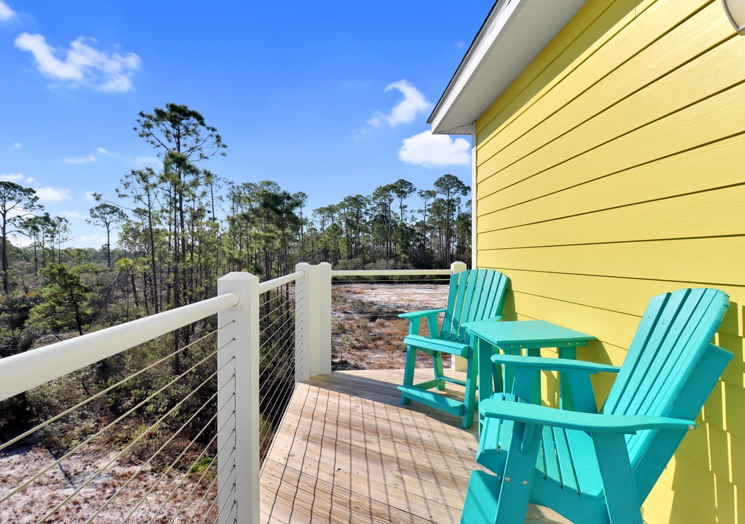 A secluded beach is within view, and a short walk of roughly 200 feet to private access. A pet-friendly beach makes it an ideal spot for families with children. Protected by the Cape San Blas peninsula, the gulf is calmer, with gentle waves rolling onshore. Its location allows privacy, with the closest public beach access a quarter mile away, so it is sometimes possible to be alone on the beach. When not playing on the beach, Windmark Towncenter is within a short 10 minute walk, offering pizza, ice cream, spa treatments, live music, restaurants, and shops.