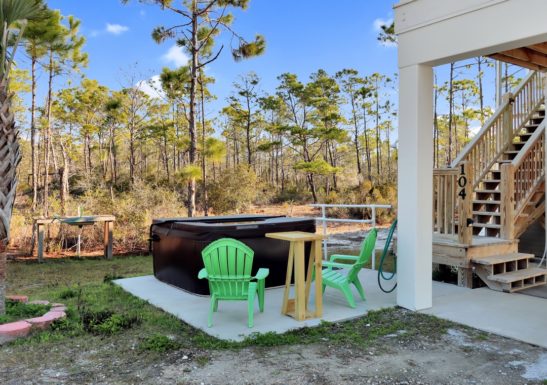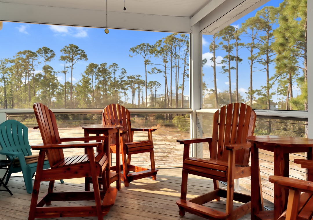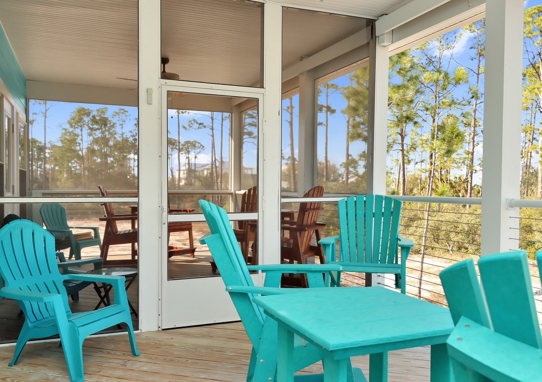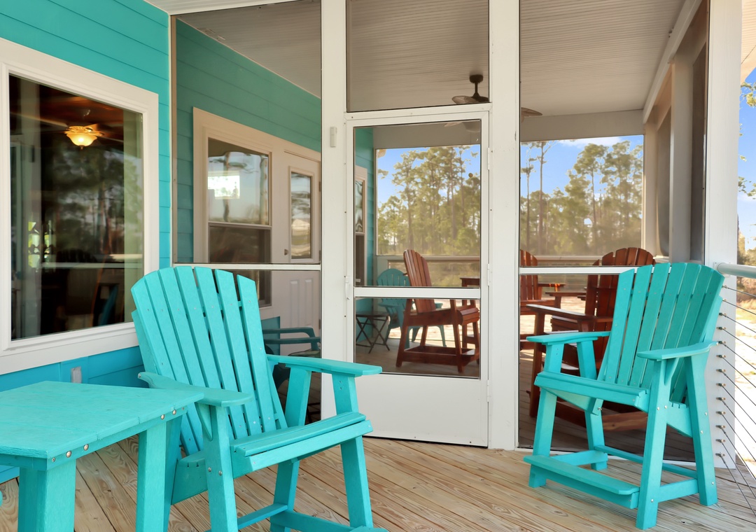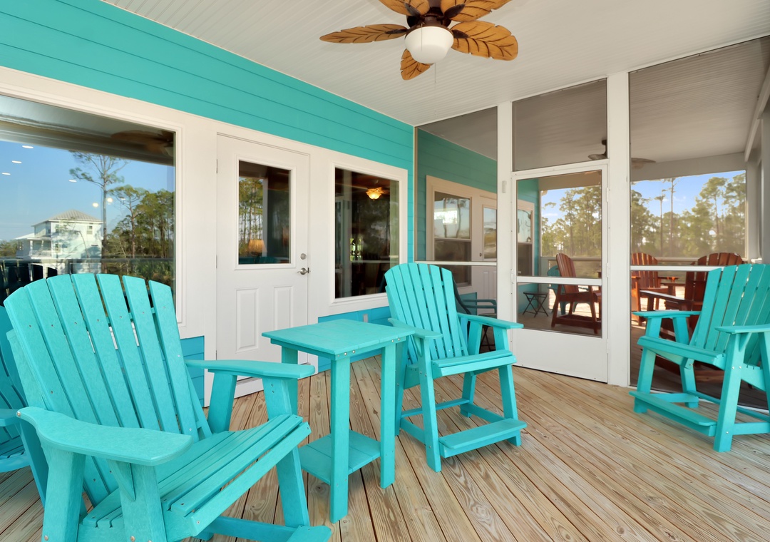 A secluded beach is within view, and a short walk of roughly 200 feet to private access. A pet-friendly beach makes it an ideal spot for families with children. Protected by the Cape San Blas peninsula, the gulf is calmer, with gentle waves rolling onshore. Its location allows privacy, with the closest public beach access a quarter mile away, so it is sometimes possible to be alone on the beach. When not playing on the beach, Windmark Towncenter is within a short 10 minute walk, offering pizza, ice cream, spa treatments, live music, restaurants, and shops.
