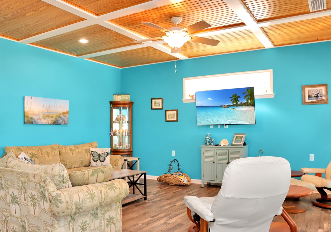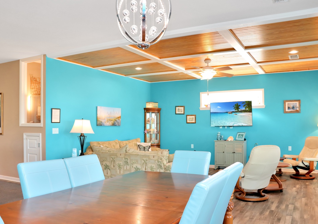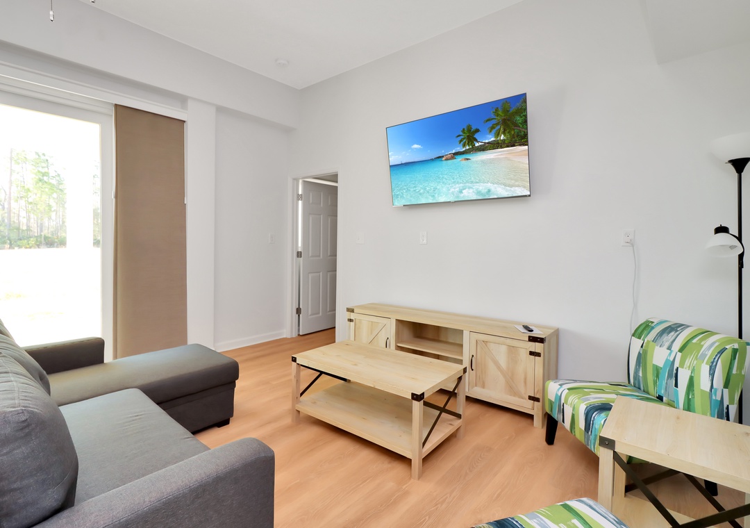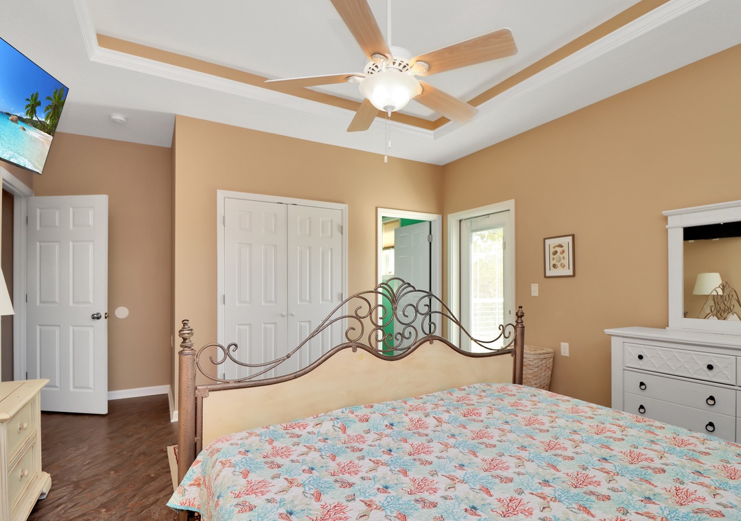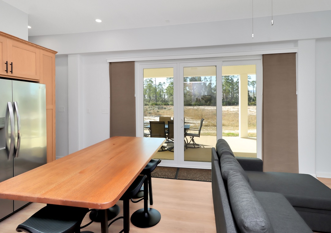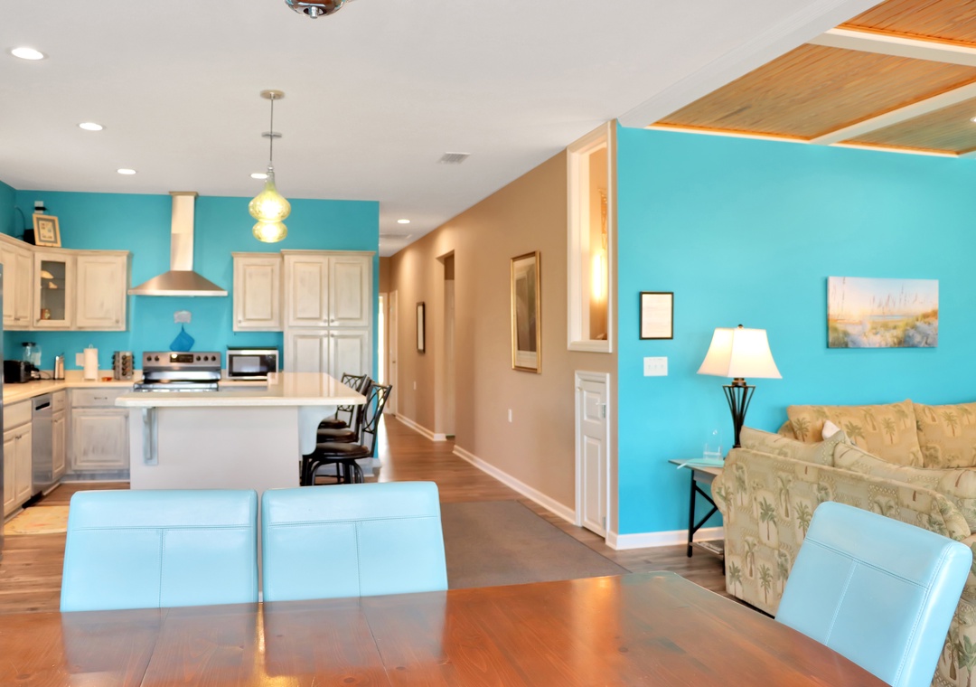 A secluded beach is within view, and a short walk of roughly 200 feet to private access. A pet-friendly beach makes it an ideal spot for families with children. Protected by the Cape San Blas peninsula, the gulf is calmer, with gentle waves rolling onshore. Its location allows privacy, with the closest public beach access a quarter mile away, so it is sometimes possible to be alone on the beach. When not playing on the beach, Windmark Towncenter is within a short 10 minute walk, offering pizza, ice cream, spa treatments, live music, restaurants, and shops.