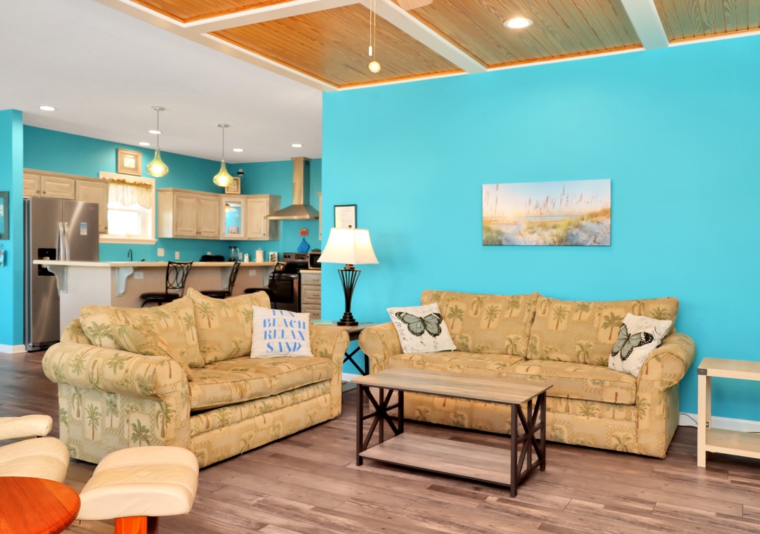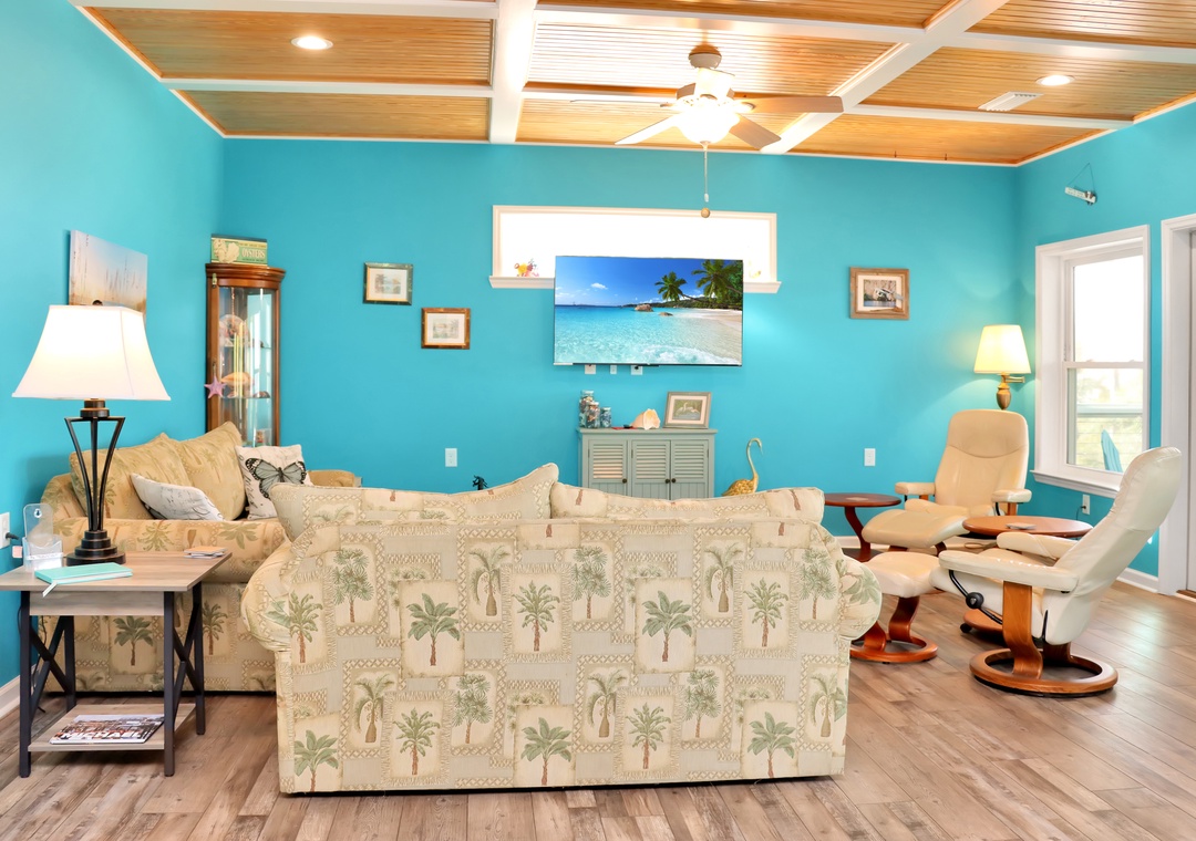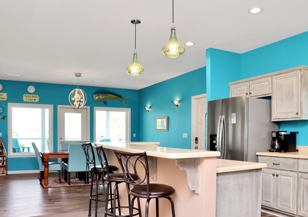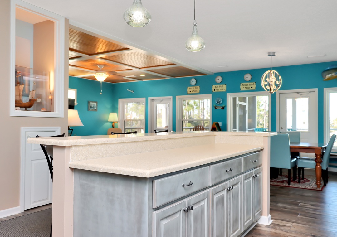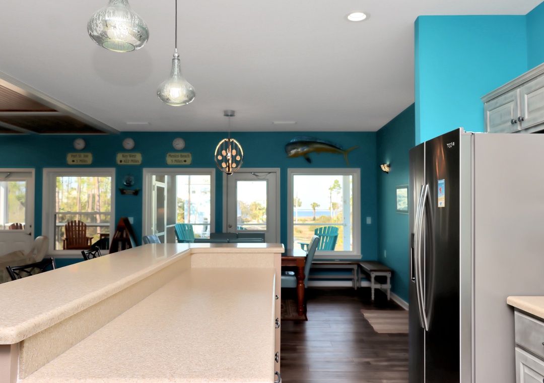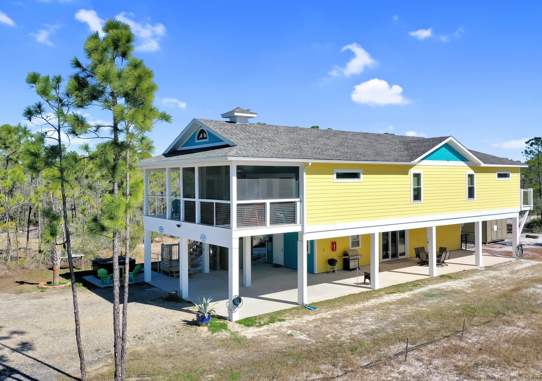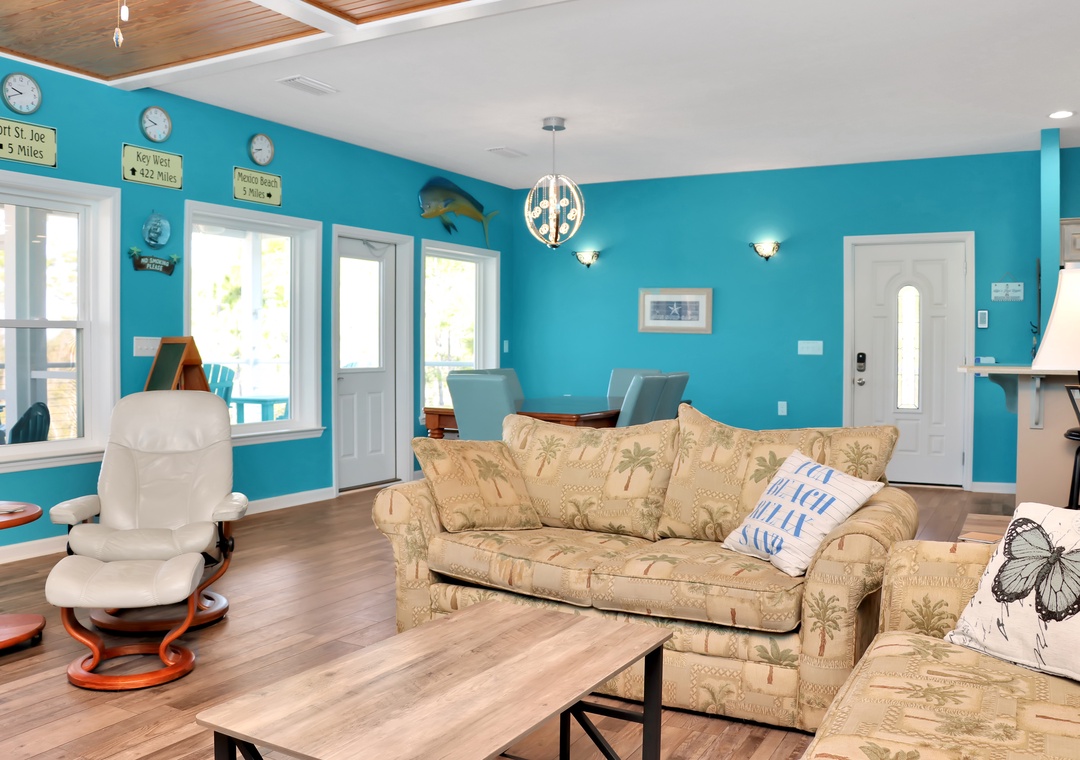 Dolphin Daze Beach House is a 6-bedroom, 4.5-bath vacation rental home located midway between Mexico Beach and Port St. Joe on the Forgotten Coast. It comfortably accommodates a party of up to 16. Because this beach house sits a half mile off Highway 98, there is little traffic to fuss with being on a short, dead-end street. It is located directly on the Bay Beach Bicycle Trail, with over 2 miles of conservation beach to serve as your private buffer from the noise and crowds.