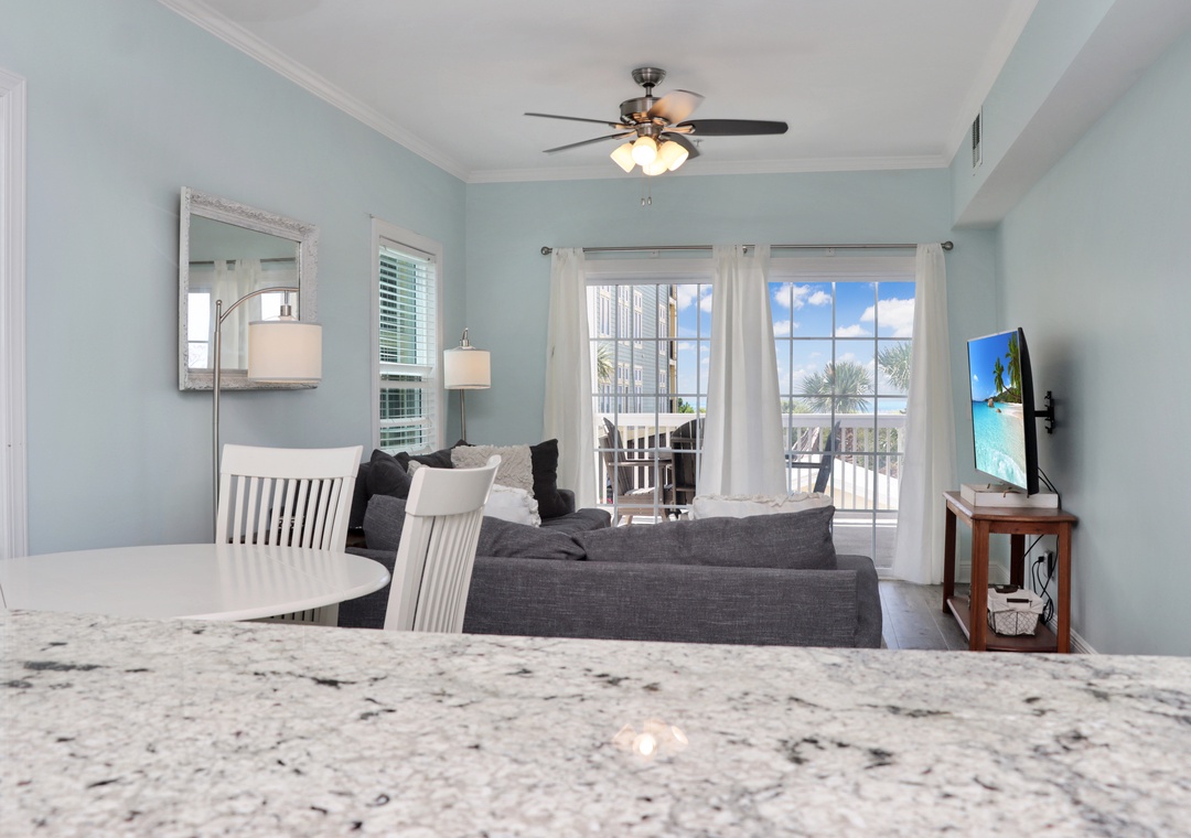 Love the first floor location with direct stairs down to the pool. The beach in this location is exactly what we are looking for...wide dunes, wide beach, quiet area. Top notch deck furniture and good kitchen appliances. The place smelled SO clean, was spotless and ready a little bit early for us. Appreciated Pristine Properties rental credit so much - the chairs, umbrella and boogie boards we got were great. Everything delivered right on time and in great condition. A couple minor negatives - the primary suite shower drain was clogged (hardly draining at all) and the maintenance people never came even though a work order was logged on our first day. Both bathrooms really need an update (better shower heads, curtain rods that are not rusted, minimally). Lighting is super harsh throughout the condo - recommend changing the bulbs to a softer white or at least a mix of softer lighting options. Washer and dryer are old and very basic. The sliding door is pretty hard to get open and shut. Overall though, we understand it's tough to keep up beach rental property and we would definitely come back to this one.- Posted: 7/19/2025