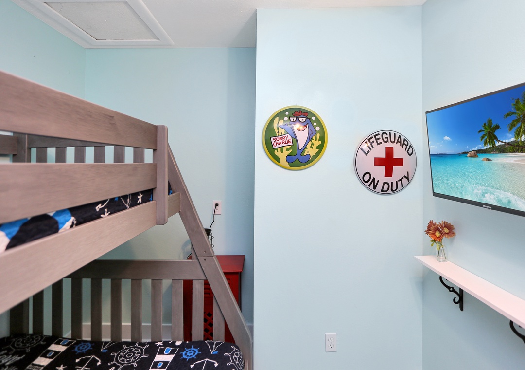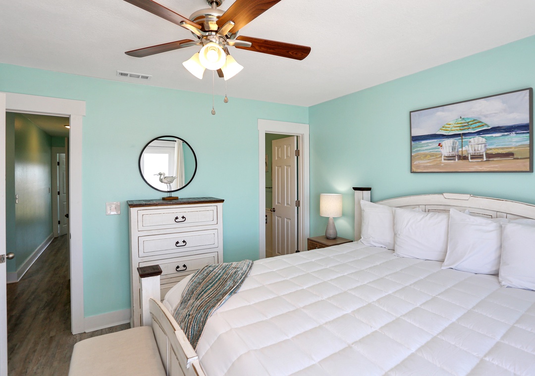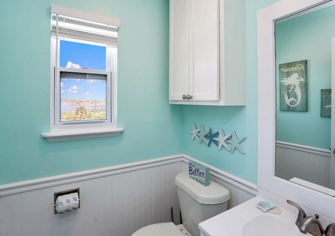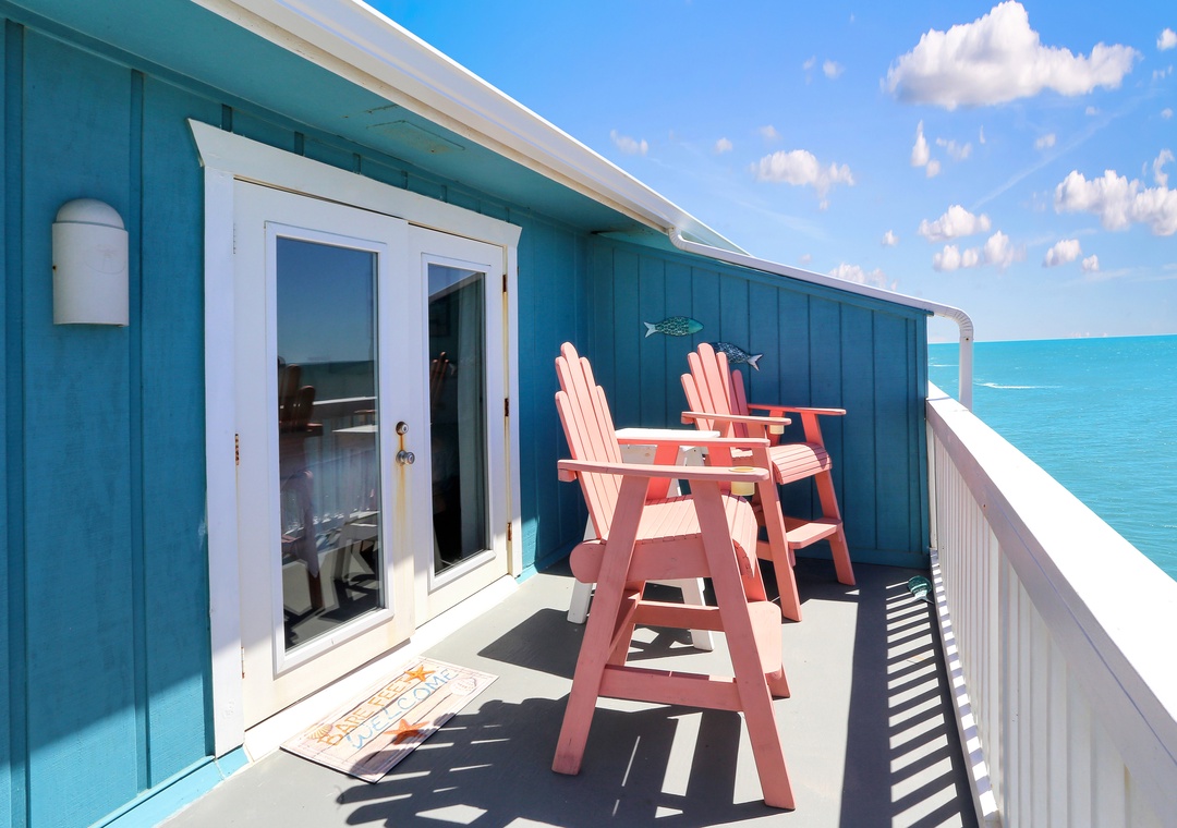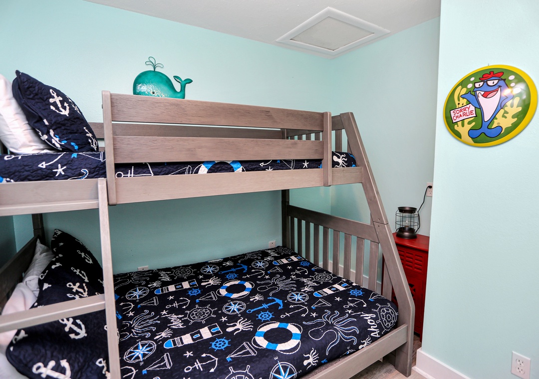 At day’s end, retreat upstairs to one of the three bedrooms for a restful night’s sleep. From the gulf front, master bedroom, you can gaze across the horizon from the open sundeck. The kids will enjoy piling up in the bunk room to enjoy a movie at night, and from the additional bedroom, there is a small deck overlooking the bay.