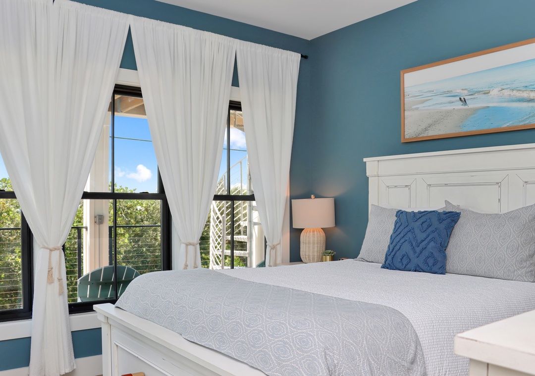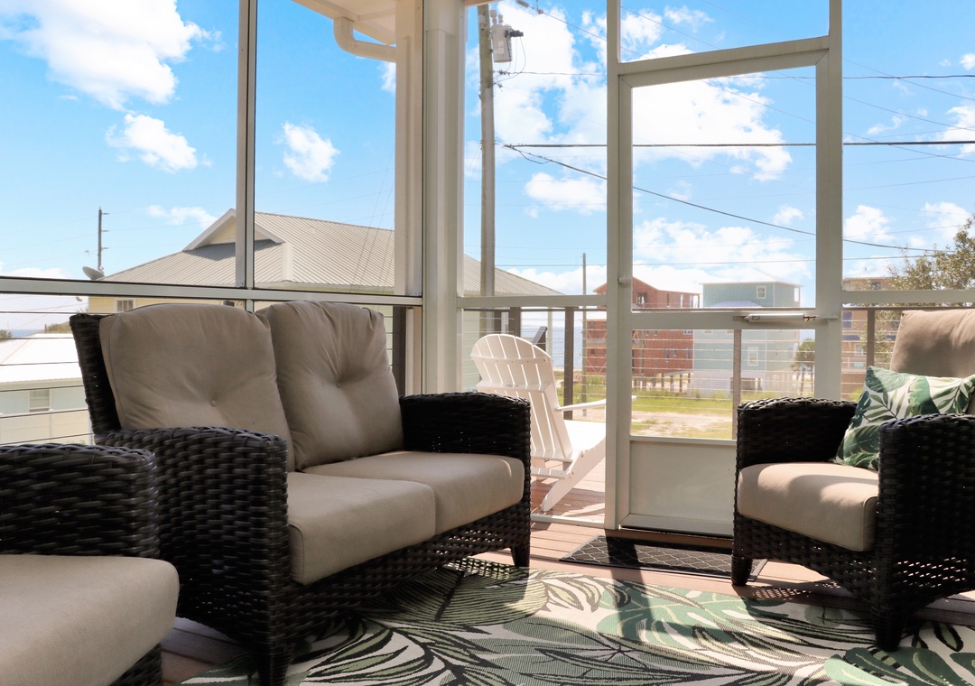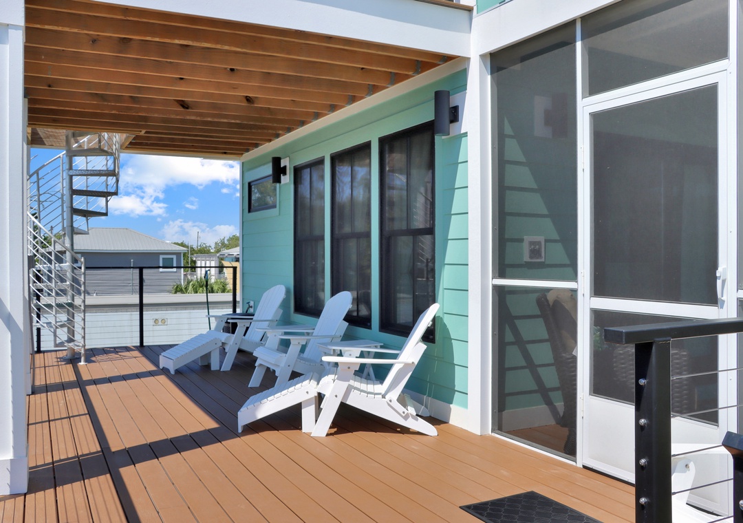 Emerald Palms is a stylish four bedroom beach house with impeccable design and maximum comfort. It’s not just a place to stay but an experience creating lifelong memories. The home's open living area ensures plenty of space to relax and unwind. The cool, artistic features add character and make Emerald Palms one-of-a-kind. Located on the main floor are a kids’ room, a guest room, and a master suite. The screened porch is the perfect place to enjoy your morning coffee or an evening cocktail while listening to the waves gently roll in. Above the screened porch, the top-floor sundeck offers a panoramic gulf view, making it the ideal spot to soak up the sun or stargaze at night.