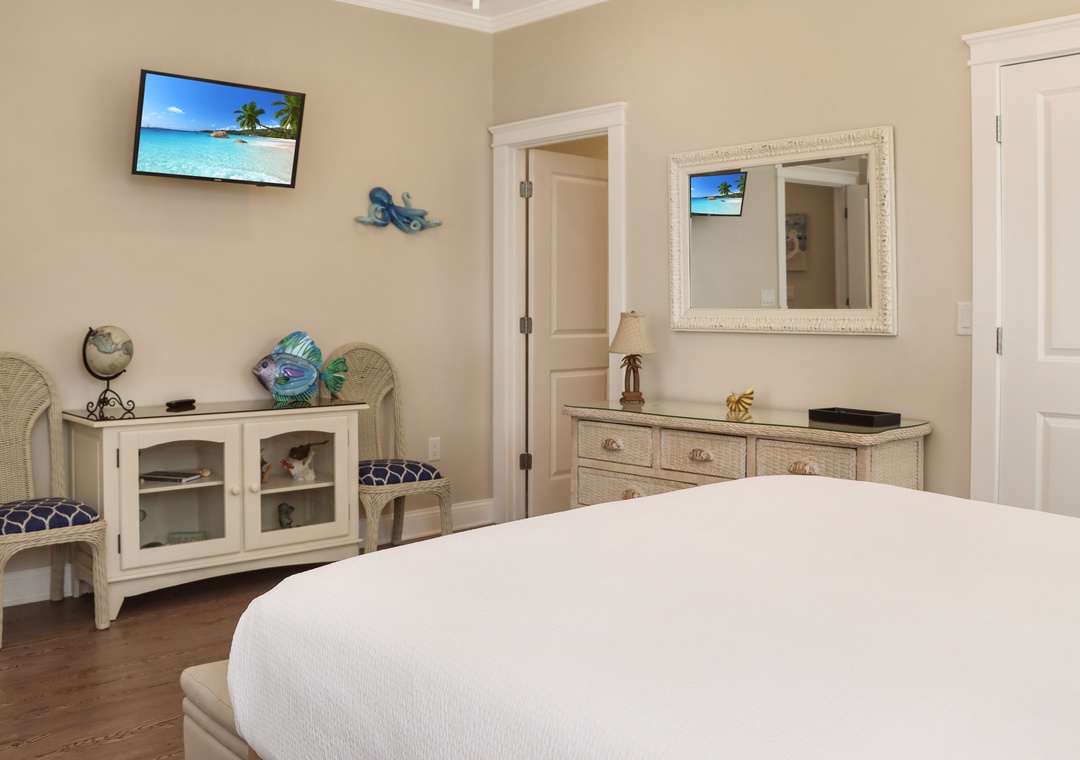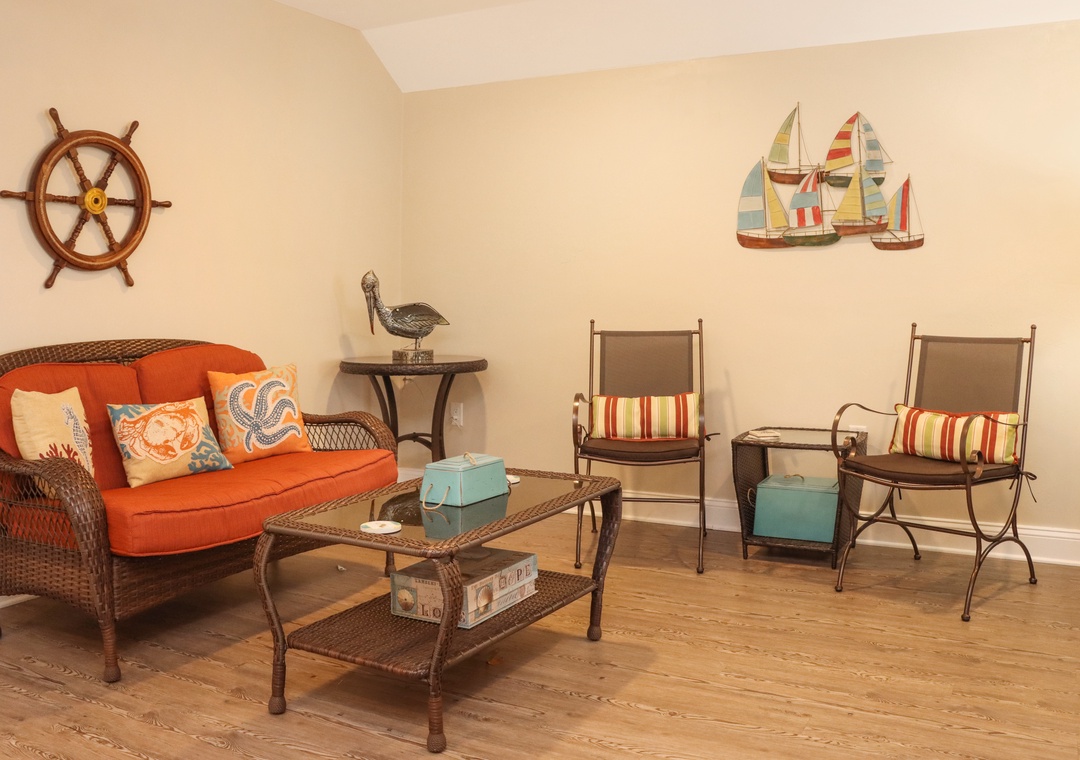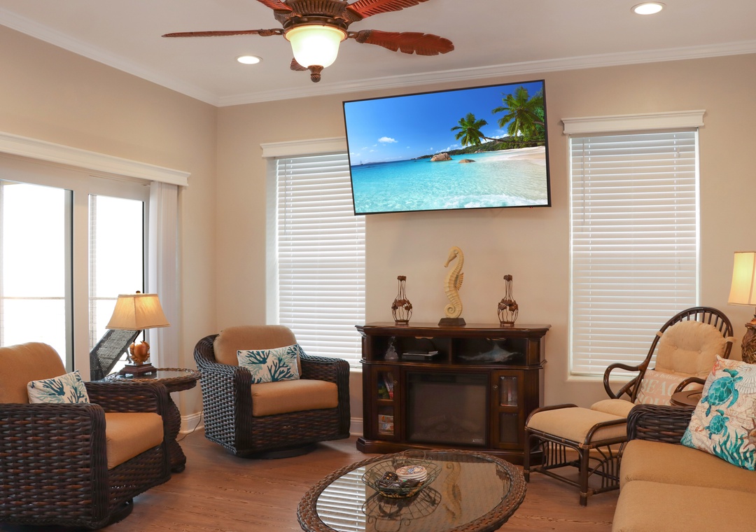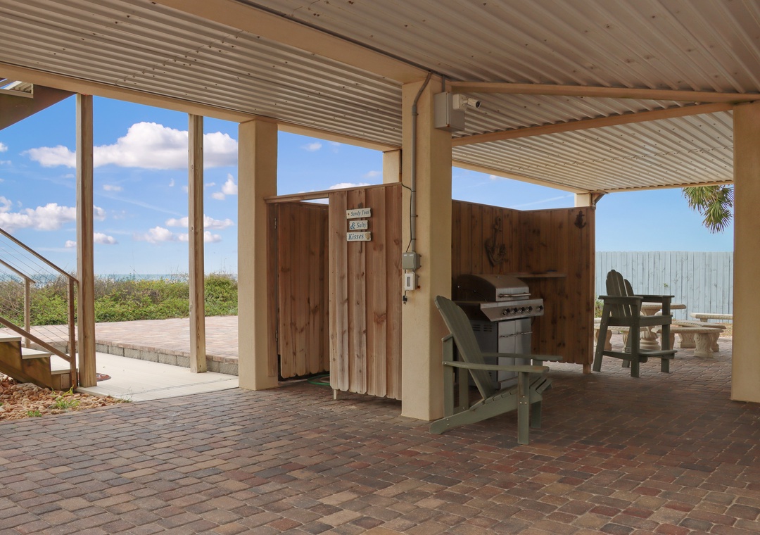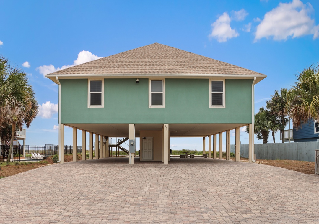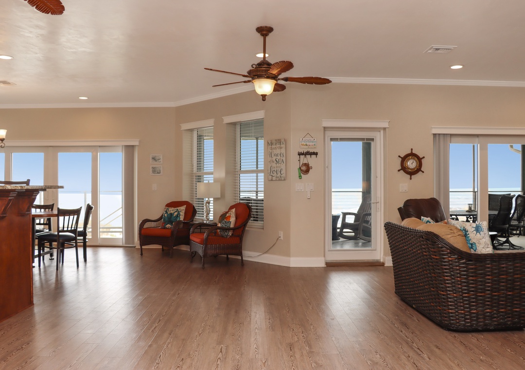 The top floor of Farr Away Living is dedicated to a separate living area, providing a cozy retreat with a TV, a small dining table, and sleeping accommodations for four. This versatile space is ideal for guests seeking a bit of privacy or a quiet nook to unwind. Beneath the house, an outdoor grilling area and an enclosed shower offer additional conveniences for beachgoers, while the ample parking space ensures hassle-free arrivals and departures. Farr Away Living is not just a vacation rental; it's a haven of relaxation and luxury, promising an unforgettable experience by the sea.
