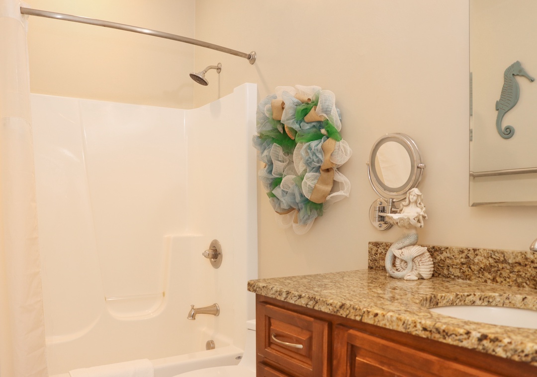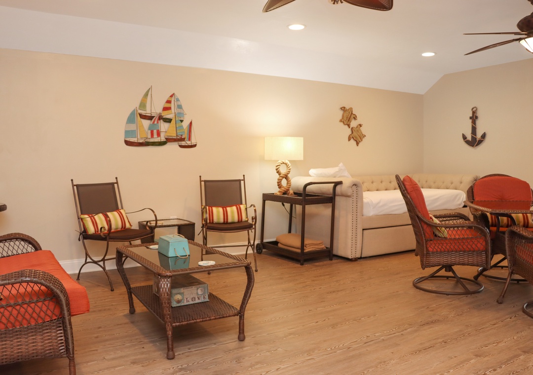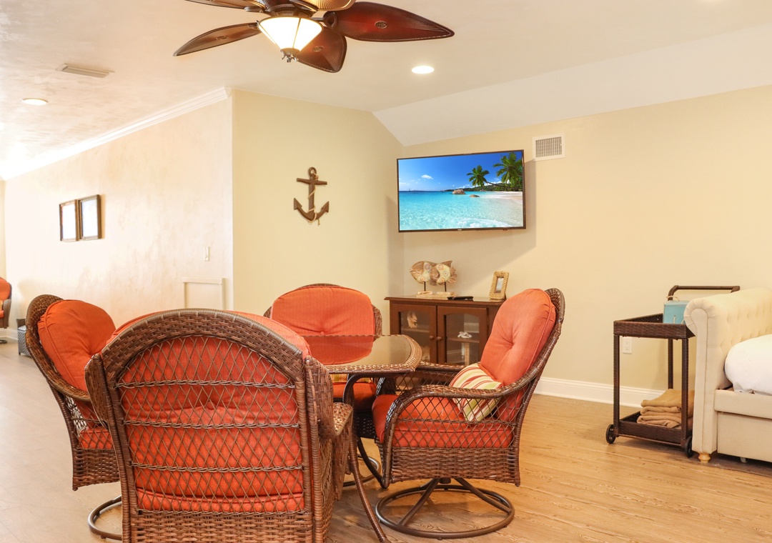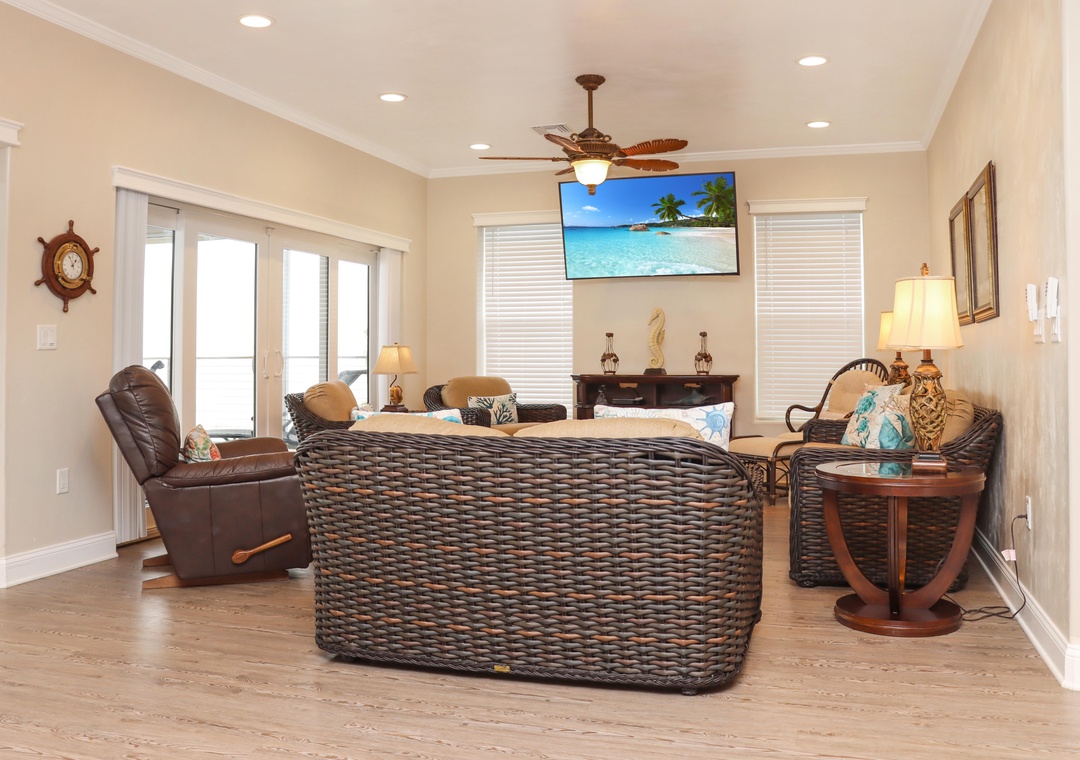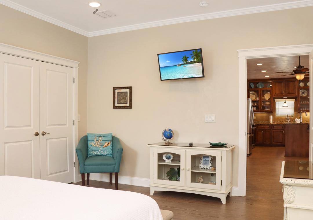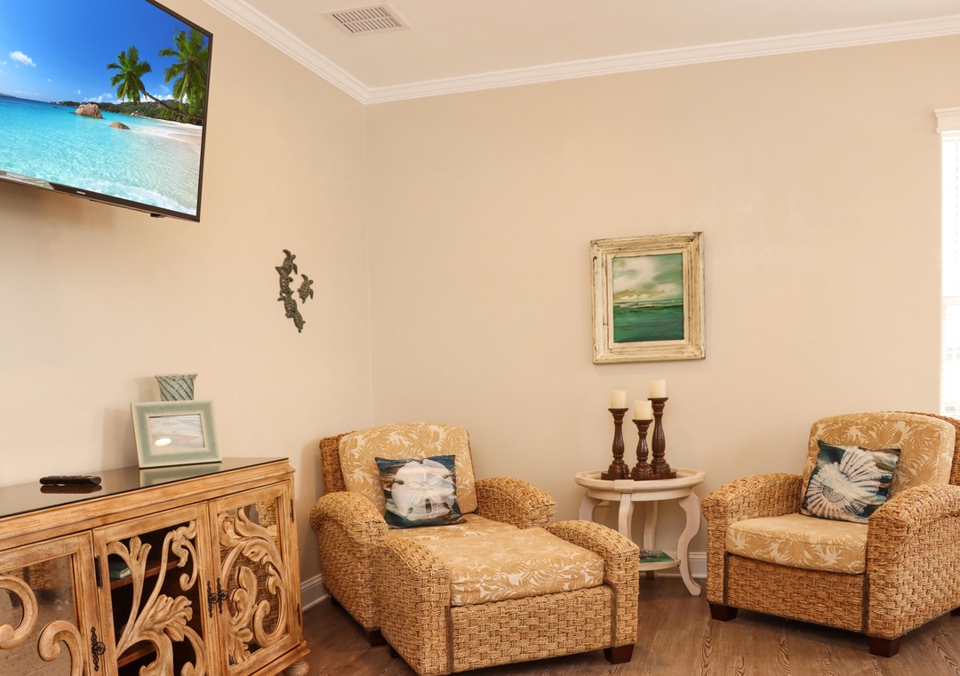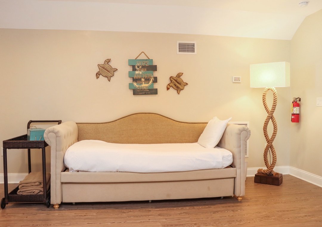 The top floor of Farr Away Living is dedicated to a separate living area, providing a cozy retreat with a TV, a small dining table, and sleeping accommodations for four. This versatile space is ideal for guests seeking a bit of privacy or a quiet nook to unwind. Beneath the house, an outdoor grilling area and an enclosed shower offer additional conveniences for beachgoers, while the ample parking space ensures hassle-free arrivals and departures. Farr Away Living is not just a vacation rental; it's a haven of relaxation and luxury, promising an unforgettable experience by the sea.