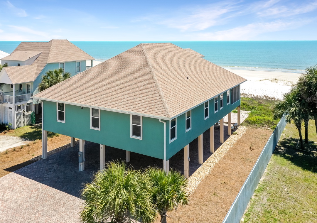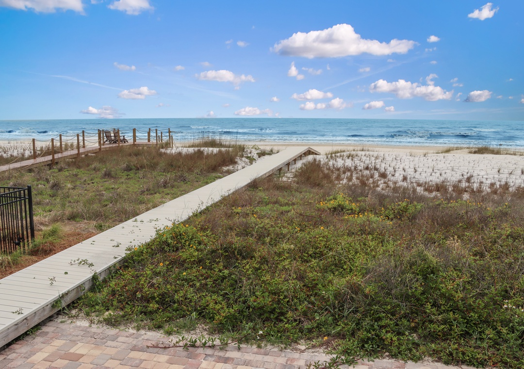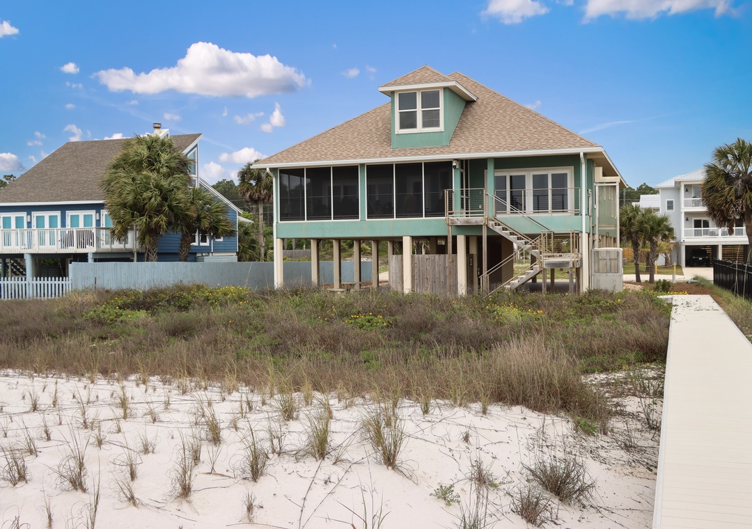 Farr Away Living offers direct beach access, ensuring that the soothing sounds of the waves are never too far away. This exquisite 4 bedroom, 4 bath vacation rental home comfortably accommodates up to 10 guests, making it an ideal retreat for families, friends, or small groups seeking a memorable getaway. One of the property's most captivating features is its private boardwalk, which extends directly from the house to the beach. This unique pathway is constructed from a flat metal surface, ensuring easy access to the sandy shores for all guests.