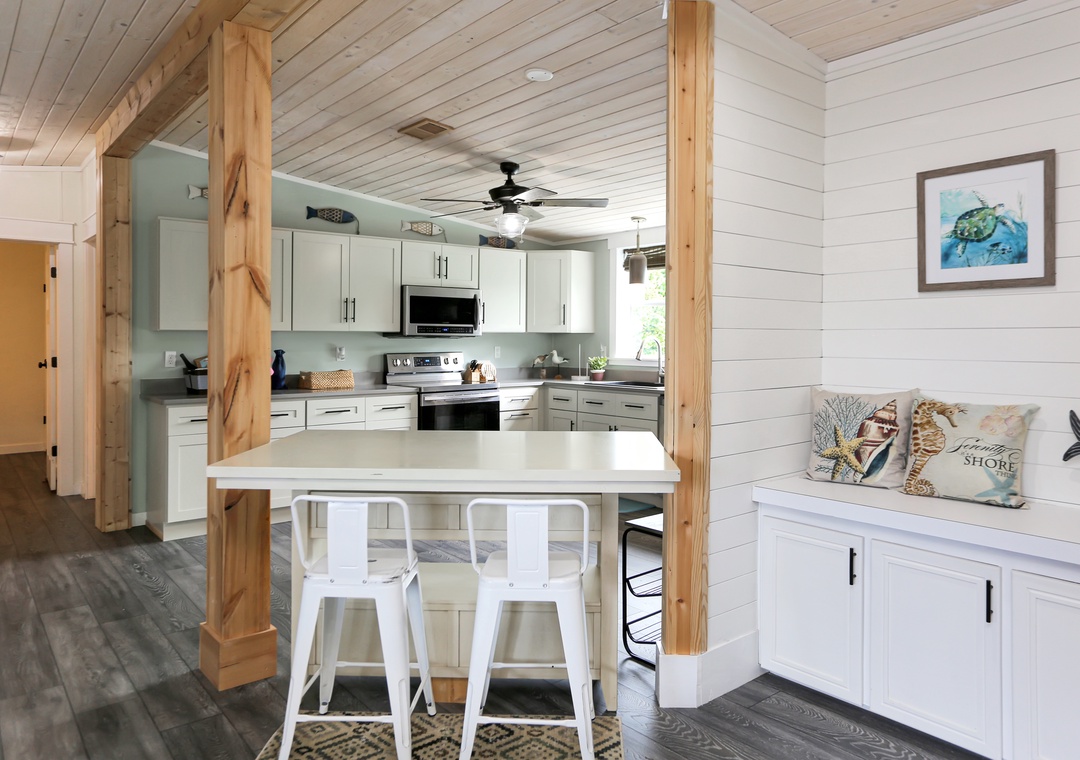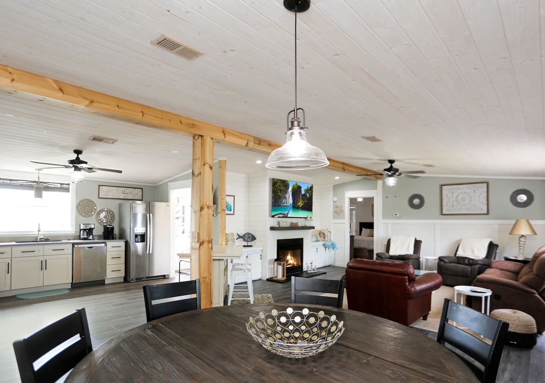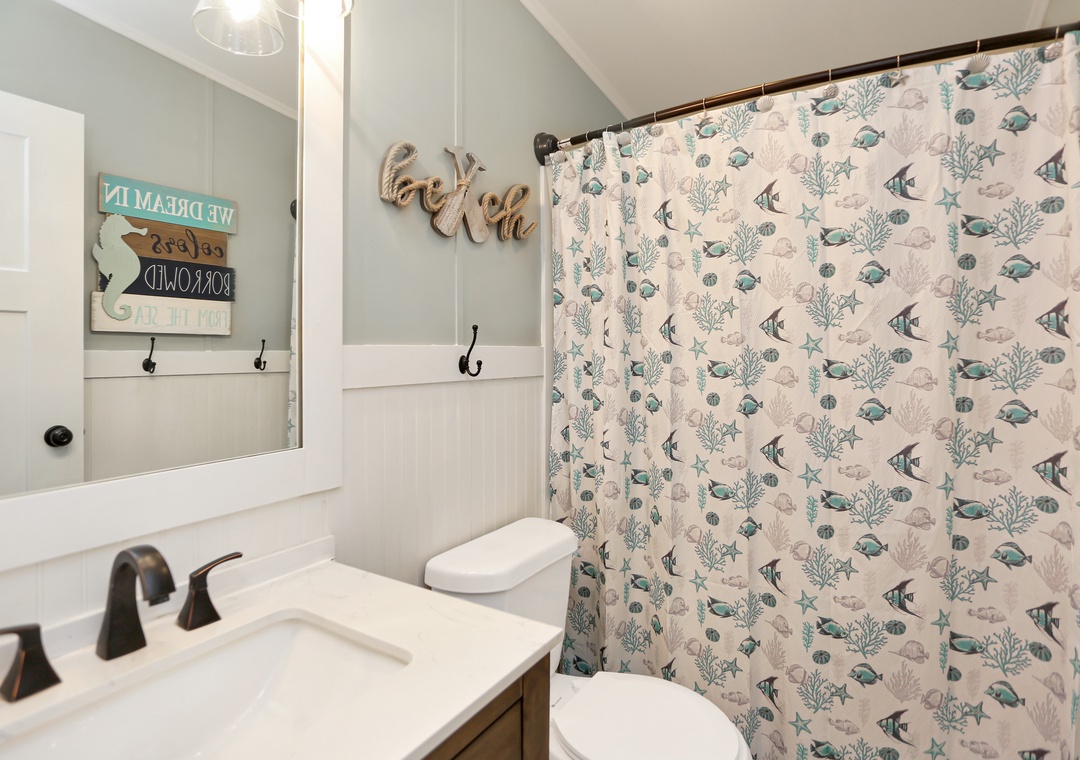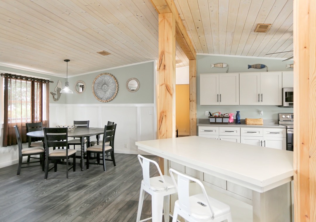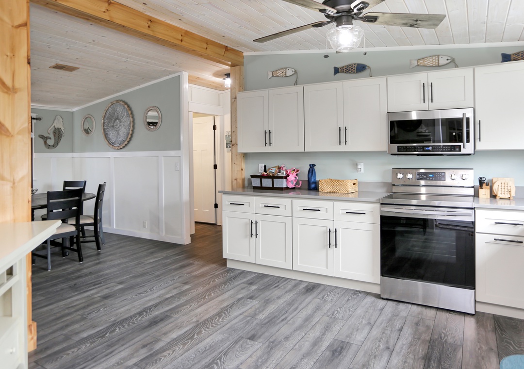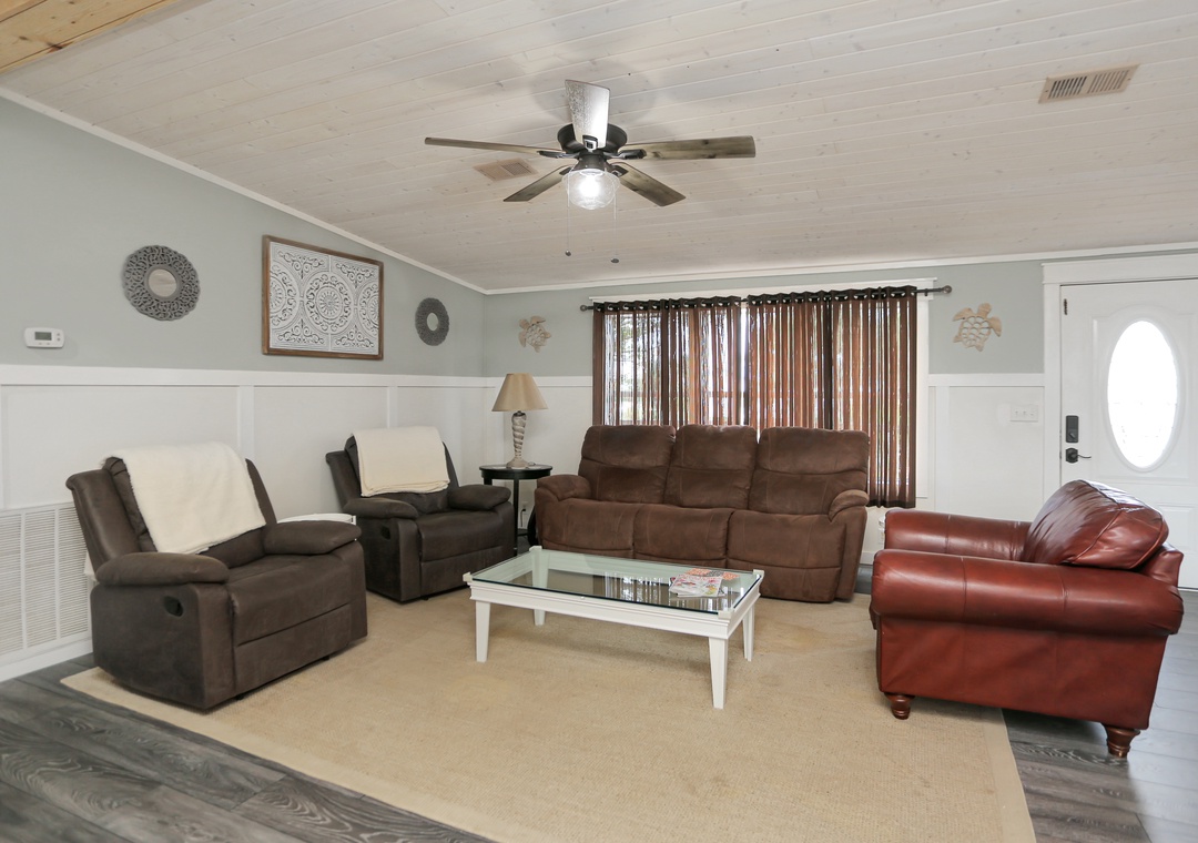 The vacation rental is a single-level property with 3 bedrooms and 2 full baths with an easily maneuverable design. The wide open spaces are spacious and comfortable. The living room has ample seating, perfect for getting comfy and watching a movie on the large screen TV. The master is the crown jewel of the home. Relax in the soaking tub or wash away your worries in the oversized master shower. With open decks on both the front and the back, you will be sure to enjoy afternoon cookouts.