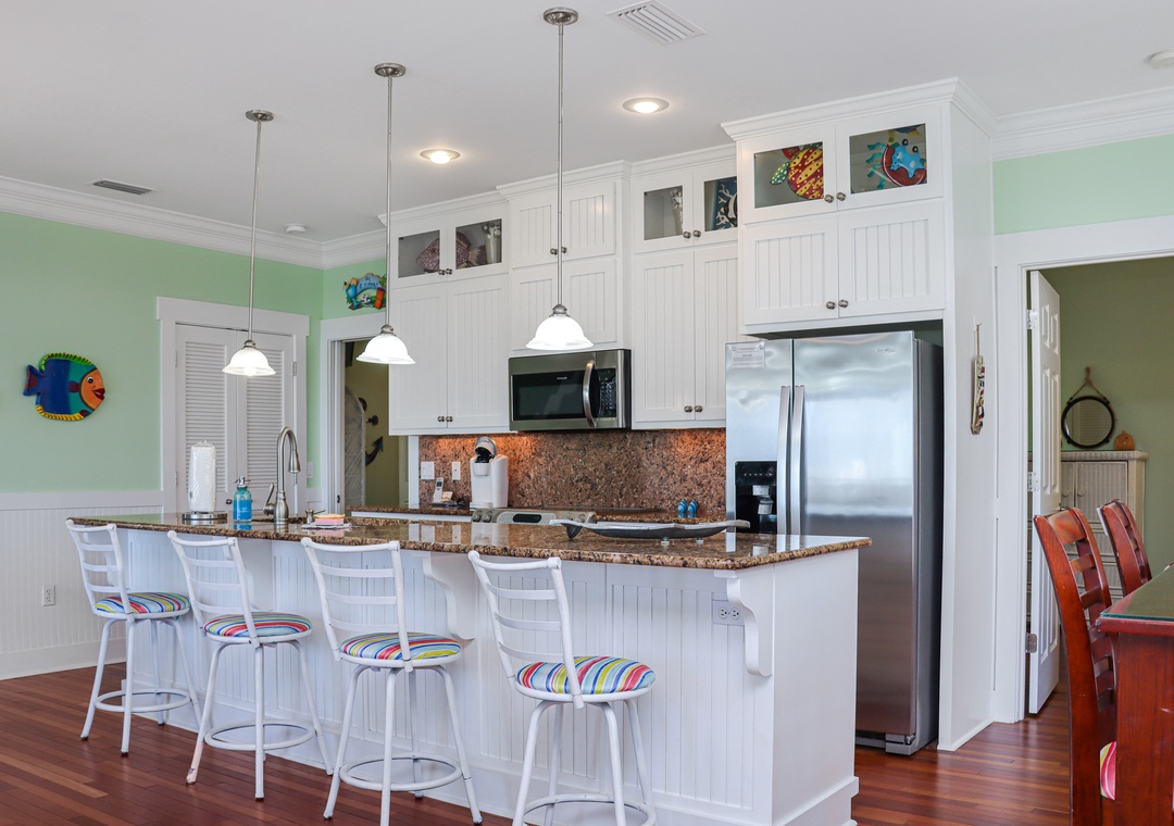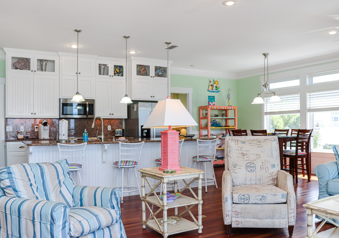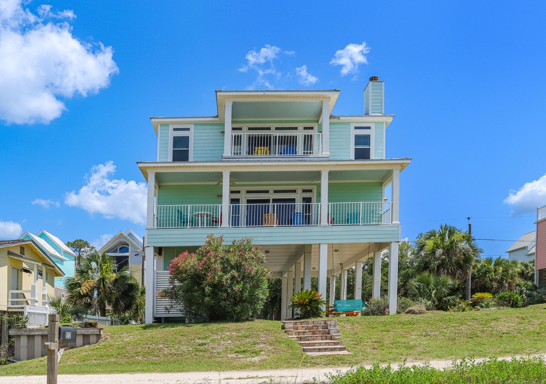 "Happy Dolphin" celebrates the unspoiled splendor of Old Florida. Its two expansive beachside decks invite you to immerse yourself in the soothing sounds of the waves and revel in the stunning vistas. Soak up the sun on the open portion of the top deck, crafting memories under the golden rays.