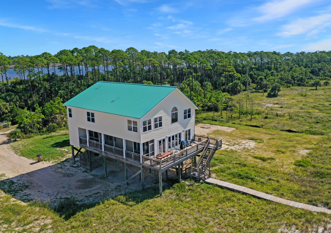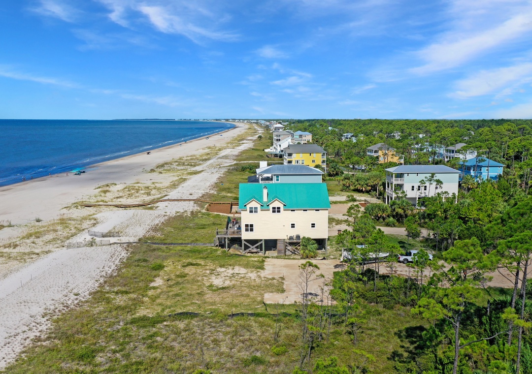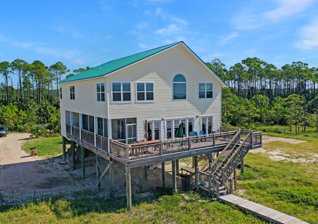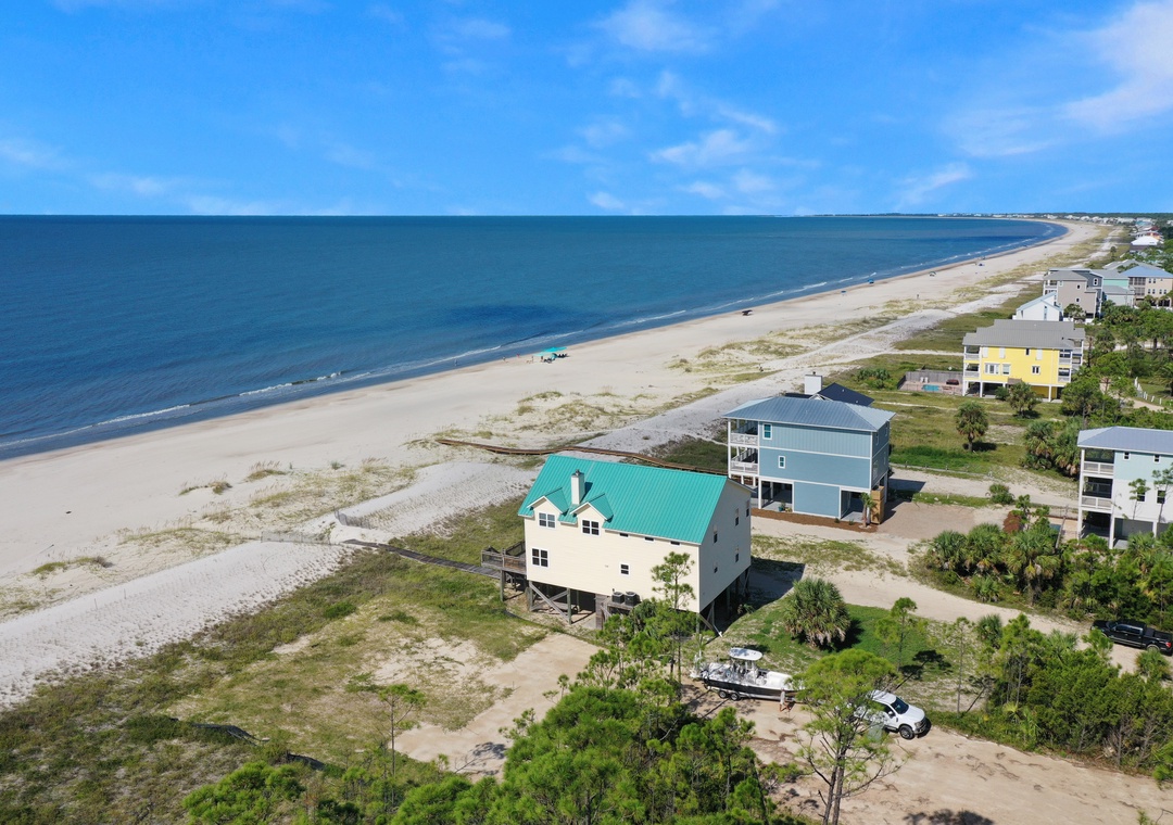 Floor Plan: Ground Floor - covered parking, outdoor shower, private beach access; 1st Floor - open kitchen, dining, living area, half bath, access to the open deck, and screen porch; 2nd Floor - gulf front Master Bedroom/Bath 1 with queen bed, gulf front Master Bedroom/Bath 2 with queen bed, Guest Bedroom 1 with queen bed, Guest Bedroom 2 with queen bed, Bunk room with three twin bunk sets, Guest Bath 1 & 2.Spread out home located on the beautiful Indian Pass Beach.