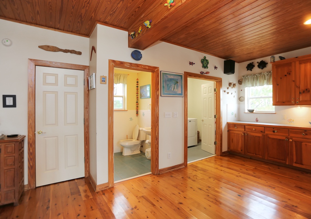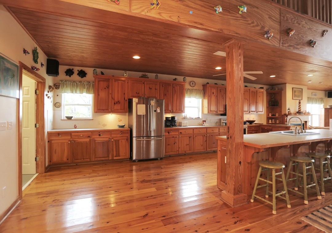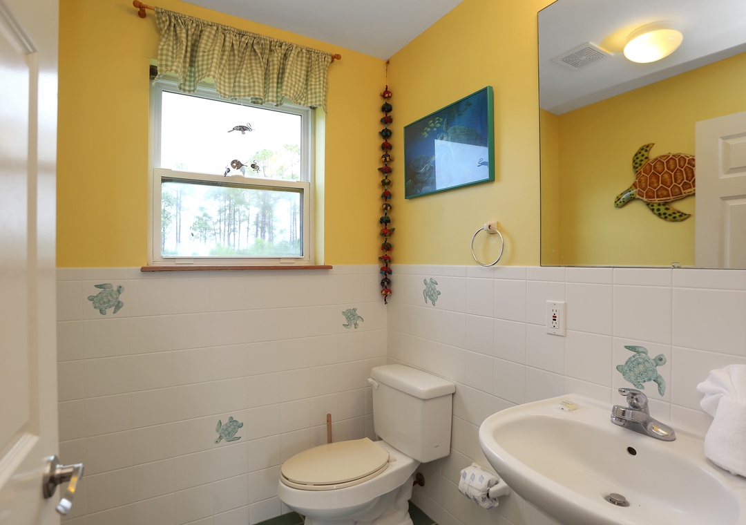 We enjoyed our short stay at Hatchling Hideaway. Our reservation of 7 nights was altered by Hurricane Helene to 3 nights, but we had a great time in 3 nights. The house was spacious enough for our family of 6 adults and 8 children. The large kitchen table was a lifesaver, providing plenty of space for all our meals. The kitchen was stocked with all the dishes and cooking supplies we needed which is important to our family because we eat all our meals in while vacationing. The bedrooms were spacious and the bunk room was a hit with the kids. The boardwalk to the beach was great for our carts, though we had to lift our carts over the steps from the deck which was tricky when loaded. The inside decor was dated and furniture was comfortably used. The bathroom shower curtains had some mold but otherwise clean. We were sad to leave and will definitely return in the future.- Reviewed On: 10/7/2024