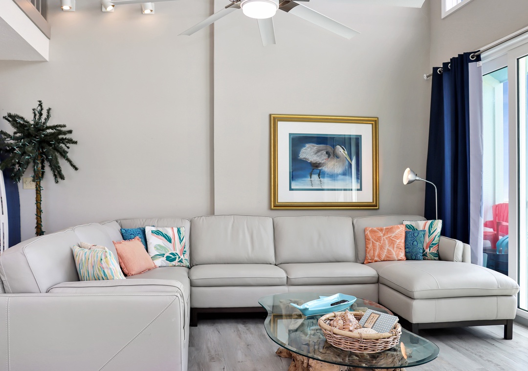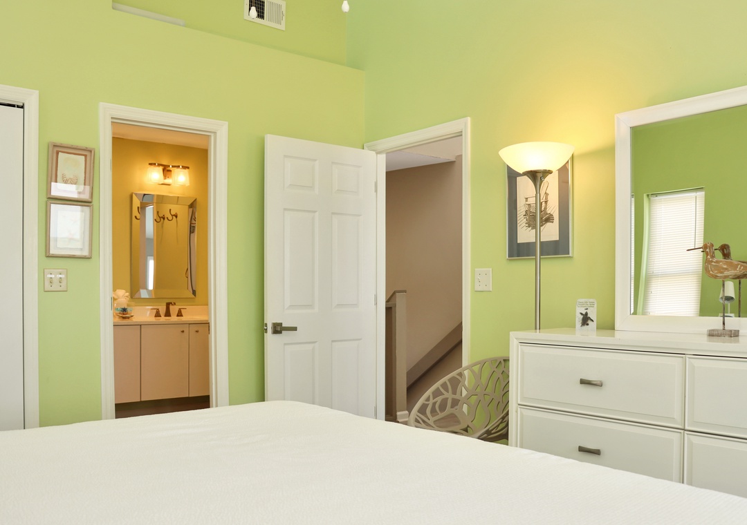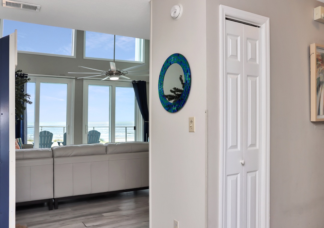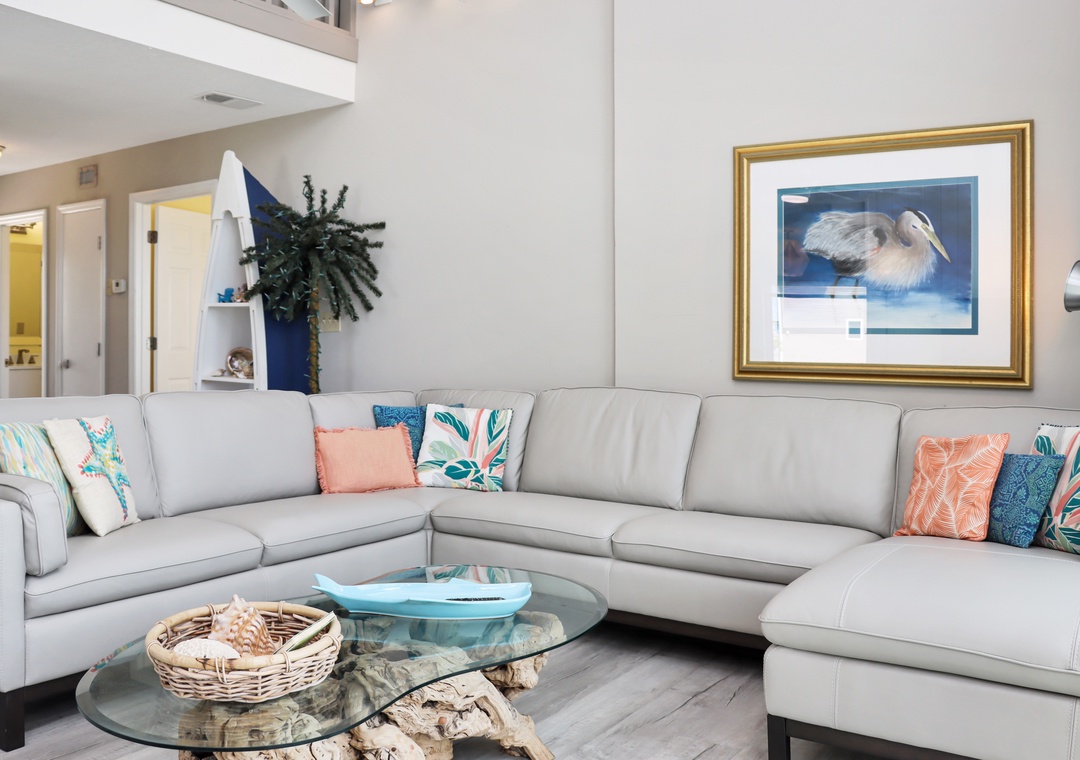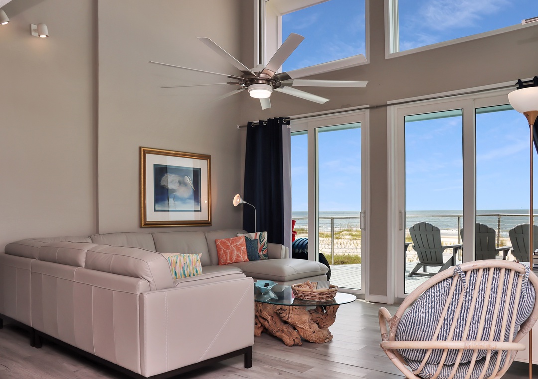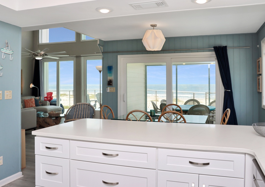 We love this house - it was our second stay in three years. The windows in the great room give a wonderful view of the Gulf. The furniture was comfortable with plenty of seats to sit a bottom. The kitchen wares were plentiful and in good shape, so I was able to cook more during our stay. The bedrooms are separated and each has a en-suite bathroom. We would stay here again.