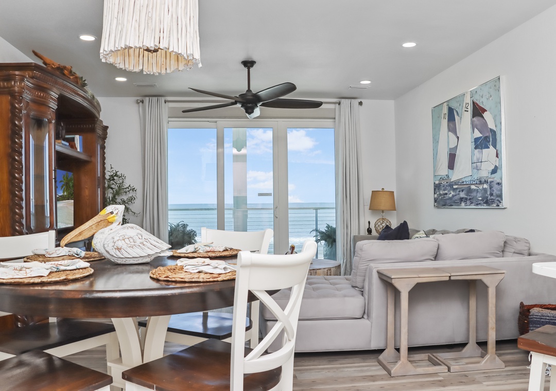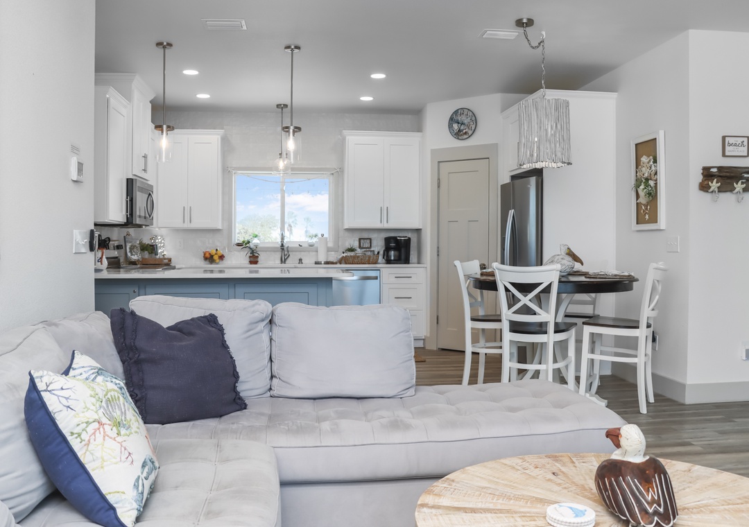 We absolutely cannot wait to visit again. We will definitely be staying here every single time! Beds were so comfortable, both bathrooms were amazing and the kitchen was perfect! We loved all of the outdoor seating as well. It was so nice to drink coffee while listening to the waves and watching our grandson play in the sand....excellent way to start the day! The nearby food trucks are YUMMY! We walked to the hibachi one twice! One meal feeds at least two people. Ice cream truck there as well is the perfect treat. They are rebuilding a huge restaurant almost next door so we look forward to that soon.