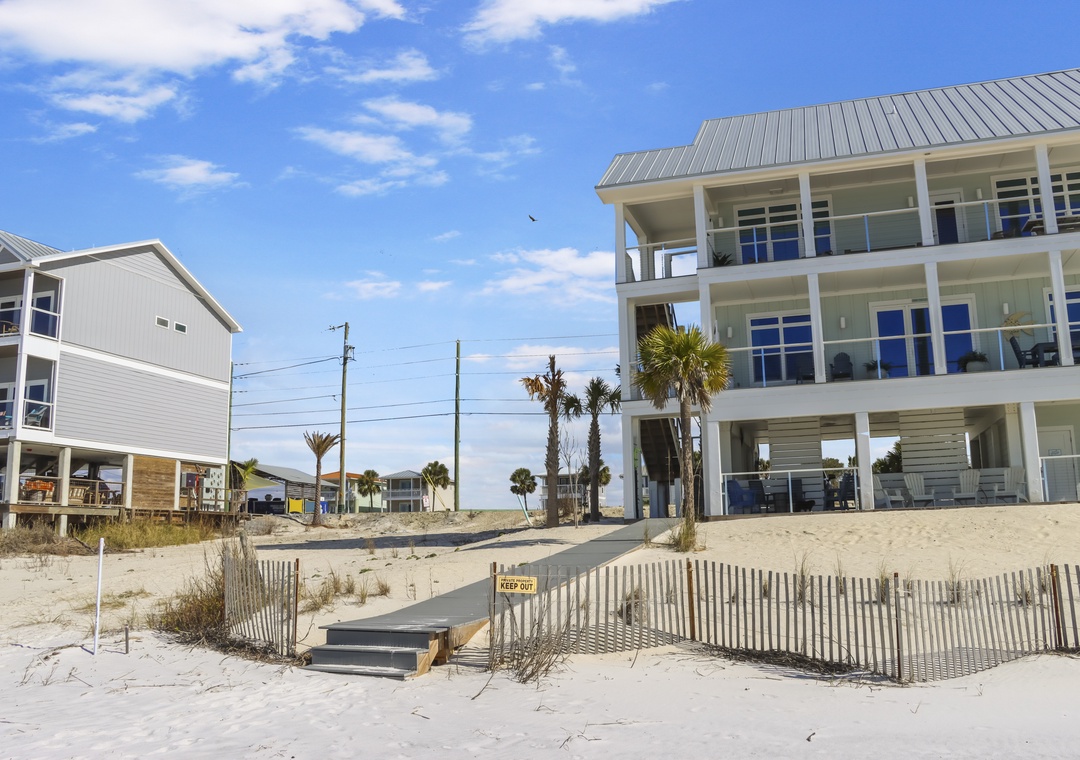 Welcome to your seaside retreat, Just Beachy! Immerse yourself in the beauty of Mexico Beach with this brand-new, beachfront gem—a first-floor duplex designed for those who crave the salt air and the sound of waves. This exquisite property boasts three cozy bedrooms, including a bunk room featuring a full-over-queen bed, ideal for kids or extra guests. The other two bedrooms are sanctuaries of rest and relaxation with plush queen beds. With two well-appointed bathrooms, your comfort is ensured. Step outside to your large, covered deck, where wire railing allows for unobstructed, panoramic views of the turquoise waters. Underneath the residence, you'll find an inviting outdoor area complete with ample furniture, perfect for lounging and soaking in the beachfront vistas, and an outdoor shower adds a touch of convenience to your sandy adventures.