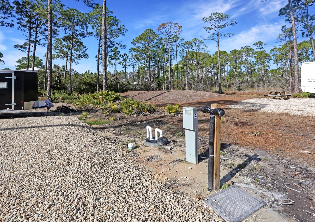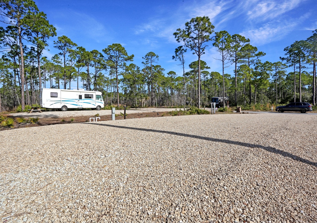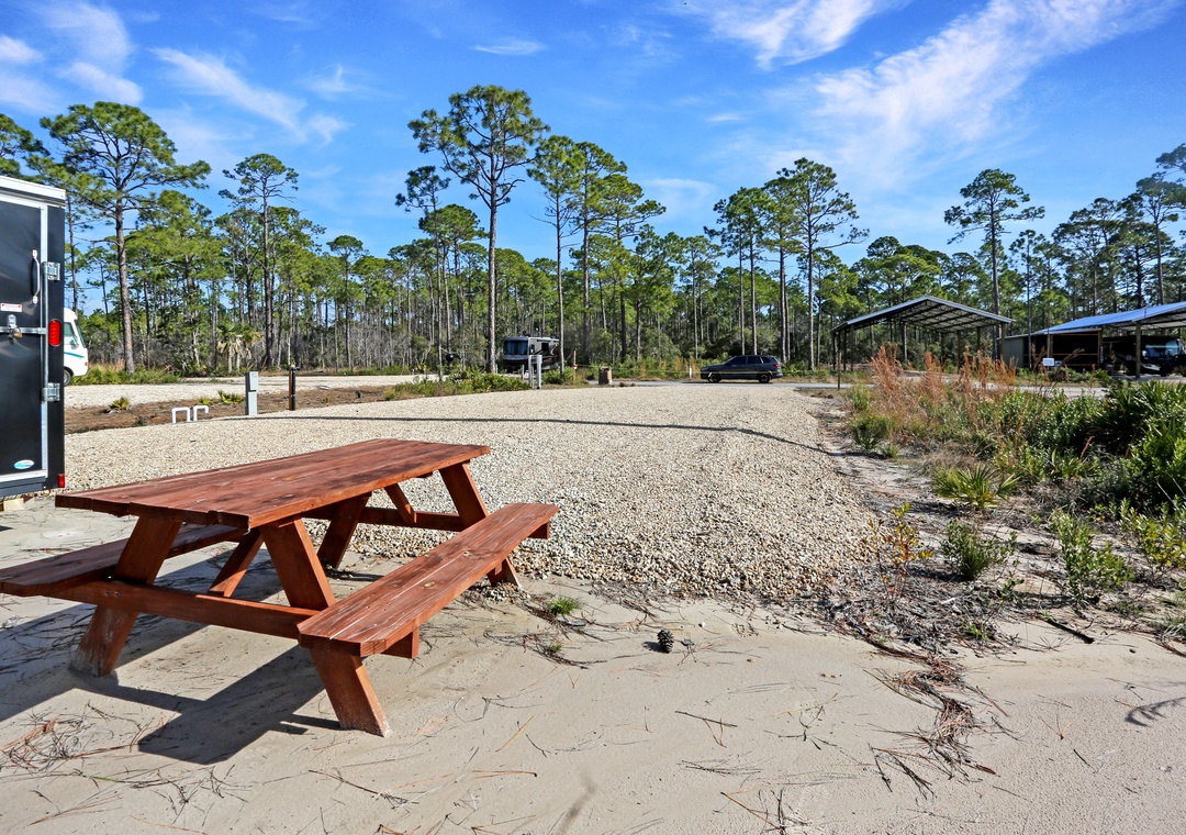 It is just a short distance from the Indian Pass Raw Bar, Indian Pass General Store, and Indian Pass Boat Landing. This area has lots to offer…kayaking, scalloping, fishing, biking and the most beautiful white sand, pet friendly, beaches with an old Florida feel. It is a BACK-IN, FULL HOOK-UP lot with 20/30/50 amp outlets. It is a level, gravel lot which includes a picnic table and trash bin.