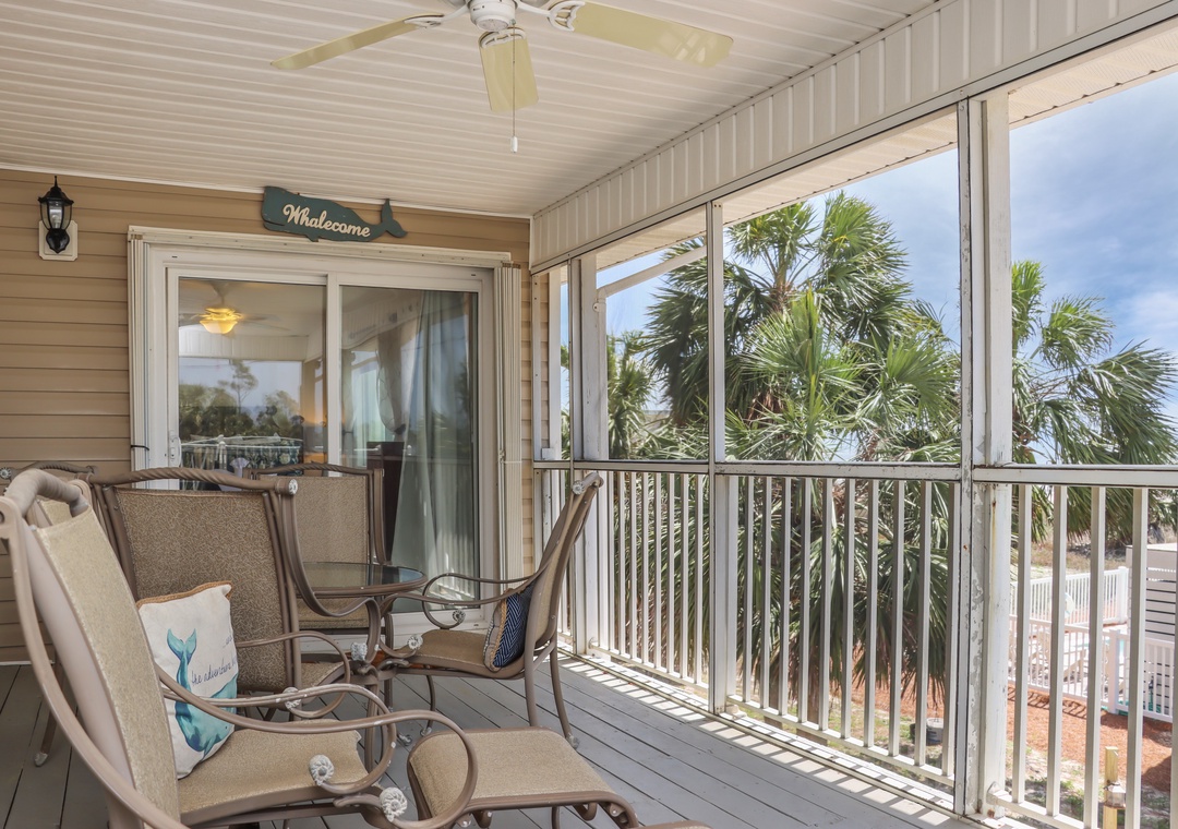 Palmetto Breeze is a charming 3-bedroom, 2.5-bath beach home on a 1st Tier lot, just a short 100-step stroll to the sandy shores. Nestled in a quiet neighborhood in Indian Pass, this delightful retreat is designed to provide the utmost comfort for up to 6 guests, making it an ideal destination for families, friends, or couples seeking a serene escape. Outdoor enthusiasts, nature lovers, and fishermen will appreciate the thoughtful amenities, including an outdoor shower, a grilling area, and a fish cleaning station, as well as ample parking for those bringing a boat. Guests can enjoy alfresco dining with two distinct outdoor dining spaces, or relax on the multiple decks—some open, others covered, and a furnished screened deck—all offering stunning beach views. The master bedroom and bathroom are conveniently located on the main living area, while the two guest bedrooms are situated upstairs alongside a full bathroom and a spacious desk and office space. Almost every room in Palmetto Breeze offers breathtaking beach views, ensuring a memorable and tranquil vacation experience.